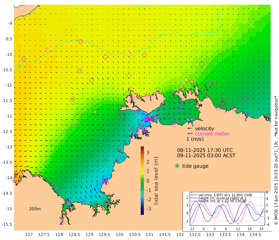 162cm/s -101T +4cm/s rms + 6cm/s 51T. Darwin_C1 52m 125cm/s -91T +4cm/s rms + 7cm/s -161T. Darwin_CW1 22m 73cm/s -107T +4cm/s rms + 8cm/s 61T. Darwin_CW2 34m 81cm/s -135T +3cm/s rms + 9cm/s 98T. Darwin_CW3 22m 118cm/s -91T +5cm/s rms + 7cm/s 88T. Darwin_C3 56m 87cm/s -115T +2cm/s rms + 9cm/s -126T. Darwin_CTbW 22m 12cm/s 141T +9cm/s rms + 2cm/s -110T. NWSLYN 196m 6cm/s -174T +1cm/s rms + 1cm/s -47T. DARBGF 30m 14cm/s 46T +7cm/s rms + 2cm/s -137T. ITFTIS 464m 16cm/s 62T +9cm/s rms + 1cm/s 74T. ITFMHB 146m 16cm/s 52T +4cm/s rms + 1cm/s -134T. ITFJBG 61m 25cm/s 84T +6cm/s rms + 4cm/s 121T. ITFFTB 108m 11cm/s -166T +4cm/s rms + 3cm/s 80T. NRSDAR 19m 138cm Carronade Island 138cm Guy Point 147cm Napier Broome Bay 54cm Lesueur Island -90cm Reveley Island -44cm Rocky Island -157cm Cape Domett -131cm Lacrosse Island -174cm Adolphus Island -128cm Pender Point -105cm Wyndham 86cm The Boxers 67cm Unnamed Shoal 132cm Loxton Shoal -187cm Pelican Island 95cm Calder Shoal 103cm Evans Shoal -229cm Quoin Island -157cm Port Keats -164cm Jones Point -161cm Catfish Island -85cm Cape Scott Offshore -55cm Cape Ford -102cm Anson Bay 90cm Goodrich Bank -83cm Peron Island North -74cm Point Jenny -71cm Native Point -87cm Fish Reef -100cm Tapa Bay 21cm Point Fawcett (Offshore) -115cm Burge Point -108cm Munkunuwa -40cm Beagle A -132cm Parsons Bank -105cm Fenton Patches 94cm Lynedoch Bank -129cm Hancox Shoal Area -129cm Nightcliff -138cm Darwin -98cm Charles Point Patches -106cm Glyde Point -102cm Chambers Bay -111cm Point Stuart -98cm Cape Hotham -91cm Christine Reef -127cm West Alligator Head -119cm East Field Island -82cm Two Hills Bay 35cm Newby Shoal -67cm Camp Point -97cm Medina Inlet South 29cm South Barlow Point 57cm St. Asaph Bay 87cm Cape Van Dieman 82cm Snake Bay 84cm Cache Point 147cm Echo Shoal 55cm Point Jahleel (Off) 0cm Cape Don 46cm Port Essington 43cm Smith Point - West 46cm NW Peacock Island 69cm North Of Jones Shoal 21cm Peacock Island 14cm Point David 38cm D'urville Point 56cm Money Shoal 7cm Copeland Island 12cm Cape Cockburn 22cm One Tree Point 11cm Hogmany Shoal 24cm New Year Island - West 13cm Grant Island -17cm Aurari Bay -37cm Cuthbert Point -10cm North Goulburn Island -45cm Paxie Shoal -74cm Entrance Island -105cm Yabooma Island