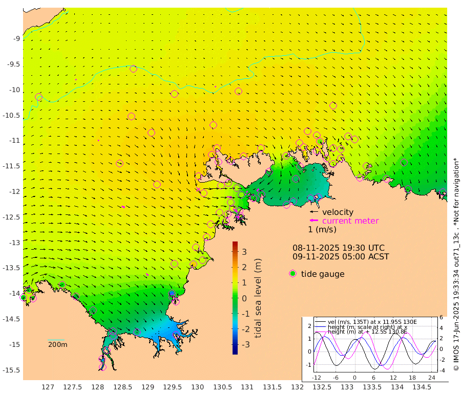 8cm/s 80T +4cm/s rms + 6cm/s 51T. Darwin_C1 52m 5cm/s -68T +4cm/s rms + 7cm/s -161T. Darwin_CW1 22m 15cm/s 79T +4cm/s rms + 8cm/s 61T. Darwin_CW2 34m 39cm/s -142T +3cm/s rms + 9cm/s 98T. Darwin_CW3 22m 5cm/s -74T +5cm/s rms + 7cm/s 88T. Darwin_C3 56m 24cm/s 60T +2cm/s rms + 9cm/s -126T. Darwin_CTbW 22m 12cm/s 135T +9cm/s rms + 2cm/s -110T. NWSLYN 196m 63cm/s 95T +1cm/s rms + 1cm/s -47T. DARBGF 30m 15cm/s 39T +7cm/s rms + 2cm/s -137T. ITFTIS 464m 14cm/s 82T +9cm/s rms + 1cm/s 74T. ITFMHB 146m 38cm/s 135T +4cm/s rms + 1cm/s -134T. ITFJBG 61m 40cm/s 114T +6cm/s rms + 4cm/s 121T. ITFFTB 108m 64cm/s 127T +4cm/s rms + 3cm/s 80T. NRSDAR 19m -6cm Carronade Island -14cm Guy Point -2cm Napier Broome Bay 12cm Lesueur Island -42cm Reveley Island -30cm Rocky Island -89cm Cape Domett -74cm Lacrosse Island -144cm Adolphus Island -206cm Pender Point -232cm Wyndham 106cm The Boxers 129cm Unnamed Shoal 99cm Loxton Shoal -77cm Pelican Island 113cm Calder Shoal 100cm Evans Shoal -206cm Quoin Island -6cm Port Keats -7cm Jones Point -219cm Catfish Island 57cm Cape Scott Offshore 159cm Cape Ford 72cm Anson Bay 117cm Goodrich Bank 82cm Peron Island North 88cm Point Jenny 92cm Native Point 90cm Fish Reef 82cm Tapa Bay 127cm Point Fawcett (Offshore) 73cm Burge Point 84cm Munkunuwa 103cm Beagle A 66cm Parsons Bank 72cm Fenton Patches 103cm Lynedoch Bank 46cm Hancox Shoal Area 53cm Nightcliff 64cm Darwin 92cm Charles Point Patches 1cm Glyde Point -88cm Chambers Bay -105cm Point Stuart -26cm Cape Hotham -79cm Christine Reef -131cm West Alligator Head -164cm East Field Island -47cm Two Hills Bay 115cm Newby Shoal -36cm Camp Point 89cm Medina Inlet South 133cm South Barlow Point 128cm St. Asaph Bay 124cm Cape Van Dieman 128cm Snake Bay 116cm Cache Point 80cm Echo Shoal 94cm Point Jahleel (Off) 60cm Cape Don 101cm Port Essington 99cm Smith Point - West 97cm NW Peacock Island 104cm North Of Jones Shoal 36cm Peacock Island 80cm Point David 100cm D'urville Point 96cm Money Shoal 73cm Copeland Island 96cm Cape Cockburn 83cm One Tree Point 81cm Hogmany Shoal 82cm New Year Island - West 77cm Grant Island 54cm Aurari Bay 34cm Cuthbert Point 60cm North Goulburn Island 17cm Paxie Shoal -7cm Entrance Island -46cm Yabooma Island
