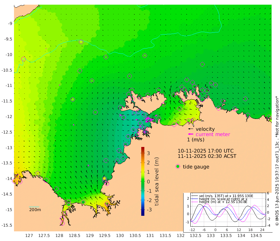 135cm/s -102T +4cm/s rms + 6cm/s 51T. Darwin_C1 52m 77cm/s -89T +4cm/s rms + 7cm/s -161T. Darwin_CW1 22m 70cm/s -109T +4cm/s rms + 8cm/s 61T. Darwin_CW2 34m 46cm/s -123T +3cm/s rms + 9cm/s 98T. Darwin_CW3 22m 75cm/s -92T +5cm/s rms + 7cm/s 88T. Darwin_C3 56m 76cm/s -116T +2cm/s rms + 9cm/s -126T. Darwin_CTbW 22m 4cm/s 118T +9cm/s rms + 2cm/s -110T. NWSLYN 196m 45cm/s -90T +1cm/s rms + 1cm/s -47T. DARBGF 30m 8cm/s 17T +7cm/s rms + 2cm/s -137T. ITFTIS 464m 14cm/s 18T +9cm/s rms + 1cm/s 74T. ITFMHB 146m 32cm/s -17T +4cm/s rms + 1cm/s -134T. ITFJBG 61m 23cm/s -19T +6cm/s rms + 4cm/s 121T. ITFFTB 108m 39cm/s -66T +4cm/s rms + 3cm/s 80T. NRSDAR 19m 168cm Carronade Island 175cm Guy Point 180cm Napier Broome Bay 99cm Lesueur Island 17cm Reveley Island 14cm Rocky Island 18cm Cape Domett 23cm Lacrosse Island 38cm Adolphus Island 133cm Pender Point 173cm Wyndham 37cm The Boxers 6cm Unnamed Shoal 62cm Loxton Shoal -26cm Pelican Island 31cm Calder Shoal 31cm Evans Shoal 45cm Quoin Island -49cm Port Keats -60cm Jones Point 91cm Catfish Island -56cm Cape Scott Offshore -79cm Cape Ford -77cm Anson Bay 12cm Goodrich Bank -77cm Peron Island North -67cm Point Jenny -67cm Native Point -82cm Fish Reef -81cm Tapa Bay -35cm Point Fawcett (Offshore) -79cm Burge Point -101cm Munkunuwa -55cm Beagle A -101cm Parsons Bank -76cm Fenton Patches 24cm Lynedoch Bank -83cm Hancox Shoal Area -83cm Nightcliff -92cm Darwin -81cm Charles Point Patches -31cm Glyde Point 31cm Chambers Bay 34cm Point Stuart -13cm Cape Hotham 32cm Christine Reef 42cm West Alligator Head 75cm East Field Island 10cm Two Hills Bay 4cm Newby Shoal 24cm Camp Point -86cm Medina Inlet South -40cm South Barlow Point -17cm St. Asaph Bay 5cm Cape Van Dieman -2cm Snake Bay 10cm Cache Point 83cm Echo Shoal 1cm Point Jahleel (Off) -10cm Cape Don -12cm Port Essington -17cm Smith Point - West -13cm NW Peacock Island 1cm North Of Jones Shoal -2cm Peacock Island -24cm Point David -22cm D'urville Point 0cm Money Shoal -27cm Copeland Island -32cm Cape Cockburn -19cm One Tree Point -20cm Hogmany Shoal -13cm New Year Island - West -20cm Grant Island -31cm Aurari Bay -28cm Cuthbert Point -25cm North Goulburn Island -12cm Paxie Shoal -23cm Entrance Island -21cm Yabooma Island