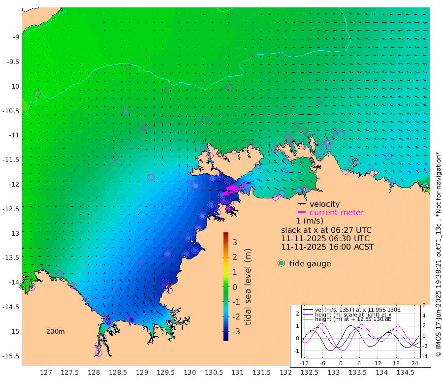 238cm/s -102T +4cm/s rms + 6cm/s 51T. Darwin_C1 52m 169cm/s -90T +4cm/s rms + 7cm/s -161T. Darwin_CW1 22m 102cm/s -106T +4cm/s rms + 8cm/s 61T. Darwin_CW2 34m 112cm/s -133T +3cm/s rms + 9cm/s 98T. Darwin_CW3 22m 160cm/s -90T +5cm/s rms + 7cm/s 88T. Darwin_C3 56m 136cm/s -115T +2cm/s rms + 9cm/s -126T. Darwin_CTbW 22m 7cm/s -74T +9cm/s rms + 2cm/s -110T. NWSLYN 196m 32cm/s -100T +1cm/s rms + 1cm/s -47T. DARBGF 30m 8cm/s 148T +7cm/s rms + 2cm/s -137T. ITFTIS 464m 5cm/s 124T +9cm/s rms + 1cm/s 74T. ITFMHB 146m 10cm/s 24T +4cm/s rms + 1cm/s -134T. ITFJBG 61m 7cm/s 95T +6cm/s rms + 4cm/s 121T. ITFFTB 108m 21cm/s -85T +4cm/s rms + 3cm/s 80T. NRSDAR 19m 0cm Carronade Island -1cm Guy Point -11cm Napier Broome Bay -96cm Lesueur Island -176cm Reveley Island -96cm Rocky Island -249cm Cape Domett -225cm Lacrosse Island -239cm Adolphus Island -191cm Pender Point -170cm Wyndham -75cm The Boxers -94cm Unnamed Shoal -13cm Loxton Shoal -263cm Pelican Island -55cm Calder Shoal -25cm Evans Shoal -287cm Quoin Island -270cm Port Keats -254cm Jones Point -262cm Catfish Island -211cm Cape Scott Offshore -221cm Cape Ford -233cm Anson Bay -40cm Goodrich Bank -215cm Peron Island North -203cm Point Jenny -202cm Native Point -217cm Fish Reef -227cm Tapa Bay -132cm Point Fawcett (Offshore) -240cm Burge Point -212cm Munkunuwa -172cm Beagle A -241cm Parsons Bank -220cm Fenton Patches -31cm Lynedoch Bank -233cm Hancox Shoal Area -238cm Nightcliff -266cm Darwin -247cm Charles Point Patches -198cm Glyde Point -153cm Chambers Bay -155cm Point Stuart -172cm Cape Hotham -144cm Christine Reef -162cm West Alligator Head -142cm East Field Island -152cm Two Hills Bay -141cm Newby Shoal -141cm Camp Point -229cm Medina Inlet South -112cm South Barlow Point -81cm St. Asaph Bay -45cm Cape Van Dieman -56cm Snake Bay -52cm Cache Point 20cm Echo Shoal -66cm Point Jahleel (Off) -115cm Cape Don -80cm Port Essington -76cm Smith Point - West -74cm NW Peacock Island -61cm North Of Jones Shoal -23cm Peacock Island -94cm Point David -80cm D'urville Point -69cm Money Shoal -92cm Copeland Island -126cm Cape Cockburn -96cm One Tree Point -121cm Hogmany Shoal -94cm New Year Island - West -101cm Grant Island -107cm Aurari Bay -128cm Cuthbert Point -117cm North Goulburn Island -138cm Paxie Shoal -132cm Entrance Island -137cm Yabooma Island