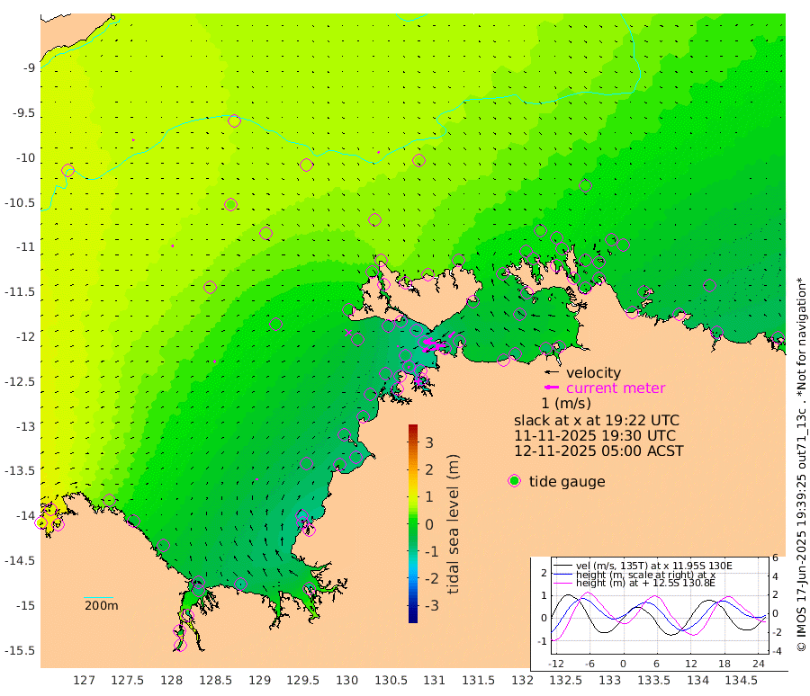 120cm/s -101T +4cm/s rms + 6cm/s 51T. Darwin_C1 52m 67cm/s -90T +4cm/s rms + 7cm/s -161T. Darwin_CW1 22m 43cm/s -106T +4cm/s rms + 8cm/s 61T. Darwin_CW2 34m 55cm/s -135T +3cm/s rms + 9cm/s 98T. Darwin_CW3 22m 59cm/s -91T +5cm/s rms + 7cm/s 88T. Darwin_C3 56m 69cm/s -116T +2cm/s rms + 9cm/s -126T. Darwin_CTbW 22m 9cm/s 131T +9cm/s rms + 2cm/s -110T. NWSLYN 196m 11cm/s -100T +1cm/s rms + 1cm/s -47T. DARBGF 30m 12cm/s 33T +7cm/s rms + 2cm/s -137T. ITFTIS 464m 14cm/s 36T +9cm/s rms + 1cm/s 74T. ITFMHB 146m 15cm/s 14T +4cm/s rms + 1cm/s -134T. ITFJBG 61m 14cm/s 44T +6cm/s rms + 4cm/s 121T. ITFFTB 108m 11cm/s -89T +4cm/s rms + 3cm/s 80T. NRSDAR 19m 89cm Carronade Island 94cm Guy Point 101cm Napier Broome Bay 40cm Lesueur Island -42cm Reveley Island -32cm Rocky Island -73cm Cape Domett -62cm Lacrosse Island -84cm Adolphus Island -34cm Pender Point -22cm Wyndham 50cm The Boxers 39cm Unnamed Shoal 82cm Loxton Shoal -99cm Pelican Island 56cm Calder Shoal 58cm Evans Shoal -106cm Quoin Island -83cm Port Keats -90cm Jones Point -123cm Catfish Island -50cm Cape Scott Offshore -24cm Cape Ford -59cm Anson Bay 50cm Goodrich Bank -57cm Peron Island North -48cm Point Jenny -44cm Native Point -61cm Fish Reef -59cm Tapa Bay 3cm Point Fawcett (Offshore) -65cm Burge Point -63cm Munkunuwa -33cm Beagle A -80cm Parsons Bank -66cm Fenton Patches 54cm Lynedoch Bank -76cm Hancox Shoal Area -75cm Nightcliff -78cm Darwin -55cm Charles Point Patches -62cm Glyde Point -62cm Chambers Bay -68cm Point Stuart -61cm Cape Hotham -53cm Christine Reef -77cm West Alligator Head -69cm East Field Island -55cm Two Hills Bay 16cm Newby Shoal -32cm Camp Point -58cm Medina Inlet South 11cm South Barlow Point 28cm St. Asaph Bay 47cm Cape Van Dieman 44cm Snake Bay 41cm Cache Point 87cm Echo Shoal 24cm Point Jahleel (Off) -8cm Cape Don 17cm Port Essington 11cm Smith Point - West 14cm NW Peacock Island 31cm North Of Jones Shoal 9cm Peacock Island -1cm Point David 8cm D'urville Point 26cm Money Shoal -7cm Copeland Island -11cm Cape Cockburn 2cm One Tree Point -6cm Hogmany Shoal 4cm New Year Island - West -2cm Grant Island -25cm Aurari Bay -37cm Cuthbert Point -19cm North Goulburn Island -27cm Paxie Shoal -53cm Entrance Island -70cm Yabooma Island