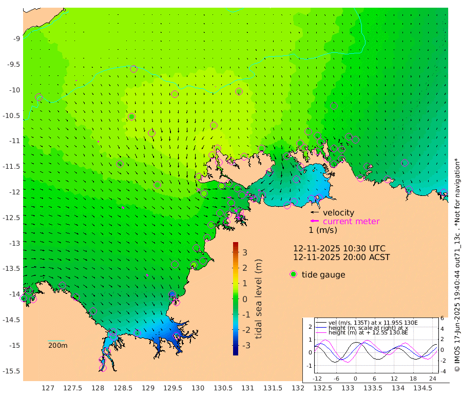 29cm/s 80T +4cm/s rms + 6cm/s 51T. Darwin_C1 52m 18cm/s 85T +4cm/s rms + 7cm/s -161T. Darwin_CW1 22m 19cm/s 73T +4cm/s rms + 8cm/s 61T. Darwin_CW2 34m 24cm/s -158T +3cm/s rms + 9cm/s 98T. Darwin_CW3 22m 9cm/s 77T +5cm/s rms + 7cm/s 88T. Darwin_C3 56m 24cm/s 61T +2cm/s rms + 9cm/s -126T. Darwin_CTbW 22m 3cm/s -134T +9cm/s rms + 2cm/s -110T. NWSLYN 196m 46cm/s 94T +1cm/s rms + 1cm/s -47T. DARBGF 30m 8cm/s 125T +7cm/s rms + 2cm/s -137T. ITFTIS 464m 19cm/s 162T +9cm/s rms + 1cm/s 74T. ITFMHB 146m 31cm/s 148T +4cm/s rms + 1cm/s -134T. ITFJBG 61m 34cm/s 133T +6cm/s rms + 4cm/s 121T. ITFFTB 108m 49cm/s 122T +4cm/s rms + 3cm/s 80T. NRSDAR 19m -52cm Carronade Island -54cm Guy Point -57cm Napier Broome Bay -49cm Lesueur Island -53cm Reveley Island 9cm Rocky Island -105cm Cape Domett -92cm Lacrosse Island -133cm Adolphus Island -193cm Pender Point -222cm Wyndham 32cm The Boxers 29cm Unnamed Shoal 50cm Loxton Shoal -94cm Pelican Island 52cm Calder Shoal 51cm Evans Shoal -178cm Quoin Island -46cm Port Keats -56cm Jones Point -229cm Catfish Island 5cm Cape Scott Offshore 39cm Cape Ford 8cm Anson Bay 52cm Goodrich Bank 18cm Peron Island North 21cm Point Jenny 25cm Native Point 21cm Fish Reef 16cm Tapa Bay 51cm Point Fawcett (Offshore) 4cm Burge Point 40cm Munkunuwa 36cm Beagle A 6cm Parsons Bank 12cm Fenton Patches 42cm Lynedoch Bank -9cm Hancox Shoal Area 3cm Nightcliff -6cm Darwin 8cm Charles Point Patches -54cm Glyde Point -120cm Chambers Bay -135cm Point Stuart -73cm Cape Hotham -103cm Christine Reef -150cm West Alligator Head -179cm East Field Island -87cm Two Hills Bay 34cm Newby Shoal -87cm Camp Point 24cm Medina Inlet South 64cm South Barlow Point 64cm St. Asaph Bay 54cm Cape Van Dieman 55cm Snake Bay 43cm Cache Point 42cm Echo Shoal 30cm Point Jahleel (Off) -10cm Cape Don 19cm Port Essington 26cm Smith Point - West 18cm NW Peacock Island 29cm North Of Jones Shoal 8cm Peacock Island -15cm Point David 19cm D'urville Point 3cm Money Shoal -19cm Copeland Island -24cm Cape Cockburn -10cm One Tree Point -36cm Hogmany Shoal -16cm New Year Island - West -19cm Grant Island -39cm Aurari Bay -67cm Cuthbert Point -43cm North Goulburn Island -92cm Paxie Shoal -107cm Entrance Island -148cm Yabooma Island