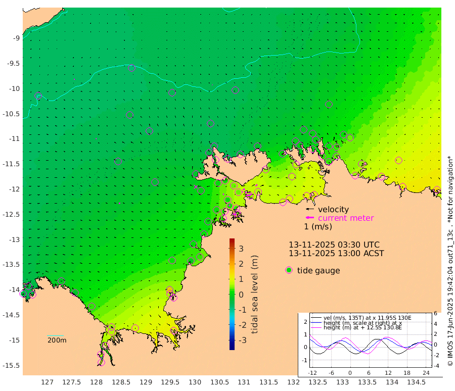 46cm/s 80T +4cm/s rms + 6cm/s 51T. Darwin_C1 52m 15cm/s 85T +4cm/s rms + 7cm/s -161T. Darwin_CW1 22m 13cm/s 67T +4cm/s rms + 8cm/s 61T. Darwin_CW2 34m 32cm/s 44T +3cm/s rms + 9cm/s 98T. Darwin_CW3 22m 16cm/s 91T +5cm/s rms + 7cm/s 88T. Darwin_C3 56m 25cm/s 64T +2cm/s rms + 9cm/s -126T. Darwin_CTbW 22m 3cm/s -33T +9cm/s rms + 2cm/s -110T. NWSLYN 196m 13cm/s -83T +1cm/s rms + 1cm/s -47T. DARBGF 30m 8cm/s -117T +7cm/s rms + 2cm/s -137T. ITFTIS 464m 8cm/s -73T +9cm/s rms + 1cm/s 74T. ITFMHB 146m 5cm/s -88T +4cm/s rms + 1cm/s -134T. ITFJBG 61m 14cm/s -76T +6cm/s rms + 4cm/s 121T. ITFFTB 108m 20cm/s -52T +4cm/s rms + 3cm/s 80T. NRSDAR 19m -44cm Carronade Island -46cm Guy Point -52cm Napier Broome Bay -18cm Lesueur Island 25cm Reveley Island -29cm Rocky Island 61cm Cape Domett 52cm Lacrosse Island 77cm Adolphus Island 67cm Pender Point 75cm Wyndham -54cm The Boxers -41cm Unnamed Shoal -83cm Loxton Shoal 80cm Pelican Island -65cm Calder Shoal -61cm Evans Shoal 108cm Quoin Island 48cm Port Keats 64cm Jones Point 176cm Catfish Island 19cm Cape Scott Offshore -15cm Cape Ford 26cm Anson Bay -55cm Goodrich Bank 21cm Peron Island North 12cm Point Jenny 6cm Native Point 21cm Fish Reef 19cm Tapa Bay -25cm Point Fawcett (Offshore) 25cm Burge Point 7cm Munkunuwa -5cm Beagle A 37cm Parsons Bank 22cm Fenton Patches -54cm Lynedoch Bank 43cm Hancox Shoal Area 33cm Nightcliff 38cm Darwin 22cm Charles Point Patches 55cm Glyde Point 90cm Chambers Bay 98cm Point Stuart 67cm Cape Hotham 71cm Christine Reef 108cm West Alligator Head 115cm East Field Island 71cm Two Hills Bay -39cm Newby Shoal 54cm Camp Point 14cm Medina Inlet South -39cm South Barlow Point -48cm St. Asaph Bay -53cm Cape Van Dieman -53cm Snake Bay -42cm Cache Point -79cm Echo Shoal -27cm Point Jahleel (Off) 14cm Cape Don -10cm Port Essington -10cm Smith Point - West -7cm NW Peacock Island -22cm North Of Jones Shoal -5cm Peacock Island 26cm Point David -2cm D'urville Point -3cm Money Shoal 33cm Copeland Island 43cm Cape Cockburn 21cm One Tree Point 43cm Hogmany Shoal 20cm New Year Island - West 26cm Grant Island 55cm Aurari Bay 77cm Cuthbert Point 54cm North Goulburn Island 83cm Paxie Shoal 109cm Entrance Island 150cm Yabooma Island