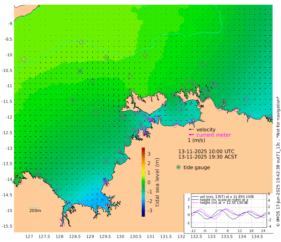 72cm/s -102T +4cm/s rms + 6cm/s 51T. Darwin_C1 52m 44cm/s -90T +4cm/s rms + 7cm/s -161T. Darwin_CW1 22m 28cm/s -106T +4cm/s rms + 8cm/s 61T. Darwin_CW2 34m 54cm/s -136T +3cm/s rms + 9cm/s 98T. Darwin_CW3 22m 53cm/s -90T +5cm/s rms + 7cm/s 88T. Darwin_C3 56m 39cm/s -115T +2cm/s rms + 9cm/s -126T. Darwin_CTbW 22m 3cm/s -77T +9cm/s rms + 2cm/s -110T. NWSLYN 196m 11cm/s 108T +1cm/s rms + 1cm/s -47T. DARBGF 30m 6cm/s 129T +7cm/s rms + 2cm/s -137T. ITFTIS 464m 10cm/s 150T +9cm/s rms + 1cm/s 74T. ITFMHB 146m 11cm/s 124T +4cm/s rms + 1cm/s -134T. ITFJBG 61m 17cm/s 124T +6cm/s rms + 4cm/s 121T. ITFFTB 108m 17cm/s 135T +4cm/s rms + 3cm/s 80T. NRSDAR 19m -13cm Carronade Island -12cm Guy Point -20cm Napier Broome Bay -47cm Lesueur Island -84cm Reveley Island -23cm Rocky Island -139cm Cape Domett -124cm Lacrosse Island -140cm Adolphus Island -158cm Pender Point -163cm Wyndham 0cm The Boxers -16cm Unnamed Shoal 39cm Loxton Shoal -143cm Pelican Island 19cm Calder Shoal 31cm Evans Shoal -185cm Quoin Island -116cm Port Keats -125cm Jones Point -234cm Catfish Island -75cm Cape Scott Offshore -52cm Cape Ford -83cm Anson Bay 25cm Goodrich Bank -68cm Peron Island North -63cm Point Jenny -60cm Native Point -70cm Fish Reef -75cm Tapa Bay -19cm Point Fawcett (Offshore) -83cm Burge Point -58cm Munkunuwa -39cm Beagle A -84cm Parsons Bank -71cm Fenton Patches 24cm Lynedoch Bank -88cm Hancox Shoal Area -83cm Nightcliff -98cm Darwin -81cm Charles Point Patches -99cm Glyde Point -123cm Chambers Bay -131cm Point Stuart -102cm Cape Hotham -103cm Christine Reef -143cm West Alligator Head -149cm East Field Island -102cm Two Hills Bay -19cm Newby Shoal -94cm Camp Point -70cm Medina Inlet South 2cm South Barlow Point 12cm St. Asaph Bay 23cm Cape Van Dieman 20cm Snake Bay 14cm Cache Point 46cm Echo Shoal 1cm Point Jahleel (Off) -43cm Cape Don -11cm Port Essington -6cm Smith Point - West -8cm NW Peacock Island 3cm North Of Jones Shoal -1cm Peacock Island -38cm Point David -11cm D'urville Point -14cm Money Shoal -41cm Copeland Island -53cm Cape Cockburn -35cm One Tree Point -59cm Hogmany Shoal -37cm New Year Island - West -41cm Grant Island -59cm Aurari Bay -82cm Cuthbert Point -64cm North Goulburn Island -101cm Paxie Shoal -109cm Entrance Island -136cm Yabooma Island