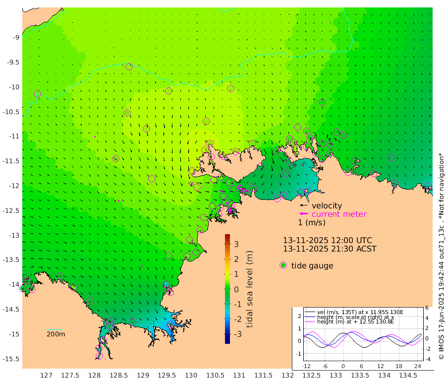 65cm/s 78T +4cm/s rms + 6cm/s 51T. Darwin_C1 52m 38cm/s 89T +4cm/s rms + 7cm/s -161T. Darwin_CW1 22m 26cm/s 74T +4cm/s rms + 8cm/s 61T. Darwin_CW2 34m 12cm/s 88T +3cm/s rms + 9cm/s 98T. Darwin_CW3 22m 26cm/s 87T +5cm/s rms + 7cm/s 88T. Darwin_C3 56m 41cm/s 63T +2cm/s rms + 9cm/s -126T. Darwin_CTbW 22m 2cm/s -144T +9cm/s rms + 2cm/s -110T. NWSLYN 196m 39cm/s 92T +1cm/s rms + 1cm/s -47T. DARBGF 30m 6cm/s 126T +7cm/s rms + 2cm/s -137T. ITFTIS 464m 16cm/s 165T +9cm/s rms + 1cm/s 74T. ITFMHB 146m 24cm/s 152T +4cm/s rms + 1cm/s -134T. ITFJBG 61m 27cm/s 135T +6cm/s rms + 4cm/s 121T. ITFFTB 108m 40cm/s 119T +4cm/s rms + 3cm/s 80T. NRSDAR 19m -25cm Carronade Island -28cm Guy Point -27cm Napier Broome Bay -17cm Lesueur Island -20cm Reveley Island 36cm Rocky Island -54cm Cape Domett -47cm Lacrosse Island -73cm Adolphus Island -128cm Pender Point -148cm Wyndham 44cm The Boxers 41cm Unnamed Shoal 53cm Loxton Shoal -47cm Pelican Island 55cm Calder Shoal 52cm Evans Shoal -106cm Quoin Island -6cm Port Keats -22cm Jones Point -129cm Catfish Island 27cm Cape Scott Offshore 36cm Cape Ford 29cm Anson Bay 53cm Goodrich Bank 38cm Peron Island North 38cm Point Jenny 41cm Native Point 39cm Fish Reef 34cm Tapa Bay 58cm Point Fawcett (Offshore) 25cm Burge Point 50cm Munkunuwa 50cm Beagle A 28cm Parsons Bank 32cm Fenton Patches 45cm Lynedoch Bank 15cm Hancox Shoal Area 27cm Nightcliff 20cm Darwin 30cm Charles Point Patches -21cm Glyde Point -75cm Chambers Bay -86cm Point Stuart -38cm Cape Hotham -61cm Christine Reef -97cm West Alligator Head -121cm East Field Island -47cm Two Hills Bay 53cm Newby Shoal -52cm Camp Point 42cm Medina Inlet South 68cm South Barlow Point 64cm St. Asaph Bay 55cm Cape Van Dieman 58cm Snake Bay 48cm Cache Point 44cm Echo Shoal 39cm Point Jahleel (Off) 11cm Cape Don 30cm Port Essington 38cm Smith Point - West 31cm NW Peacock Island 38cm North Of Jones Shoal 12cm Peacock Island 2cm Point David 32cm D'urville Point 16cm Money Shoal -2cm Copeland Island 1cm Cape Cockburn 8cm One Tree Point -11cm Hogmany Shoal 4cm New Year Island - West 2cm Grant Island -14cm Aurari Bay -34cm Cuthbert Point -16cm North Goulburn Island -59cm Paxie Shoal -70cm Entrance Island -108cm Yabooma Island