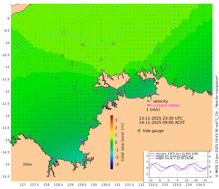 5cm/s -111T +4cm/s rms + 6cm/s 51T. Darwin_C1 52m 3cm/s -35T +4cm/s rms + 7cm/s -161T. Darwin_CW1 22m 19cm/s -109T +4cm/s rms + 8cm/s 61T. Darwin_CW2 34m 18cm/s -150T +3cm/s rms + 9cm/s 98T. Darwin_CW3 22m 28cm/s -89T +5cm/s rms + 7cm/s 88T. Darwin_C3 56m 1cm/s -51T +2cm/s rms + 9cm/s -126T. Darwin_CTbW 22m 9cm/s 146T +9cm/s rms + 2cm/s -110T. NWSLYN 196m 7cm/s 115T +1cm/s rms + 1cm/s -47T. DARBGF 30m 5cm/s 49T +7cm/s rms + 2cm/s -137T. ITFTIS 464m 5cm/s 57T +9cm/s rms + 1cm/s 74T. ITFMHB 146m 7cm/s 95T +4cm/s rms + 1cm/s -134T. ITFJBG 61m 9cm/s 100T +6cm/s rms + 4cm/s 121T. ITFFTB 108m 7cm/s 134T +4cm/s rms + 3cm/s 80T. NRSDAR 19m -17cm Carronade Island -12cm Guy Point -12cm Napier Broome Bay -41cm Lesueur Island -73cm Reveley Island -62cm Rocky Island -110cm Cape Domett -104cm Lacrosse Island -125cm Adolphus Island -117cm Pender Point -126cm Wyndham 8cm The Boxers 16cm Unnamed Shoal 38cm Loxton Shoal -106cm Pelican Island 17cm Calder Shoal 33cm Evans Shoal -138cm Quoin Island -88cm Port Keats -93cm Jones Point -160cm Catfish Island -44cm Cape Scott Offshore -61cm Cape Ford -44cm Anson Bay 31cm Goodrich Bank -43cm Peron Island North -48cm Point Jenny -46cm Native Point -58cm Fish Reef -50cm Tapa Bay -2cm Point Fawcett (Offshore) -69cm Burge Point -41cm Munkunuwa -51cm Beagle A -54cm Parsons Bank -76cm Fenton Patches 34cm Lynedoch Bank -58cm Hancox Shoal Area -65cm Nightcliff -63cm Darwin -48cm Charles Point Patches -70cm Glyde Point -90cm Chambers Bay -94cm Point Stuart -70cm Cape Hotham -82cm Christine Reef -107cm West Alligator Head -120cm East Field Island -67cm Two Hills Bay -28cm Newby Shoal -62cm Camp Point -46cm Medina Inlet South 11cm South Barlow Point 17cm St. Asaph Bay 32cm Cape Van Dieman 36cm Snake Bay 24cm Cache Point 30cm Echo Shoal 14cm Point Jahleel (Off) -10cm Cape Don 19cm Port Essington 17cm Smith Point - West 20cm NW Peacock Island 30cm North Of Jones Shoal 10cm Peacock Island 20cm Point David 19cm D'urville Point 26cm Money Shoal 16cm Copeland Island 14cm Cape Cockburn 19cm One Tree Point 16cm Hogmany Shoal 15cm New Year Island - West 15cm Grant Island 1cm Aurari Bay -10cm Cuthbert Point 5cm North Goulburn Island -5cm Paxie Shoal -31cm Entrance Island -44cm Yabooma Island
