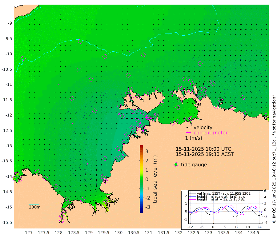 80cm/s -102T +4cm/s rms + 6cm/s 51T. Darwin_C1 52m 42cm/s -88T +4cm/s rms + 7cm/s -161T. Darwin_CW1 22m 43cm/s -107T +4cm/s rms + 8cm/s 61T. Darwin_CW2 34m 31cm/s -124T +3cm/s rms + 9cm/s 98T. Darwin_CW3 22m 56cm/s -92T +5cm/s rms + 7cm/s 88T. Darwin_C3 56m 50cm/s -115T +2cm/s rms + 9cm/s -126T. Darwin_CTbW 22m 6cm/s -32T +9cm/s rms + 2cm/s -110T. NWSLYN 196m 31cm/s -89T +1cm/s rms + 1cm/s -47T. DARBGF 30m 2cm/s -153T +7cm/s rms + 2cm/s -137T. ITFTIS 464m 3cm/s -15T +9cm/s rms + 1cm/s 74T. ITFMHB 146m 18cm/s -24T +4cm/s rms + 1cm/s -134T. ITFJBG 61m 14cm/s -41T +6cm/s rms + 4cm/s 121T. ITFFTB 108m 28cm/s -62T +4cm/s rms + 3cm/s 80T. NRSDAR 19m 40cm Carronade Island 45cm Guy Point 32cm Napier Broome Bay 8cm Lesueur Island -12cm Reveley Island -10cm Rocky Island -20cm Cape Domett -18cm Lacrosse Island 11cm Adolphus Island 34cm Pender Point 54cm Wyndham -23cm The Boxers -48cm Unnamed Shoal 6cm Loxton Shoal -39cm Pelican Island -15cm Calder Shoal -4cm Evans Shoal 5cm Quoin Island -52cm Port Keats -60cm Jones Point -42cm Catfish Island -66cm Cape Scott Offshore -49cm Cape Ford -80cm Anson Bay -15cm Goodrich Bank -67cm Peron Island North -68cm Point Jenny -68cm Native Point -72cm Fish Reef -75cm Tapa Bay -54cm Point Fawcett (Offshore) -64cm Burge Point -74cm Munkunuwa -53cm Beagle A -71cm Parsons Bank -59cm Fenton Patches -9cm Lynedoch Bank -64cm Hancox Shoal Area -67cm Nightcliff -73cm Darwin -72cm Charles Point Patches -41cm Glyde Point -15cm Chambers Bay -9cm Point Stuart -28cm Cape Hotham -3cm Christine Reef -5cm West Alligator Head 14cm East Field Island -20cm Two Hills Bay -30cm Newby Shoal -13cm Camp Point -73cm Medina Inlet South -44cm South Barlow Point -33cm St. Asaph Bay -21cm Cape Van Dieman -24cm Snake Bay -19cm Cache Point 20cm Echo Shoal -20cm Point Jahleel (Off) -32cm Cape Don -28cm Port Essington -27cm Smith Point - West -24cm NW Peacock Island -21cm North Of Jones Shoal -9cm Peacock Island -34cm Point David -28cm D'urville Point -21cm Money Shoal -32cm Copeland Island -38cm Cape Cockburn -32cm One Tree Point -36cm Hogmany Shoal -31cm New Year Island - West -32cm Grant Island -37cm Aurari Bay -36cm Cuthbert Point -38cm North Goulburn Island -39cm Paxie Shoal -33cm Entrance Island -27cm Yabooma Island