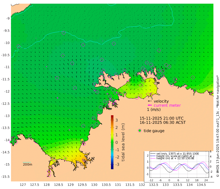 36cm/s -101T +4cm/s rms + 6cm/s 51T. Darwin_C1 52m 7cm/s -91T +4cm/s rms + 7cm/s -161T. Darwin_CW1 22m 20cm/s -105T +4cm/s rms + 8cm/s 61T. Darwin_CW2 34m 4cm/s -16T +3cm/s rms + 9cm/s 98T. Darwin_CW3 22m 14cm/s -97T +5cm/s rms + 7cm/s 88T. Darwin_C3 56m 28cm/s -115T +2cm/s rms + 9cm/s -126T. Darwin_CTbW 22m 5cm/s -24T +9cm/s rms + 2cm/s -110T. NWSLYN 196m 46cm/s -86T +1cm/s rms + 1cm/s -47T. DARBGF 30m 5cm/s -56T +7cm/s rms + 2cm/s -137T. ITFTIS 464m 18cm/s -18T +9cm/s rms + 1cm/s 74T. ITFMHB 146m 30cm/s -33T +4cm/s rms + 1cm/s -134T. ITFJBG 61m 33cm/s -47T +6cm/s rms + 4cm/s 121T. ITFFTB 108m 47cm/s -56T +4cm/s rms + 3cm/s 80T. NRSDAR 19m 3cm Carronade Island 5cm Guy Point 10cm Napier Broome Bay 6cm Lesueur Island 27cm Reveley Island 22cm Rocky Island 67cm Cape Domett 49cm Lacrosse Island 91cm Adolphus Island 150cm Pender Point 160cm Wyndham -46cm The Boxers -45cm Unnamed Shoal -47cm Loxton Shoal 52cm Pelican Island -59cm Calder Shoal -55cm Evans Shoal 126cm Quoin Island 17cm Port Keats 27cm Jones Point 73cm Catfish Island -36cm Cape Scott Offshore -23cm Cape Ford -42cm Anson Bay -55cm Goodrich Bank -47cm Peron Island North -48cm Point Jenny -46cm Native Point -47cm Fish Reef -39cm Tapa Bay -73cm Point Fawcett (Offshore) -25cm Burge Point -42cm Munkunuwa -56cm Beagle A -28cm Parsons Bank -32cm Fenton Patches -46cm Lynedoch Bank -22cm Hancox Shoal Area -36cm Nightcliff -17cm Darwin -31cm Charles Point Patches 13cm Glyde Point 43cm Chambers Bay 62cm Point Stuart 19cm Cape Hotham 41cm Christine Reef 74cm West Alligator Head 97cm East Field Island 26cm Two Hills Bay -54cm Newby Shoal 37cm Camp Point -40cm Medina Inlet South -69cm South Barlow Point -70cm St. Asaph Bay -59cm Cape Van Dieman -60cm Snake Bay -59cm Cache Point -48cm Echo Shoal -49cm Point Jahleel (Off) -29cm Cape Don -46cm Port Essington -55cm Smith Point - West -49cm NW Peacock Island -59cm North Of Jones Shoal -20cm Peacock Island -31cm Point David -52cm D'urville Point -40cm Money Shoal -30cm Copeland Island -45cm Cape Cockburn -37cm One Tree Point -28cm Hogmany Shoal -32cm New Year Island - West -30cm Grant Island -23cm Aurari Bay -7cm Cuthbert Point -25cm North Goulburn Island 11cm Paxie Shoal 16cm Entrance Island 33cm Yabooma Island