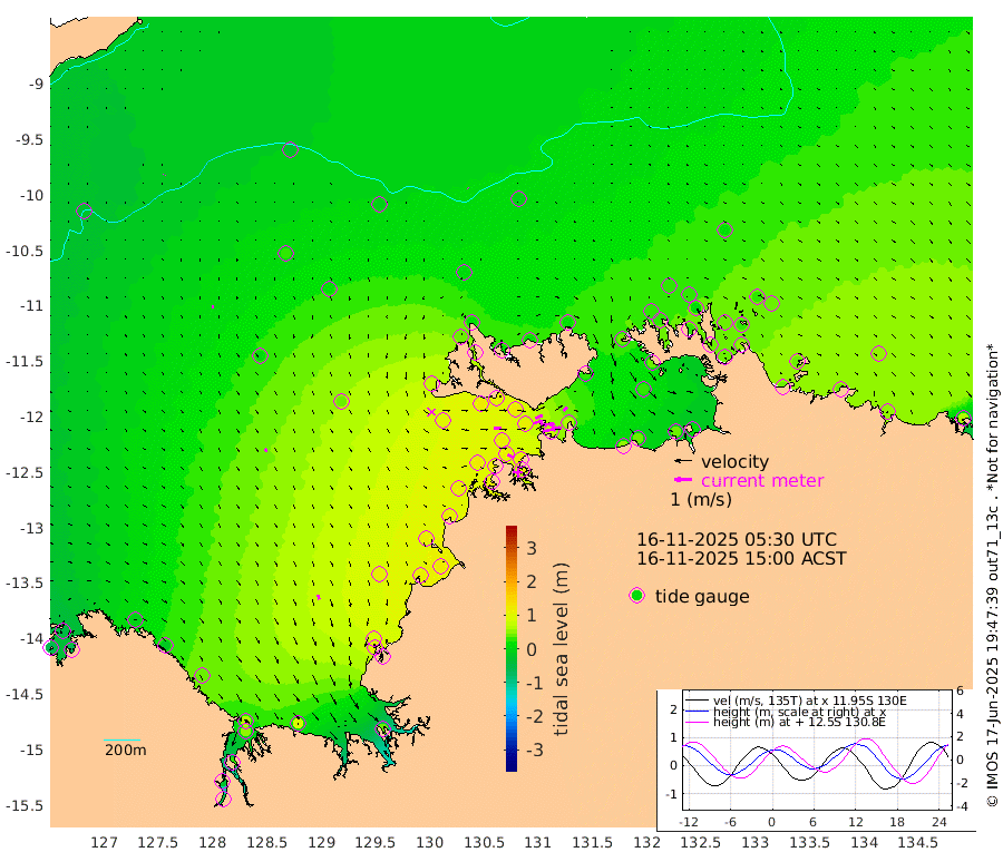 78cm/s 78T +4cm/s rms + 6cm/s 51T. Darwin_C1 52m 52cm/s 89T +4cm/s rms + 7cm/s -161T. Darwin_CW1 22m 55cm/s 74T +4cm/s rms + 8cm/s 61T. Darwin_CW2 34m 31cm/s 50T +3cm/s rms + 9cm/s 98T. Darwin_CW3 22m 77cm/s 88T +5cm/s rms + 7cm/s 88T. Darwin_C3 56m 43cm/s 65T +2cm/s rms + 9cm/s -126T. Darwin_CTbW 22m 3cm/s 132T +9cm/s rms + 2cm/s -110T. NWSLYN 196m 41cm/s 89T +1cm/s rms + 1cm/s -47T. DARBGF 30m 2cm/s -164T +7cm/s rms + 2cm/s -137T. ITFTIS 464m 12cm/s -178T +9cm/s rms + 1cm/s 74T. ITFMHB 146m 25cm/s 162T +4cm/s rms + 1cm/s -134T. ITFJBG 61m 20cm/s 146T +6cm/s rms + 4cm/s 121T. ITFFTB 108m 38cm/s 117T +4cm/s rms + 3cm/s 80T. NRSDAR 19m -55cm Carronade Island -57cm Guy Point -63cm Napier Broome Bay -4cm Lesueur Island 44cm Reveley Island -19cm Rocky Island 56cm Cape Domett 61cm Lacrosse Island 28cm Adolphus Island -29cm Pender Point -48cm Wyndham 10cm The Boxers 26cm Unnamed Shoal -27cm Loxton Shoal 87cm Pelican Island 12cm Calder Shoal -4cm Evans Shoal 41cm Quoin Island 92cm Port Keats 103cm Jones Point 83cm Catfish Island 105cm Cape Scott Offshore 108cm Cape Ford 122cm Anson Bay 6cm Goodrich Bank 110cm Peron Island North 108cm Point Jenny 103cm Native Point 117cm Fish Reef 117cm Tapa Bay 76cm Point Fawcett (Offshore) 112cm Burge Point 113cm Munkunuwa 91cm Beagle A 113cm Parsons Bank 107cm Fenton Patches -6cm Lynedoch Bank 110cm Hancox Shoal Area 120cm Nightcliff 117cm Darwin 112cm Charles Point Patches 73cm Glyde Point 49cm Chambers Bay 36cm Point Stuart 63cm Cape Hotham 32cm Christine Reef 36cm West Alligator Head 14cm East Field Island 44cm Two Hills Bay 40cm Newby Shoal 33cm Camp Point 112cm Medina Inlet South 53cm South Barlow Point 42cm St. Asaph Bay 12cm Cape Van Dieman 13cm Snake Bay 16cm Cache Point -31cm Echo Shoal 22cm Point Jahleel (Off) 40cm Cape Don 27cm Port Essington 29cm Smith Point - West 24cm NW Peacock Island 23cm North Of Jones Shoal 9cm Peacock Island 34cm Point David 30cm D'urville Point 18cm Money Shoal 36cm Copeland Island 48cm Cape Cockburn 34cm One Tree Point 40cm Hogmany Shoal 29cm New Year Island - West 31cm Grant Island 43cm Aurari Bay 43cm Cuthbert Point 44cm North Goulburn Island 46cm Paxie Shoal 52cm Entrance Island 65cm Yabooma Island