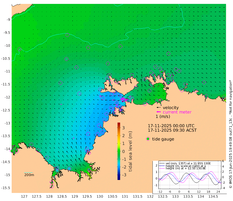 116cm/s -102T +4cm/s rms + 6cm/s 51T. Darwin_C1 52m 89cm/s -89T +4cm/s rms + 7cm/s -161T. Darwin_CW1 22m 84cm/s -107T +4cm/s rms + 8cm/s 61T. Darwin_CW2 34m 46cm/s -132T +3cm/s rms + 9cm/s 98T. Darwin_CW3 22m 118cm/s -91T +5cm/s rms + 7cm/s 88T. Darwin_C3 56m 70cm/s -115T +2cm/s rms + 9cm/s -126T. Darwin_CTbW 22m 3cm/s -139T +9cm/s rms + 2cm/s -110T. NWSLYN 196m 53cm/s -93T +1cm/s rms + 1cm/s -47T. DARBGF 30m 2cm/s -173T +7cm/s rms + 2cm/s -137T. ITFTIS 464m 8cm/s -11T +9cm/s rms + 1cm/s 74T. ITFMHB 146m 26cm/s -18T +4cm/s rms + 1cm/s -134T. ITFJBG 61m 20cm/s -43T +6cm/s rms + 4cm/s 121T. ITFFTB 108m 44cm/s -63T +4cm/s rms + 3cm/s 80T. NRSDAR 19m 11cm Carronade Island 18cm Guy Point 14cm Napier Broome Bay -67cm Lesueur Island -112cm Reveley Island -58cm Rocky Island -144cm Cape Domett -146cm Lacrosse Island -121cm Adolphus Island -37cm Pender Point -21cm Wyndham -72cm The Boxers -84cm Unnamed Shoal -17cm Loxton Shoal -163cm Pelican Island -68cm Calder Shoal -32cm Evans Shoal -130cm Quoin Island -189cm Port Keats -182cm Jones Point -148cm Catfish Island -177cm Cape Scott Offshore -202cm Cape Ford -197cm Anson Bay -47cm Goodrich Bank -187cm Peron Island North -186cm Point Jenny -183cm Native Point -202cm Fish Reef -195cm Tapa Bay -137cm Point Fawcett (Offshore) -207cm Burge Point -184cm Munkunuwa -180cm Beagle A -193cm Parsons Bank -206cm Fenton Patches -33cm Lynedoch Bank -184cm Hancox Shoal Area -208cm Nightcliff -210cm Darwin -202cm Charles Point Patches -142cm Glyde Point -92cm Chambers Bay -79cm Point Stuart -118cm Cape Hotham -82cm Christine Reef -78cm West Alligator Head -57cm East Field Island -91cm Two Hills Bay -141cm Newby Shoal -84cm Camp Point -197cm Medina Inlet South -115cm South Barlow Point -94cm St. Asaph Bay -53cm Cape Van Dieman -58cm Snake Bay -59cm Cache Point -6cm Echo Shoal -63cm Point Jahleel (Off) -86cm Cape Don -65cm Port Essington -69cm Smith Point - West -61cm NW Peacock Island -59cm North Of Jones Shoal -22cm Peacock Island -58cm Point David -67cm D'urville Point -51cm Money Shoal -58cm Copeland Island -86cm Cape Cockburn -64cm One Tree Point -64cm Hogmany Shoal -63cm New Year Island - West -61cm Grant Island -69cm Aurari Bay -67cm Cuthbert Point -69cm North Goulburn Island -60cm Paxie Shoal -67cm Entrance Island -66cm Yabooma Island