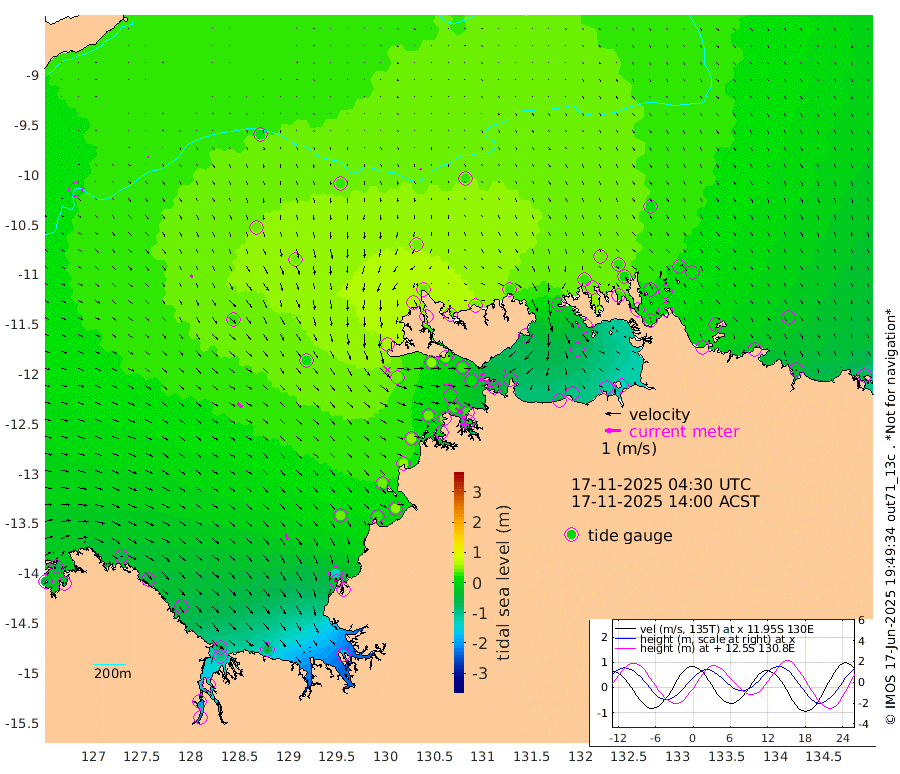 30cm/s 78T +4cm/s rms + 6cm/s 51T. Darwin_C1 52m 9cm/s 73T +4cm/s rms + 7cm/s -161T. Darwin_CW1 22m 27cm/s 75T +4cm/s rms + 8cm/s 61T. Darwin_CW2 34m 15cm/s -164T +3cm/s rms + 9cm/s 98T. Darwin_CW3 22m 21cm/s 81T +5cm/s rms + 7cm/s 88T. Darwin_C3 56m 29cm/s 63T +2cm/s rms + 9cm/s -126T. Darwin_CTbW 22m 9cm/s 156T +9cm/s rms + 2cm/s -110T. NWSLYN 196m 54cm/s 94T +1cm/s rms + 1cm/s -47T. DARBGF 30m 6cm/s 118T +7cm/s rms + 2cm/s -137T. ITFTIS 464m 20cm/s 163T +9cm/s rms + 1cm/s 74T. ITFMHB 146m 37cm/s 147T +4cm/s rms + 1cm/s -134T. ITFJBG 61m 40cm/s 134T +6cm/s rms + 4cm/s 121T. ITFFTB 108m 56cm/s 123T +4cm/s rms + 3cm/s 80T. NRSDAR 19m -53cm Carronade Island -52cm Guy Point -58cm Napier Broome Bay -47cm Lesueur Island -50cm Reveley Island -56cm Rocky Island -95cm Cape Domett -77cm Lacrosse Island -142cm Adolphus Island -193cm Pender Point -219cm Wyndham 23cm The Boxers 37cm Unnamed Shoal 19cm Loxton Shoal -66cm Pelican Island 37cm Calder Shoal 33cm Evans Shoal -173cm Quoin Island -34cm Port Keats -29cm Jones Point -130cm Catfish Island 35cm Cape Scott Offshore 28cm Cape Ford 47cm Anson Bay 38cm Goodrich Bank 39cm Peron Island North 47cm Point Jenny 47cm Native Point 40cm Fish Reef 45cm Tapa Bay 66cm Point Fawcett (Offshore) 17cm Burge Point 51cm Munkunuwa 41cm Beagle A 25cm Parsons Bank 20cm Fenton Patches 26cm Lynedoch Bank 19cm Hancox Shoal Area 30cm Nightcliff 12cm Darwin 27cm Charles Point Patches -29cm Glyde Point -67cm Chambers Bay -93cm Point Stuart -40cm Cape Hotham -72cm Christine Reef -107cm West Alligator Head -139cm East Field Island -53cm Two Hills Bay 16cm Newby Shoal -59cm Camp Point 39cm Medina Inlet South 57cm South Barlow Point 59cm St. Asaph Bay 45cm Cape Van Dieman 44cm Snake Bay 40cm Cache Point 16cm Echo Shoal 30cm Point Jahleel (Off) 9cm Cape Don 28cm Port Essington 34cm Smith Point - West 28cm NW Peacock Island 37cm North Of Jones Shoal 13cm Peacock Island 19cm Point David 32cm D'urville Point 20cm Money Shoal 17cm Copeland Island 17cm Cape Cockburn 19cm One Tree Point 11cm Hogmany Shoal 13cm New Year Island - West 12cm Grant Island 6cm Aurari Bay -13cm Cuthbert Point 7cm North Goulburn Island -19cm Paxie Shoal -30cm Entrance Island -46cm Yabooma Island