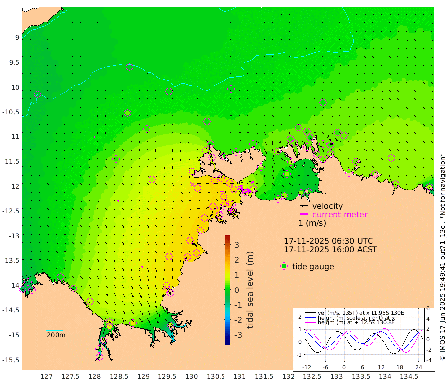 104cm/s 78T +4cm/s rms + 6cm/s 51T. Darwin_C1 52m 81cm/s 91T +4cm/s rms + 7cm/s -161T. Darwin_CW1 22m 76cm/s 74T +4cm/s rms + 8cm/s 61T. Darwin_CW2 34m 45cm/s 48T +3cm/s rms + 9cm/s 98T. Darwin_CW3 22m 113cm/s 89T +5cm/s rms + 7cm/s 88T. Darwin_C3 56m 54cm/s 66T +2cm/s rms + 9cm/s -126T. Darwin_CTbW 22m 2cm/s 107T +9cm/s rms + 2cm/s -110T. NWSLYN 196m 49cm/s 87T +1cm/s rms + 1cm/s -47T. DARBGF 30m 2cm/s -162T +7cm/s rms + 2cm/s -137T. ITFTIS 464m 14cm/s -177T +9cm/s rms + 1cm/s 74T. ITFMHB 146m 27cm/s 166T +4cm/s rms + 1cm/s -134T. ITFJBG 61m 21cm/s 148T +6cm/s rms + 4cm/s 121T. ITFFTB 108m 46cm/s 116T +4cm/s rms + 3cm/s 80T. NRSDAR 19m -61cm Carronade Island -61cm Guy Point -68cm Napier Broome Bay 12cm Lesueur Island 77cm Reveley Island 2cm Rocky Island 99cm Cape Domett 102cm Lacrosse Island 68cm Adolphus Island -2cm Pender Point -27cm Wyndham 23cm The Boxers 39cm Unnamed Shoal -22cm Loxton Shoal 132cm Pelican Island 25cm Calder Shoal 1cm Evans Shoal 88cm Quoin Island 139cm Port Keats 148cm Jones Point 103cm Catfish Island 144cm Cape Scott Offshore 158cm Cape Ford 164cm Anson Bay 13cm Goodrich Bank 148cm Peron Island North 145cm Point Jenny 142cm Native Point 156cm Fish Reef 159cm Tapa Bay 100cm Point Fawcett (Offshore) 156cm Burge Point 155cm Munkunuwa 126cm Beagle A 154cm Parsons Bank 151cm Fenton Patches -2cm Lynedoch Bank 150cm Hancox Shoal Area 165cm Nightcliff 164cm Darwin 157cm Charles Point Patches 103cm Glyde Point 64cm Chambers Bay 49cm Point Stuart 85cm Cape Hotham 47cm Christine Reef 49cm West Alligator Head 24cm East Field Island 58cm Two Hills Bay 65cm Newby Shoal 50cm Camp Point 155cm Medina Inlet South 74cm South Barlow Point 59cm St. Asaph Bay 20cm Cape Van Dieman 21cm Snake Bay 23cm Cache Point -30cm Echo Shoal 30cm Point Jahleel (Off) 50cm Cape Don 32cm Port Essington 35cm Smith Point - West 27cm NW Peacock Island 26cm North Of Jones Shoal 10cm Peacock Island 34cm Point David 33cm D'urville Point 19cm Money Shoal 36cm Copeland Island 48cm Cape Cockburn 35cm One Tree Point 40cm Hogmany Shoal 30cm New Year Island - West 31cm Grant Island 43cm Aurari Bay 40cm Cuthbert Point 42cm North Goulburn Island 45cm Paxie Shoal 49cm Entrance Island 58cm Yabooma Island