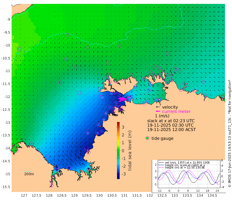 173cm/s -101T +4cm/s rms + 6cm/s 51T. Darwin_C1 52m 159cm/s -91T +4cm/s rms + 7cm/s -161T. Darwin_CW1 22m 98cm/s -106T +4cm/s rms + 8cm/s 61T. Darwin_CW2 34m 84cm/s -136T +3cm/s rms + 9cm/s 98T. Darwin_CW3 22m 167cm/s -90T +5cm/s rms + 7cm/s 88T. Darwin_C3 56m 95cm/s -115T +2cm/s rms + 9cm/s -126T. Darwin_CTbW 22m 7cm/s -161T +9cm/s rms + 2cm/s -110T. NWSLYN 196m 29cm/s -104T +1cm/s rms + 1cm/s -47T. DARBGF 30m 8cm/s 144T +7cm/s rms + 2cm/s -137T. ITFTIS 464m 8cm/s 149T +9cm/s rms + 1cm/s 74T. ITFMHB 146m 11cm/s 33T +4cm/s rms + 1cm/s -134T. ITFJBG 61m 10cm/s 117T +6cm/s rms + 4cm/s 121T. ITFFTB 108m 17cm/s -85T +4cm/s rms + 3cm/s 80T. NRSDAR 19m 12cm Carronade Island 16cm Guy Point 9cm Napier Broome Bay -108cm Lesueur Island -192cm Reveley Island -92cm Rocky Island -276cm Cape Domett -260cm Lacrosse Island -276cm Adolphus Island -208cm Pender Point -197cm Wyndham -63cm The Boxers -83cm Unnamed Shoal 8cm Loxton Shoal -290cm Pelican Island -46cm Calder Shoal -5cm Evans Shoal -336cm Quoin Island -291cm Port Keats -281cm Jones Point -304cm Catfish Island -224cm Cape Scott Offshore -229cm Cape Ford -248cm Anson Bay -23cm Goodrich Bank -226cm Peron Island North -211cm Point Jenny -208cm Native Point -236cm Fish Reef -237cm Tapa Bay -127cm Point Fawcett (Offshore) -262cm Burge Point -219cm Munkunuwa -192cm Beagle A -250cm Parsons Bank -250cm Fenton Patches -15cm Lynedoch Bank -246cm Hancox Shoal Area -264cm Nightcliff -286cm Darwin -262cm Charles Point Patches -216cm Glyde Point -173cm Chambers Bay -175cm Point Stuart -192cm Cape Hotham -158cm Christine Reef -185cm West Alligator Head -174cm East Field Island -161cm Two Hills Bay -147cm Newby Shoal -158cm Camp Point -242cm Medina Inlet South -104cm South Barlow Point -72cm St. Asaph Bay -27cm Cape Van Dieman -38cm Snake Bay -36cm Cache Point 27cm Echo Shoal -53cm Point Jahleel (Off) -105cm Cape Don -61cm Port Essington -58cm Smith Point - West -54cm NW Peacock Island -45cm North Of Jones Shoal -18cm Peacock Island -71cm Point David -59cm D'urville Point -51cm Money Shoal -72cm Copeland Island -104cm Cape Cockburn -76cm One Tree Point -88cm Hogmany Shoal -77cm New Year Island - West -78cm Grant Island -96cm Aurari Bay -107cm Cuthbert Point -95cm North Goulburn Island -118cm Paxie Shoal -123cm Entrance Island -140cm Yabooma Island