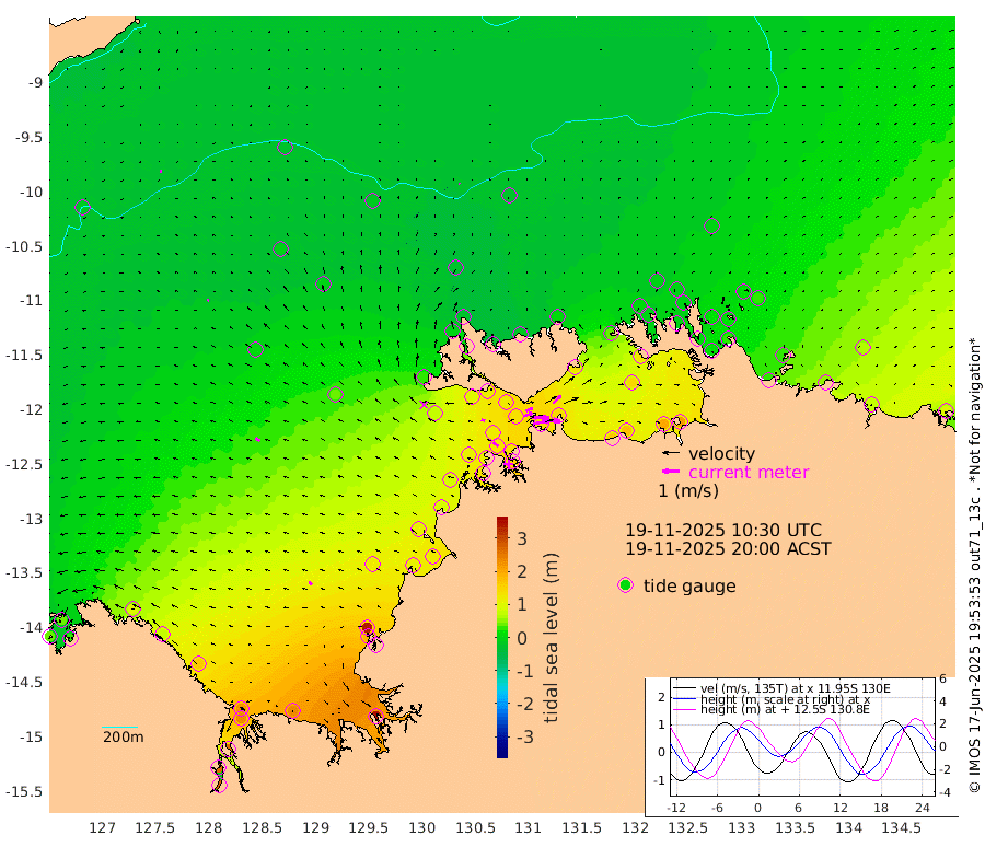 99cm/s 80T +4cm/s rms + 6cm/s 51T. Darwin_C1 52m 104cm/s 91T +4cm/s rms + 7cm/s -161T. Darwin_CW1 22m 52cm/s 71T +4cm/s rms + 8cm/s 61T. Darwin_CW2 34m 64cm/s 45T +3cm/s rms + 9cm/s 98T. Darwin_CW3 22m 102cm/s 91T +5cm/s rms + 7cm/s 88T. Darwin_C3 56m 43cm/s 66T +2cm/s rms + 9cm/s -126T. Darwin_CTbW 22m 7cm/s -7T +9cm/s rms + 2cm/s -110T. NWSLYN 196m 21cm/s -68T +1cm/s rms + 1cm/s -47T. DARBGF 30m 7cm/s -97T +7cm/s rms + 2cm/s -137T. ITFTIS 464m 9cm/s -70T +9cm/s rms + 1cm/s 74T. ITFMHB 146m 22cm/s -52T +4cm/s rms + 1cm/s -134T. ITFJBG 61m 28cm/s -60T +6cm/s rms + 4cm/s 121T. ITFFTB 108m 38cm/s -49T +4cm/s rms + 3cm/s 80T. NRSDAR 19m 34cm Carronade Island 40cm Guy Point 31cm Napier Broome Bay 97cm Lesueur Island 165cm Reveley Island 74cm Rocky Island 236cm Cape Domett 221cm Lacrosse Island 265cm Adolphus Island 269cm Pender Point 278cm Wyndham 8cm The Boxers -2cm Unnamed Shoal -23cm Loxton Shoal 235cm Pelican Island -4cm Calder Shoal -20cm Evans Shoal 340cm Quoin Island 189cm Port Keats 187cm Jones Point 328cm Catfish Island 118cm Cape Scott Offshore 106cm Cape Ford 118cm Anson Bay -24cm Goodrich Bank 109cm Peron Island North 87cm Point Jenny 84cm Native Point 105cm Fish Reef 108cm Tapa Bay 31cm Point Fawcett (Offshore) 125cm Burge Point 93cm Munkunuwa 69cm Beagle A 119cm Parsons Bank 116cm Fenton Patches -23cm Lynedoch Bank 129cm Hancox Shoal Area 129cm Nightcliff 148cm Darwin 124cm Charles Point Patches 139cm Glyde Point 159cm Chambers Bay 174cm Point Stuart 141cm Cape Hotham 143cm Christine Reef 194cm West Alligator Head 207cm East Field Island 135cm Two Hills Bay 43cm Newby Shoal 125cm Camp Point 108cm Medina Inlet South 8cm South Barlow Point -2cm St. Asaph Bay -27cm Cape Van Dieman -23cm Snake Bay -15cm Cache Point -22cm Echo Shoal 3cm Point Jahleel (Off) 44cm Cape Don 1cm Port Essington -1cm Smith Point - West -3cm NW Peacock Island -8cm North Of Jones Shoal -2cm Peacock Island 11cm Point David -4cm D'urville Point -6cm Money Shoal 13cm Copeland Island 24cm Cape Cockburn 14cm One Tree Point 31cm Hogmany Shoal 13cm New Year Island - West 17cm Grant Island 31cm Aurari Bay 48cm Cuthbert Point 31cm North Goulburn Island 64cm Paxie Shoal 73cm Entrance Island 99cm Yabooma Island