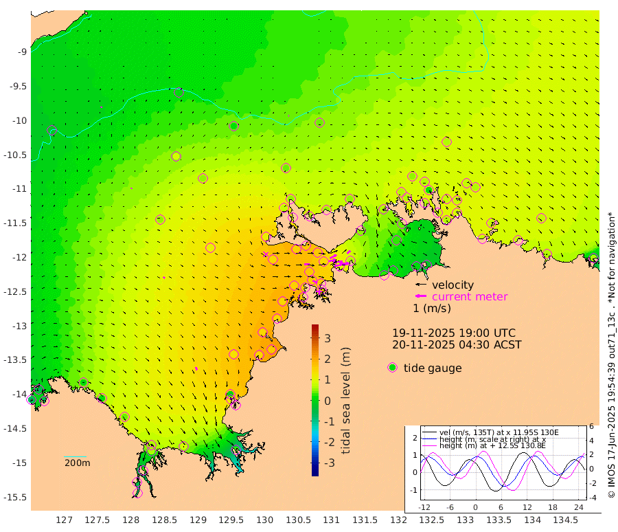 107cm/s 77T +4cm/s rms + 6cm/s 51T. Darwin_C1 52m 84cm/s 85T +4cm/s rms + 7cm/s -161T. Darwin_CW1 22m 64cm/s 75T +4cm/s rms + 8cm/s 61T. Darwin_CW2 34m 39cm/s 51T +3cm/s rms + 9cm/s 98T. Darwin_CW3 22m 85cm/s 88T +5cm/s rms + 7cm/s 88T. Darwin_C3 56m 70cm/s 64T +2cm/s rms + 9cm/s -126T. Darwin_CTbW 22m 3cm/s 88T +9cm/s rms + 2cm/s -110T. NWSLYN 196m 48cm/s 89T +1cm/s rms + 1cm/s -47T. DARBGF 30m 8cm/s 9T +7cm/s rms + 2cm/s -137T. ITFTIS 464m 5cm/s 38T +9cm/s rms + 1cm/s 74T. ITFMHB 146m 27cm/s 158T +4cm/s rms + 1cm/s -134T. ITFJBG 61m 18cm/s 125T +6cm/s rms + 4cm/s 121T. ITFFTB 108m 47cm/s 117T +4cm/s rms + 3cm/s 80T. NRSDAR 19m -65cm Carronade Island -74cm Guy Point -59cm Napier Broome Bay 11cm Lesueur Island 43cm Reveley Island 19cm Rocky Island 64cm Cape Domett 61cm Lacrosse Island 34cm Adolphus Island -48cm Pender Point -73cm Wyndham 54cm The Boxers 90cm Unnamed Shoal 6cm Loxton Shoal 85cm Pelican Island 47cm Calder Shoal 19cm Evans Shoal 28cm Quoin Island 132cm Port Keats 123cm Jones Point -6cm Catfish Island 130cm Cape Scott Offshore 141cm Cape Ford 158cm Anson Bay 45cm Goodrich Bank 140cm Peron Island North 144cm Point Jenny 145cm Native Point 153cm Fish Reef 155cm Tapa Bay 105cm Point Fawcett (Offshore) 163cm Burge Point 151cm Munkunuwa 137cm Beagle A 159cm Parsons Bank 158cm Fenton Patches 34cm Lynedoch Bank 145cm Hancox Shoal Area 164cm Nightcliff 170cm Darwin 166cm Charles Point Patches 98cm Glyde Point 27cm Chambers Bay 13cm Point Stuart 67cm Cape Hotham 26cm Christine Reef 3cm West Alligator Head -24cm East Field Island 39cm Two Hills Bay 109cm Newby Shoal 45cm Camp Point 159cm Medina Inlet South 104cm South Barlow Point 78cm St. Asaph Bay 52cm Cape Van Dieman 62cm Snake Bay 49cm Cache Point -18cm Echo Shoal 51cm Point Jahleel (Off) 67cm Cape Don 62cm Port Essington 62cm Smith Point - West 59cm NW Peacock Island 54cm North Of Jones Shoal 21cm Peacock Island 68cm Point David 66cm D'urville Point 59cm Money Shoal 67cm Copeland Island 89cm Cape Cockburn 69cm One Tree Point 66cm Hogmany Shoal 70cm New Year Island - West 69cm Grant Island 76cm Aurari Bay 70cm Cuthbert Point 73cm North Goulburn Island 69cm Paxie Shoal 64cm Entrance Island 58cm Yabooma Island
