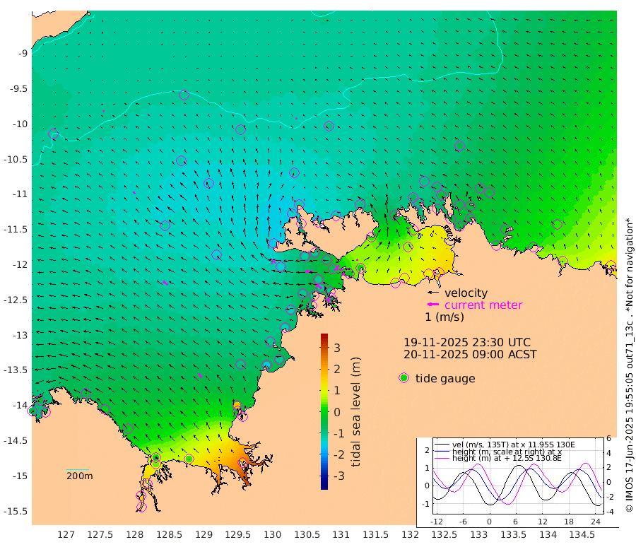 32cm/s -104T +4cm/s rms + 6cm/s 51T. Darwin_C1 52m 2cm/s -41T +4cm/s rms + 7cm/s -161T. Darwin_CW1 22m 38cm/s -106T +4cm/s rms + 8cm/s 61T. Darwin_CW2 34m 13cm/s 22T +3cm/s rms + 9cm/s 98T. Darwin_CW3 22m 30cm/s -96T +5cm/s rms + 7cm/s 88T. Darwin_C3 56m 33cm/s -116T +2cm/s rms + 9cm/s -126T. Darwin_CTbW 22m 11cm/s -41T +9cm/s rms + 2cm/s -110T. NWSLYN 196m 71cm/s -88T +1cm/s rms + 1cm/s -47T. DARBGF 30m 11cm/s -113T +7cm/s rms + 2cm/s -137T. ITFTIS 464m 22cm/s -35T +9cm/s rms + 1cm/s 74T. ITFMHB 146m 41cm/s -34T +4cm/s rms + 1cm/s -134T. ITFJBG 61m 50cm/s -55T +6cm/s rms + 4cm/s 121T. ITFFTB 108m 76cm/s -55T +4cm/s rms + 3cm/s 80T. NRSDAR 19m -45cm Carronade Island -46cm Guy Point -43cm Napier Broome Bay -53cm Lesueur Island -14cm Reveley Island 0cm Rocky Island 41cm Cape Domett 15cm Lacrosse Island 98cm Adolphus Island 163cm Pender Point 187cm Wyndham -119cm The Boxers -122cm Unnamed Shoal -111cm Loxton Shoal 33cm Pelican Island -136cm Calder Shoal -108cm Evans Shoal 163cm Quoin Island -31cm Port Keats -14cm Jones Point 179cm Catfish Island -98cm Cape Scott Offshore -157cm Cape Ford -107cm Anson Bay -115cm Goodrich Bank -105cm Peron Island North -126cm Point Jenny -129cm Native Point -112cm Fish Reef -119cm Tapa Bay -146cm Point Fawcett (Offshore) -101cm Burge Point -116cm Munkunuwa -138cm Beagle A -84cm Parsons Bank -108cm Fenton Patches -96cm Lynedoch Bank -76cm Hancox Shoal Area -102cm Nightcliff -77cm Darwin -102cm Charles Point Patches -13cm Glyde Point 59cm Chambers Bay 93cm Point Stuart 13cm Cape Hotham 47cm Christine Reef 112cm West Alligator Head 147cm East Field Island 37cm Two Hills Bay -140cm Newby Shoal 28cm Camp Point -111cm Medina Inlet South -139cm South Barlow Point -142cm St. Asaph Bay -121cm Cape Van Dieman -120cm Snake Bay -114cm Cache Point -105cm Echo Shoal -95cm Point Jahleel (Off) -54cm Cape Don -78cm Port Essington -87cm Smith Point - West -78cm NW Peacock Island -92cm North Of Jones Shoal -30cm Peacock Island -44cm Point David -79cm D'urville Point -65cm Money Shoal -37cm Copeland Island -49cm Cape Cockburn -48cm One Tree Point -40cm Hogmany Shoal -49cm New Year Island - West -43cm Grant Island -14cm Aurari Bay 14cm Cuthbert Point -20cm North Goulburn Island 29cm Paxie Shoal 47cm Entrance Island 93cm Yabooma Island