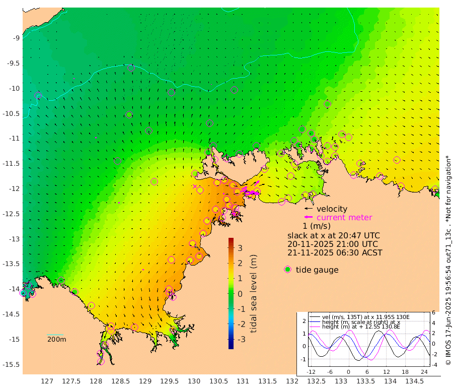 150cm/s 78T +4cm/s rms + 6cm/s 51T. Darwin_C1 52m 124cm/s 91T +4cm/s rms + 7cm/s -161T. Darwin_CW1 22m 79cm/s 74T +4cm/s rms + 8cm/s 61T. Darwin_CW2 34m 88cm/s 43T +3cm/s rms + 9cm/s 98T. Darwin_CW3 22m 131cm/s 89T +5cm/s rms + 7cm/s 88T. Darwin_C3 56m 73cm/s 66T +2cm/s rms + 9cm/s -126T. Darwin_CTbW 22m 6cm/s 0T +9cm/s rms + 2cm/s -110T. NWSLYN 196m 17cm/s 75T +1cm/s rms + 1cm/s -47T. DARBGF 30m 8cm/s -55T +7cm/s rms + 2cm/s -137T. ITFTIS 464m 13cm/s -30T +9cm/s rms + 1cm/s 74T. ITFMHB 146m 12cm/s -138T +4cm/s rms + 1cm/s -134T. ITFJBG 61m 14cm/s -69T +6cm/s rms + 4cm/s 121T. ITFFTB 108m 15cm/s 90T +4cm/s rms + 3cm/s 80T. NRSDAR 19m -110cm Carronade Island -117cm Guy Point -107cm Napier Broome Bay -6cm Lesueur Island 82cm Reveley Island 24cm Rocky Island 151cm Cape Domett 131cm Lacrosse Island 154cm Adolphus Island 90cm Pender Point 72cm Wyndham -12cm The Boxers 27cm Unnamed Shoal -69cm Loxton Shoal 178cm Pelican Island -30cm Calder Shoal -49cm Evans Shoal 206cm Quoin Island 183cm Port Keats 181cm Jones Point 158cm Catfish Island 129cm Cape Scott Offshore 94cm Cape Ford 158cm Anson Bay -24cm Goodrich Bank 132cm Peron Island North 119cm Point Jenny 118cm Native Point 138cm Fish Reef 145cm Tapa Bay 46cm Point Fawcett (Offshore) 162cm Burge Point 138cm Munkunuwa 95cm Beagle A 170cm Parsons Bank 150cm Fenton Patches -26cm Lynedoch Bank 163cm Hancox Shoal Area 171cm Nightcliff 193cm Darwin 167cm Charles Point Patches 137cm Glyde Point 98cm Chambers Bay 101cm Point Stuart 116cm Cape Hotham 85cm Christine Reef 104cm West Alligator Head 92cm East Field Island 92cm Two Hills Bay 46cm Newby Shoal 92cm Camp Point 151cm Medina Inlet South 43cm South Barlow Point 9cm St. Asaph Bay -19cm Cape Van Dieman -5cm Snake Bay -17cm Cache Point -94cm Echo Shoal 3cm Point Jahleel (Off) 54cm Cape Don 23cm Port Essington 19cm Smith Point - West 20cm NW Peacock Island 5cm North Of Jones Shoal 5cm Peacock Island 55cm Point David 28cm D'urville Point 24cm Money Shoal 58cm Copeland Island 76cm Cape Cockburn 53cm One Tree Point 60cm Hogmany Shoal 53cm New Year Island - West 57cm Grant Island 85cm Aurari Bay 96cm Cuthbert Point 78cm North Goulburn Island 109cm Paxie Shoal 115cm Entrance Island 142cm Yabooma Island