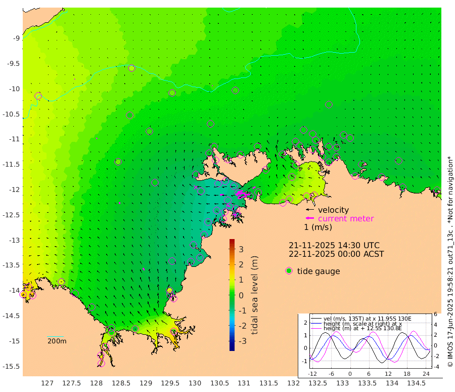 116cm/s -103T +4cm/s rms + 6cm/s 51T. Darwin_C1 52m 79cm/s -89T +4cm/s rms + 7cm/s -161T. Darwin_CW1 22m 79cm/s -109T +4cm/s rms + 8cm/s 61T. Darwin_CW2 34m 39cm/s -121T +3cm/s rms + 9cm/s 98T. Darwin_CW3 22m 85cm/s -92T +5cm/s rms + 7cm/s 88T. Darwin_C3 56m 72cm/s -115T +2cm/s rms + 9cm/s -126T. Darwin_CTbW 22m 3cm/s 123T +9cm/s rms + 2cm/s -110T. NWSLYN 196m 48cm/s -90T +1cm/s rms + 1cm/s -47T. DARBGF 30m 5cm/s 13T +7cm/s rms + 2cm/s -137T. ITFTIS 464m 11cm/s 15T +9cm/s rms + 1cm/s 74T. ITFMHB 146m 33cm/s -19T +4cm/s rms + 1cm/s -134T. ITFJBG 61m 23cm/s -26T +6cm/s rms + 4cm/s 121T. ITFFTB 108m 42cm/s -64T +4cm/s rms + 3cm/s 80T. NRSDAR 19m 164cm Carronade Island 167cm Guy Point 170cm Napier Broome Bay 98cm Lesueur Island 17cm Reveley Island 22cm Rocky Island 6cm Cape Domett 14cm Lacrosse Island 28cm Adolphus Island 120cm Pender Point 160cm Wyndham 35cm The Boxers 10cm Unnamed Shoal 67cm Loxton Shoal -36cm Pelican Island 32cm Calder Shoal 41cm Evans Shoal 33cm Quoin Island -66cm Port Keats -66cm Jones Point 101cm Catfish Island -69cm Cape Scott Offshore -69cm Cape Ford -97cm Anson Bay 19cm Goodrich Bank -75cm Peron Island North -85cm Point Jenny -84cm Native Point -88cm Fish Reef -97cm Tapa Bay -36cm Point Fawcett (Offshore) -96cm Burge Point -109cm Munkunuwa -67cm Beagle A -107cm Parsons Bank -93cm Fenton Patches 30cm Lynedoch Bank -96cm Hancox Shoal Area -107cm Nightcliff -104cm Darwin -94cm Charles Point Patches -36cm Glyde Point 25cm Chambers Bay 43cm Point Stuart -9cm Cape Hotham 23cm Christine Reef 51cm West Alligator Head 83cm East Field Island 20cm Two Hills Bay -5cm Newby Shoal 17cm Camp Point -97cm Medina Inlet South -40cm South Barlow Point -16cm St. Asaph Bay 12cm Cape Van Dieman 8cm Snake Bay 19cm Cache Point 88cm Echo Shoal 11cm Point Jahleel (Off) -5cm Cape Don 0cm Port Essington -5cm Smith Point - West 0cm NW Peacock Island 10cm North Of Jones Shoal 1cm Peacock Island -10cm Point David -8cm D'urville Point 6cm Money Shoal -13cm Copeland Island -11cm Cape Cockburn -6cm One Tree Point 5cm Hogmany Shoal -1cm New Year Island - West -5cm Grant Island -18cm Aurari Bay -15cm Cuthbert Point -11cm North Goulburn Island -10cm Paxie Shoal -15cm Entrance Island -19cm Yabooma Island