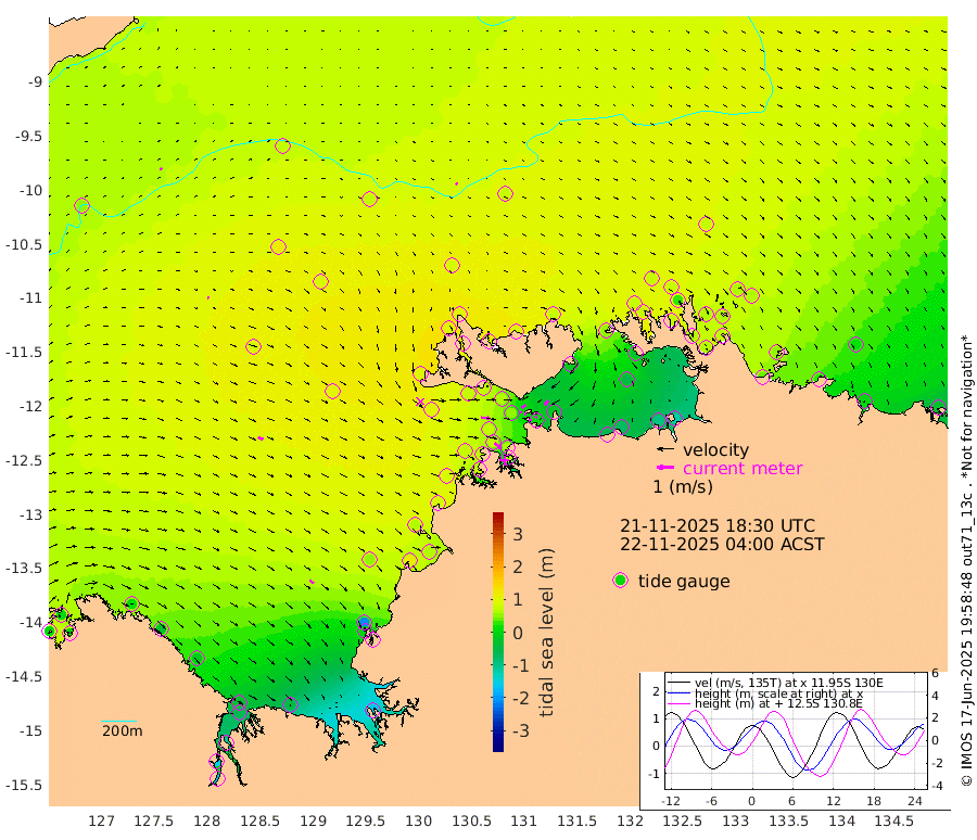 10cm/s 79T +4cm/s rms + 6cm/s 51T. Darwin_C1 52m 14cm/s -79T +4cm/s rms + 7cm/s -161T. Darwin_CW1 22m 12cm/s 75T +4cm/s rms + 8cm/s 61T. Darwin_CW2 34m 33cm/s -143T +3cm/s rms + 9cm/s 98T. Darwin_CW3 22m 12cm/s -85T +5cm/s rms + 7cm/s 88T. Darwin_C3 56m 30cm/s 61T +2cm/s rms + 9cm/s -126T. Darwin_CTbW 22m 9cm/s 131T +9cm/s rms + 2cm/s -110T. NWSLYN 196m 48cm/s 95T +1cm/s rms + 1cm/s -47T. DARBGF 30m 12cm/s 35T +7cm/s rms + 2cm/s -137T. ITFTIS 464m 11cm/s 73T +9cm/s rms + 1cm/s 74T. ITFMHB 146m 30cm/s 135T +4cm/s rms + 1cm/s -134T. ITFJBG 61m 31cm/s 113T +6cm/s rms + 4cm/s 121T. ITFFTB 108m 49cm/s 127T +4cm/s rms + 3cm/s 80T. NRSDAR 19m 5cm Carronade Island 0cm Guy Point 10cm Napier Broome Bay 20cm Lesueur Island -19cm Reveley Island -29cm Rocky Island -59cm Cape Domett -44cm Lacrosse Island -108cm Adolphus Island -152cm Pender Point -172cm Wyndham 82cm The Boxers 113cm Unnamed Shoal 71cm Loxton Shoal -56cm Pelican Island 89cm Calder Shoal 69cm Evans Shoal -165cm Quoin Island 8cm Port Keats 0cm Jones Point -213cm Catfish Island 51cm Cape Scott Offshore 117cm Cape Ford 65cm Anson Bay 87cm Goodrich Bank 65cm Peron Island North 80cm Point Jenny 85cm Native Point 71cm Fish Reef 77cm Tapa Bay 95cm Point Fawcett (Offshore) 72cm Burge Point 76cm Munkunuwa 90cm Beagle A 63cm Parsons Bank 71cm Fenton Patches 75cm Lynedoch Bank 50cm Hancox Shoal Area 63cm Nightcliff 57cm Darwin 73cm Charles Point Patches 8cm Glyde Point -61cm Chambers Bay -77cm Point Stuart -13cm Cape Hotham -48cm Christine Reef -97cm West Alligator Head -123cm East Field Island -33cm Two Hills Bay 101cm Newby Shoal -19cm Camp Point 75cm Medina Inlet South 103cm South Barlow Point 96cm St. Asaph Bay 92cm Cape Van Dieman 98cm Snake Bay 84cm Cache Point 54cm Echo Shoal 71cm Point Jahleel (Off) 45cm Cape Don 70cm Port Essington 71cm Smith Point - West 71cm NW Peacock Island 73cm North Of Jones Shoal 26cm Peacock Island 65cm Point David 73cm D'urville Point 71cm Money Shoal 58cm Copeland Island 74cm Cape Cockburn 62cm One Tree Point 63cm Hogmany Shoal 66cm New Year Island - West 63cm Grant Island 44cm Aurari Bay 27cm Cuthbert Point 49cm North Goulburn Island 21cm Paxie Shoal 6cm Entrance Island -23cm Yabooma Island