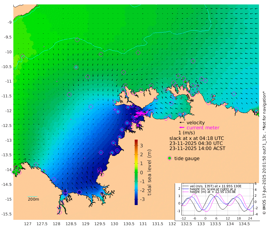 236cm/s -102T +4cm/s rms + 6cm/s 51T. Darwin_C1 52m 186cm/s -90T +4cm/s rms + 7cm/s -161T. Darwin_CW1 22m 114cm/s -106T +4cm/s rms + 8cm/s 61T. Darwin_CW2 34m 114cm/s -134T +3cm/s rms + 9cm/s 98T. Darwin_CW3 22m 177cm/s -90T +5cm/s rms + 7cm/s 88T. Darwin_C3 56m 137cm/s -115T +2cm/s rms + 9cm/s -126T. Darwin_CTbW 22m 6cm/s -121T +9cm/s rms + 2cm/s -110T. NWSLYN 196m 30cm/s -104T +1cm/s rms + 1cm/s -47T. DARBGF 30m 10cm/s 150T +7cm/s rms + 2cm/s -137T. ITFTIS 464m 10cm/s 154T +9cm/s rms + 1cm/s 74T. ITFMHB 146m 9cm/s 49T +4cm/s rms + 1cm/s -134T. ITFJBG 61m 12cm/s 120T +6cm/s rms + 4cm/s 121T. ITFFTB 108m 17cm/s -95T +4cm/s rms + 3cm/s 80T. NRSDAR 19m 8cm Carronade Island 6cm Guy Point 2cm Napier Broome Bay -122cm Lesueur Island -211cm Reveley Island -97cm Rocky Island -296cm Cape Domett -274cm Lacrosse Island -300cm Adolphus Island -235cm Pender Point -218cm Wyndham -76cm The Boxers -103cm Unnamed Shoal -5cm Loxton Shoal -316cm Pelican Island -52cm Calder Shoal -12cm Evans Shoal -359cm Quoin Island -315cm Port Keats -294cm Jones Point -289cm Catfish Island -240cm Cape Scott Offshore -223cm Cape Ford -266cm Anson Bay -36cm Goodrich Bank -232cm Peron Island North -223cm Point Jenny -224cm Native Point -234cm Fish Reef -258cm Tapa Bay -131cm Point Fawcett (Offshore) -268cm Burge Point -229cm Munkunuwa -193cm Beagle A -265cm Parsons Bank -257cm Fenton Patches -27cm Lynedoch Bank -268cm Hancox Shoal Area -282cm Nightcliff -303cm Darwin -280cm Charles Point Patches -226cm Glyde Point -178cm Chambers Bay -172cm Point Stuart -194cm Cape Hotham -168cm Christine Reef -181cm West Alligator Head -167cm East Field Island -163cm Two Hills Bay -152cm Newby Shoal -169cm Camp Point -253cm Medina Inlet South -114cm South Barlow Point -81cm St. Asaph Bay -39cm Cape Van Dieman -53cm Snake Bay -44cm Cache Point 25cm Echo Shoal -63cm Point Jahleel (Off) -113cm Cape Don -71cm Port Essington -70cm Smith Point - West -67cm NW Peacock Island -52cm North Of Jones Shoal -20cm Peacock Island -92cm Point David -73cm D'urville Point -64cm Money Shoal -91cm Copeland Island -116cm Cape Cockburn -90cm One Tree Point -117cm Hogmany Shoal -96cm New Year Island - West -99cm Grant Island -113cm Aurari Bay -126cm Cuthbert Point -112cm North Goulburn Island -142cm Paxie Shoal -139cm Entrance Island -148cm Yabooma Island