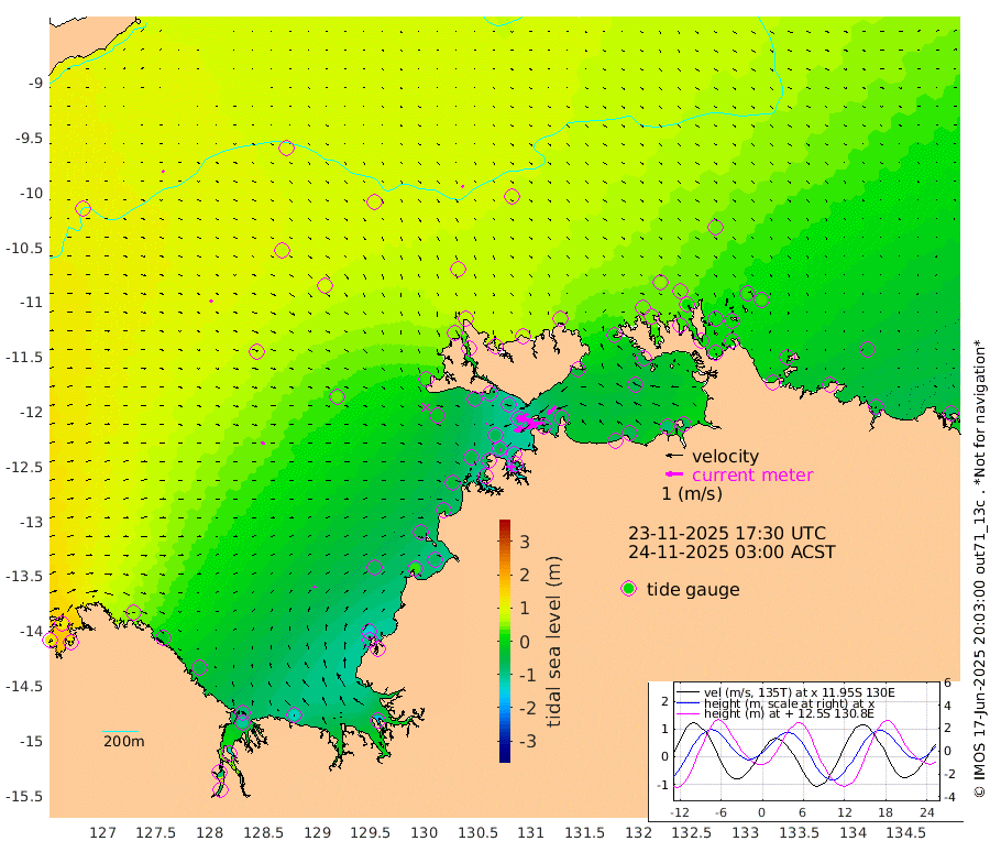 133cm/s -101T +4cm/s rms + 6cm/s 51T. Darwin_C1 52m 101cm/s -91T +4cm/s rms + 7cm/s -161T. Darwin_CW1 22m 54cm/s -107T +4cm/s rms + 8cm/s 61T. Darwin_CW2 34m 66cm/s -135T +3cm/s rms + 9cm/s 98T. Darwin_CW3 22m 84cm/s -90T +5cm/s rms + 7cm/s 88T. Darwin_C3 56m 75cm/s -115T +2cm/s rms + 9cm/s -126T. Darwin_CTbW 22m 10cm/s 138T +9cm/s rms + 2cm/s -110T. NWSLYN 196m 5cm/s -131T +1cm/s rms + 1cm/s -47T. DARBGF 30m 12cm/s 38T +7cm/s rms + 2cm/s -137T. ITFTIS 464m 13cm/s 52T +9cm/s rms + 1cm/s 74T. ITFMHB 146m 12cm/s 43T +4cm/s rms + 1cm/s -134T. ITFJBG 61m 18cm/s 77T +6cm/s rms + 4cm/s 121T. ITFFTB 108m 8cm/s -140T +4cm/s rms + 3cm/s 80T. NRSDAR 19m 115cm Carronade Island 113cm Guy Point 123cm Napier Broome Bay 56cm Lesueur Island -48cm Reveley Island -21cm Rocky Island -101cm Cape Domett -83cm Lacrosse Island -128cm Adolphus Island -79cm Pender Point -67cm Wyndham 74cm The Boxers 72cm Unnamed Shoal 101cm Loxton Shoal -128cm Pelican Island 79cm Calder Shoal 81cm Evans Shoal -178cm Quoin Island -106cm Port Keats -99cm Jones Point -146cm Catfish Island -57cm Cape Scott Offshore 24cm Cape Ford -72cm Anson Bay 74cm Goodrich Bank -49cm Peron Island North -41cm Point Jenny -37cm Native Point -50cm Fish Reef -58cm Tapa Bay 24cm Point Fawcett (Offshore) -66cm Burge Point -63cm Munkunuwa -16cm Beagle A -81cm Parsons Bank -63cm Fenton Patches 74cm Lynedoch Bank -84cm Hancox Shoal Area -91cm Nightcliff -89cm Darwin -61cm Charles Point Patches -65cm Glyde Point -70cm Chambers Bay -67cm Point Stuart -59cm Cape Hotham -61cm Christine Reef -79cm West Alligator Head -74cm East Field Island -49cm Two Hills Bay 38cm Newby Shoal -39cm Camp Point -60cm Medina Inlet South 28cm South Barlow Point 48cm St. Asaph Bay 73cm Cape Van Dieman 69cm Snake Bay 70cm Cache Point 108cm Echo Shoal 48cm Point Jahleel (Off) 7cm Cape Don 40cm Port Essington 36cm Smith Point - West 39cm NW Peacock Island 49cm North Of Jones Shoal 15cm Peacock Island 20cm Point David 34cm D'urville Point 44cm Money Shoal 13cm Copeland Island 17cm Cape Cockburn 21cm One Tree Point 27cm Hogmany Shoal 26cm New Year Island - West 20cm Grant Island -9cm Aurari Bay -20cm Cuthbert Point 0cm North Goulburn Island -25cm Paxie Shoal -42cm Entrance Island -72cm Yabooma Island