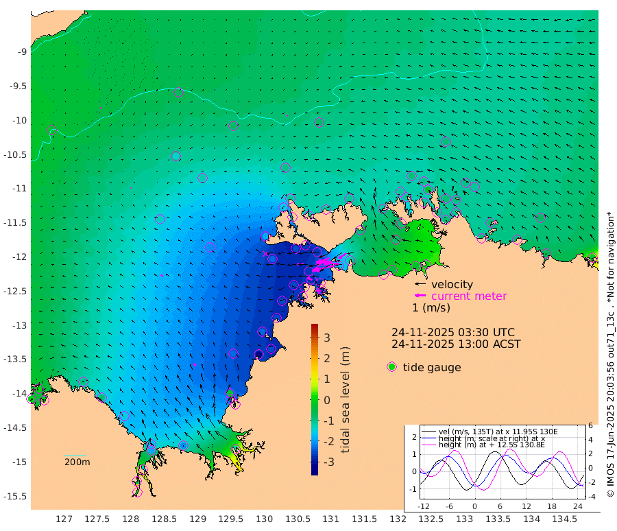 216cm/s -102T +4cm/s rms + 6cm/s 51T. Darwin_C1 52m 145cm/s -89T +4cm/s rms + 7cm/s -161T. Darwin_CW1 22m 120cm/s -108T +4cm/s rms + 8cm/s 61T. Darwin_CW2 34m 88cm/s -126T +3cm/s rms + 9cm/s 98T. Darwin_CW3 22m 152cm/s -91T +5cm/s rms + 7cm/s 88T. Darwin_C3 56m 126cm/s -116T +2cm/s rms + 9cm/s -126T. Darwin_CTbW 22m 8cm/s -66T +9cm/s rms + 2cm/s -110T. NWSLYN 196m 64cm/s -95T +1cm/s rms + 1cm/s -47T. DARBGF 30m 9cm/s -164T +7cm/s rms + 2cm/s -137T. ITFTIS 464m 6cm/s -40T +9cm/s rms + 1cm/s 74T. ITFMHB 146m 28cm/s -18T +4cm/s rms + 1cm/s -134T. ITFJBG 61m 22cm/s -52T +6cm/s rms + 4cm/s 121T. ITFFTB 108m 47cm/s -65T +4cm/s rms + 3cm/s 80T. NRSDAR 19m 3cm Carronade Island 0cm Guy Point -2cm Napier Broome Bay -97cm Lesueur Island -156cm Reveley Island -89cm Rocky Island -185cm Cape Domett -175cm Lacrosse Island -149cm Adolphus Island -56cm Pender Point -16cm Wyndham -126cm The Boxers -144cm Unnamed Shoal -68cm Loxton Shoal -206cm Pelican Island -117cm Calder Shoal -73cm Evans Shoal -135cm Quoin Island -256cm Port Keats -230cm Jones Point -21cm Catfish Island -230cm Cape Scott Offshore -315cm Cape Ford -257cm Anson Bay -99cm Goodrich Bank -236cm Peron Island North -252cm Point Jenny -256cm Native Point -249cm Fish Reef -272cm Tapa Bay -185cm Point Fawcett (Offshore) -275cm Burge Point -256cm Munkunuwa -236cm Beagle A -261cm Parsons Bank -268cm Fenton Patches -77cm Lynedoch Bank -251cm Hancox Shoal Area -271cm Nightcliff -281cm Darwin -279cm Charles Point Patches -173cm Glyde Point -72cm Chambers Bay -49cm Point Stuart -123cm Cape Hotham -84cm Christine Reef -41cm West Alligator Head -4cm East Field Island -81cm Two Hills Bay -204cm Newby Shoal -96cm Camp Point -264cm Medina Inlet South -176cm South Barlow Point -148cm St. Asaph Bay -105cm Cape Van Dieman -113cm Snake Bay -101cm Cache Point -31cm Echo Shoal -102cm Point Jahleel (Off) -113cm Cape Don -101cm Port Essington -104cm Smith Point - West -97cm NW Peacock Island -87cm North Of Jones Shoal -30cm Peacock Island -91cm Point David -102cm D'urville Point -85cm Money Shoal -85cm Copeland Island -109cm Cape Cockburn -90cm One Tree Point -107cm Hogmany Shoal -93cm New Year Island - West -96cm Grant Island -80cm Aurari Bay -80cm Cuthbert Point -86cm North Goulburn Island -75cm Paxie Shoal -63cm Entrance Island -33cm Yabooma Island