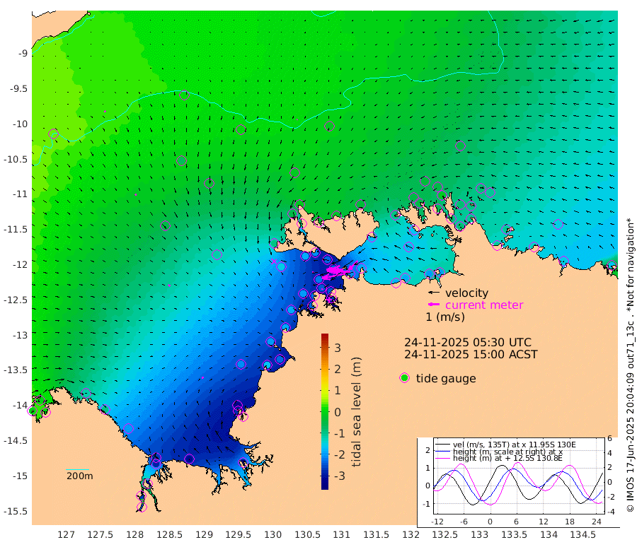 218cm/s -101T +4cm/s rms + 6cm/s 51T. Darwin_C1 52m 166cm/s -91T +4cm/s rms + 7cm/s -161T. Darwin_CW1 22m 92cm/s -106T +4cm/s rms + 8cm/s 61T. Darwin_CW2 34m 113cm/s -136T +3cm/s rms + 9cm/s 98T. Darwin_CW3 22m 151cm/s -90T +5cm/s rms + 7cm/s 88T. Darwin_C3 56m 126cm/s -115T +2cm/s rms + 9cm/s -126T. Darwin_CTbW 22m 5cm/s -123T +9cm/s rms + 2cm/s -110T. NWSLYN 196m 12cm/s -125T +1cm/s rms + 1cm/s -47T. DARBGF 30m 11cm/s 141T +7cm/s rms + 2cm/s -137T. ITFTIS 464m 14cm/s 154T +9cm/s rms + 1cm/s 74T. ITFMHB 146m 12cm/s 102T +4cm/s rms + 1cm/s -134T. ITFJBG 61m 22cm/s 124T +6cm/s rms + 4cm/s 121T. ITFFTB 108m 11cm/s -164T +4cm/s rms + 3cm/s 80T. NRSDAR 19m -1cm Carronade Island -5cm Guy Point -8cm Napier Broome Bay -116cm Lesueur Island -199cm Reveley Island -93cm Rocky Island -290cm Cape Domett -263cm Lacrosse Island -307cm Adolphus Island -265cm Pender Point -258cm Wyndham -55cm The Boxers -78cm Unnamed Shoal 10cm Loxton Shoal -306cm Pelican Island -27cm Calder Shoal 5cm Evans Shoal -373cm Quoin Island -290cm Port Keats -270cm Jones Point -322cm Catfish Island -205cm Cape Scott Offshore -167cm Cape Ford -227cm Anson Bay -16cm Goodrich Bank -193cm Peron Island North -184cm Point Jenny -184cm Native Point -192cm Fish Reef -217cm Tapa Bay -94cm Point Fawcett (Offshore) -226cm Burge Point -185cm Munkunuwa -152cm Beagle A -228cm Parsons Bank -216cm Fenton Patches -11cm Lynedoch Bank -236cm Hancox Shoal Area -242cm Nightcliff -265cm Darwin -240cm Charles Point Patches -210cm Glyde Point -187cm Chambers Bay -186cm Point Stuart -186cm Cape Hotham -175cm Christine Reef -198cm West Alligator Head -193cm East Field Island -165cm Two Hills Bay -119cm Newby Shoal -169cm Camp Point -210cm Medina Inlet South -79cm South Barlow Point -49cm St. Asaph Bay -17cm Cape Van Dieman -30cm Snake Bay -24cm Cache Point 36cm Echo Shoal -45cm Point Jahleel (Off) -100cm Cape Don -56cm Port Essington -53cm Smith Point - West -54cm NW Peacock Island -36cm North Of Jones Shoal -15cm Peacock Island -84cm Point David -59cm D'urville Point -53cm Money Shoal -85cm Copeland Island -106cm Cape Cockburn -80cm One Tree Point -112cm Hogmany Shoal -88cm New Year Island - West -92cm Grant Island -110cm Aurari Bay -130cm Cuthbert Point -109cm North Goulburn Island -148cm Paxie Shoal -150cm Entrance Island -166cm Yabooma Island