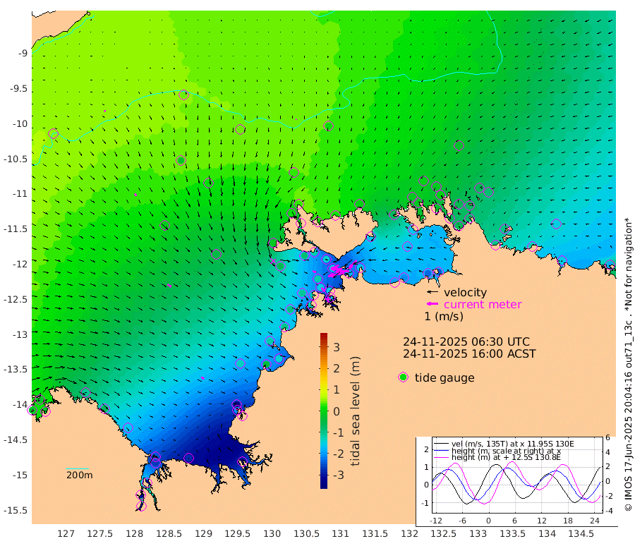 149cm/s -101T +4cm/s rms + 6cm/s 51T. Darwin_C1 52m 121cm/s -92T +4cm/s rms + 7cm/s -161T. Darwin_CW1 22m 46cm/s -104T +4cm/s rms + 8cm/s 61T. Darwin_CW2 34m 97cm/s -138T +3cm/s rms + 9cm/s 98T. Darwin_CW3 22m 100cm/s -90T +5cm/s rms + 7cm/s 88T. Darwin_C3 56m 82cm/s -116T +2cm/s rms + 9cm/s -126T. Darwin_CTbW 22m 5cm/s -150T +9cm/s rms + 2cm/s -110T. NWSLYN 196m 30cm/s 104T +1cm/s rms + 1cm/s -47T. DARBGF 30m 12cm/s 127T +7cm/s rms + 2cm/s -137T. ITFTIS 464m 22cm/s 156T +9cm/s rms + 1cm/s 74T. ITFMHB 146m 29cm/s 132T +4cm/s rms + 1cm/s -134T. ITFJBG 61m 41cm/s 128T +6cm/s rms + 4cm/s 121T. ITFFTB 108m 41cm/s 134T +4cm/s rms + 3cm/s 80T. NRSDAR 19m -23cm Carronade Island -26cm Guy Point -31cm Napier Broome Bay -107cm Lesueur Island -168cm Reveley Island -71cm Rocky Island -264cm Cape Domett -238cm Lacrosse Island -305cm Adolphus Island -311cm Pender Point -326cm Wyndham -13cm The Boxers -31cm Unnamed Shoal 36cm Loxton Shoal -270cm Pelican Island 19cm Calder Shoal 36cm Evans Shoal -393cm Quoin Island -222cm Port Keats -212cm Jones Point -398cm Catfish Island -131cm Cape Scott Offshore -43cm Cape Ford -143cm Anson Bay 25cm Goodrich Bank -113cm Peron Island North -93cm Point Jenny -92cm Native Point -104cm Fish Reef -123cm Tapa Bay -22cm Point Fawcett (Offshore) -131cm Burge Point -89cm Munkunuwa -64cm Beagle A -139cm Parsons Bank -123cm Fenton Patches 18cm Lynedoch Bank -155cm Hancox Shoal Area -151cm Nightcliff -176cm Darwin -148cm Charles Point Patches -170cm Glyde Point -197cm Chambers Bay -208cm Point Stuart -167cm Cape Hotham -175cm Christine Reef -228cm West Alligator Head -245cm East Field Island -165cm Two Hills Bay -46cm Newby Shoal -164cm Camp Point -118cm Medina Inlet South -8cm South Barlow Point 13cm St. Asaph Bay 27cm Cape Van Dieman 15cm Snake Bay 16cm Cache Point 48cm Echo Shoal -8cm Point Jahleel (Off) -68cm Cape Don -21cm Port Essington -16cm Smith Point - West -21cm NW Peacock Island -4cm North Of Jones Shoal -4cm Peacock Island -61cm Point David -23cm D'urville Point -28cm Money Shoal -64cm Copeland Island -79cm Cape Cockburn -57cm One Tree Point -89cm Hogmany Shoal -65cm New Year Island - West -69cm Grant Island -96cm Aurari Bay -122cm Cuthbert Point -93cm North Goulburn Island -147cm Paxie Shoal -154cm Entrance Island -189cm Yabooma Island