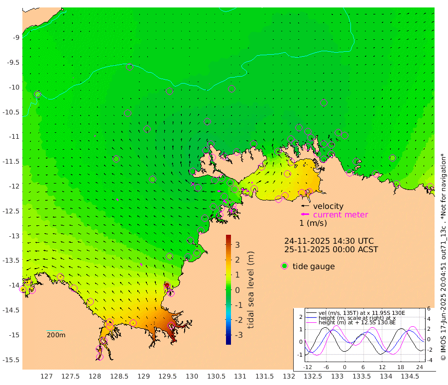 1cm/s 144T +4cm/s rms + 6cm/s 51T. Darwin_C1 52m 25cm/s 86T +4cm/s rms + 7cm/s -161T. Darwin_CW1 22m 1cm/s -172T +4cm/s rms + 8cm/s 61T. Darwin_CW2 34m 23cm/s 34T +3cm/s rms + 9cm/s 98T. Darwin_CW3 22m 25cm/s 96T +5cm/s rms + 7cm/s 88T. Darwin_C3 56m 2cm/s 126T +2cm/s rms + 9cm/s -126T. Darwin_CTbW 22m 3cm/s 13T +9cm/s rms + 2cm/s -110T. NWSLYN 196m 39cm/s -83T +1cm/s rms + 1cm/s -47T. DARBGF 30m 5cm/s -56T +7cm/s rms + 2cm/s -137T. ITFTIS 464m 10cm/s -24T +9cm/s rms + 1cm/s 74T. ITFMHB 146m 33cm/s -30T +4cm/s rms + 1cm/s -134T. ITFJBG 61m 31cm/s -46T +6cm/s rms + 4cm/s 121T. ITFFTB 108m 48cm/s -54T +4cm/s rms + 3cm/s 80T. NRSDAR 19m 126cm Carronade Island 130cm Guy Point 136cm Napier Broome Bay 121cm Lesueur Island 111cm Reveley Island 93cm Rocky Island 167cm Cape Domett 155cm Lacrosse Island 212cm Adolphus Island 273cm Pender Point 308cm Wyndham 30cm The Boxers -1cm Unnamed Shoal 22cm Loxton Shoal 144cm Pelican Island 9cm Calder Shoal 4cm Evans Shoal 272cm Quoin Island 91cm Port Keats 81cm Jones Point 351cm Catfish Island 37cm Cape Scott Offshore -32cm Cape Ford 24cm Anson Bay -12cm Goodrich Bank 15cm Peron Island North 5cm Point Jenny 3cm Native Point 10cm Fish Reef 9cm Tapa Bay -10cm Point Fawcett (Offshore) 14cm Burge Point -18cm Munkunuwa 1cm Beagle A 4cm Parsons Bank 17cm Fenton Patches -1cm Lynedoch Bank 24cm Hancox Shoal Area 20cm Nightcliff 30cm Darwin 23cm Charles Point Patches 71cm Glyde Point 135cm Chambers Bay 145cm Point Stuart 83cm Cape Hotham 120cm Christine Reef 165cm West Alligator Head 197cm East Field Island 102cm Two Hills Bay 25cm Newby Shoal 99cm Camp Point 8cm Medina Inlet South -27cm South Barlow Point -20cm St. Asaph Bay -19cm Cape Van Dieman -20cm Snake Bay -7cm Cache Point 36cm Echo Shoal 1cm Point Jahleel (Off) 26cm Cape Don -4cm Port Essington -7cm Smith Point - West -7cm NW Peacock Island -4cm North Of Jones Shoal -3cm Peacock Island -8cm Point David -12cm D'urville Point -3cm Money Shoal -7cm Copeland Island -3cm Cape Cockburn -1cm One Tree Point 8cm Hogmany Shoal 4cm New Year Island - West 1cm Grant Island 8cm Aurari Bay 26cm Cuthbert Point 10cm North Goulburn Island 37cm Paxie Shoal 40cm Entrance Island 55cm Yabooma Island
