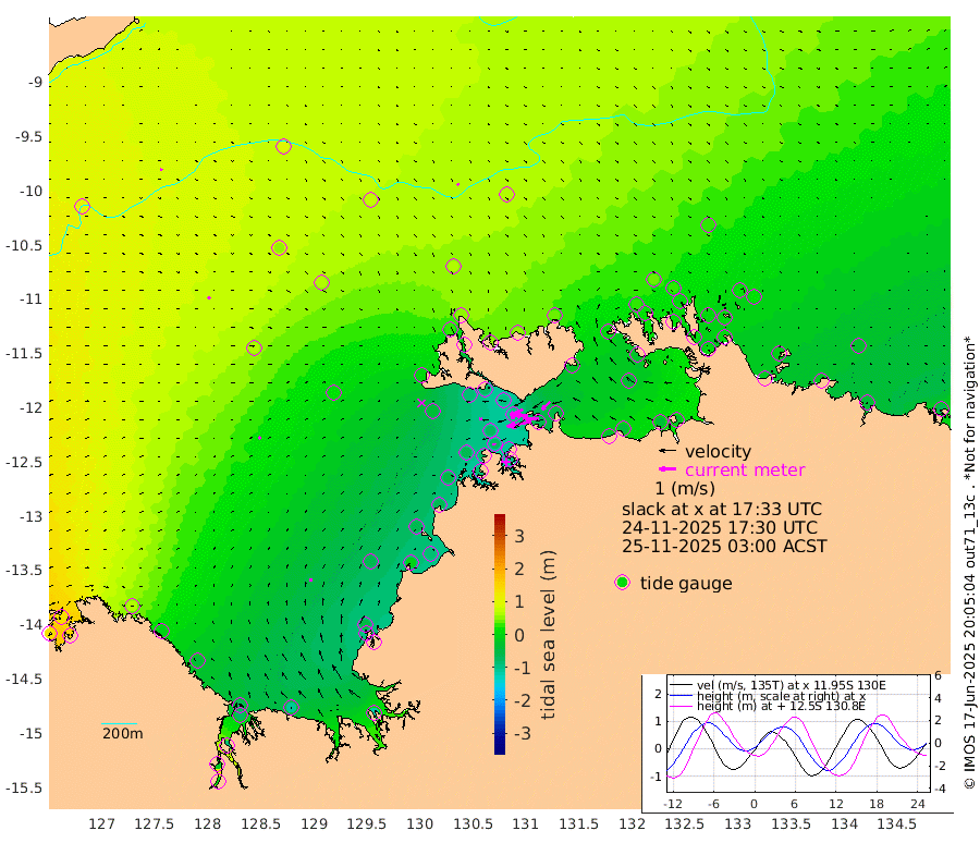 146cm/s -101T +4cm/s rms + 6cm/s 51T. Darwin_C1 52m 95cm/s -90T +4cm/s rms + 7cm/s -161T. Darwin_CW1 22m 63cm/s -108T +4cm/s rms + 8cm/s 61T. Darwin_CW2 34m 65cm/s -133T +3cm/s rms + 9cm/s 98T. Darwin_CW3 22m 82cm/s -91T +5cm/s rms + 7cm/s 88T. Darwin_C3 56m 84cm/s -115T +2cm/s rms + 9cm/s -126T. Darwin_CTbW 22m 8cm/s 138T +9cm/s rms + 2cm/s -110T. NWSLYN 196m 19cm/s -96T +1cm/s rms + 1cm/s -47T. DARBGF 30m 11cm/s 33T +7cm/s rms + 2cm/s -137T. ITFTIS 464m 14cm/s 40T +9cm/s rms + 1cm/s 74T. ITFMHB 146m 16cm/s 7T +4cm/s rms + 1cm/s -134T. ITFJBG 61m 14cm/s 43T +6cm/s rms + 4cm/s 121T. ITFFTB 108m 17cm/s -85T +4cm/s rms + 3cm/s 80T. NRSDAR 19m 128cm Carronade Island 127cm Guy Point 138cm Napier Broome Bay 65cm Lesueur Island -36cm Reveley Island -5cm Rocky Island -74cm Cape Domett -60cm Lacrosse Island -86cm Adolphus Island -19cm Pender Point 2cm Wyndham 64cm The Boxers 51cm Unnamed Shoal 92cm Loxton Shoal -104cm Pelican Island 63cm Calder Shoal 69cm Evans Shoal -115cm Quoin Island -101cm Port Keats -92cm Jones Point -55cm Catfish Island -65cm Cape Scott Offshore -5cm Cape Ford -83cm Anson Bay 57cm Goodrich Bank -62cm Peron Island North -58cm Point Jenny -56cm Native Point -64cm Fish Reef -75cm Tapa Bay 5cm Point Fawcett (Offshore) -82cm Burge Point -83cm Munkunuwa -36cm Beagle A -97cm Parsons Bank -78cm Fenton Patches 61cm Lynedoch Bank -95cm Hancox Shoal Area -106cm Nightcliff -98cm Darwin -73cm Charles Point Patches -60cm Glyde Point -44cm Chambers Bay -38cm Point Stuart -50cm Cape Hotham -41cm Christine Reef -44cm West Alligator Head -30cm East Field Island -33cm Two Hills Bay 21cm Newby Shoal -25cm Camp Point -75cm Medina Inlet South 5cm South Barlow Point 27cm St. Asaph Bay 54cm Cape Van Dieman 48cm Snake Bay 54cm Cache Point 103cm Echo Shoal 34cm Point Jahleel (Off) 1cm Cape Don 28cm Port Essington 21cm Smith Point - West 25cm NW Peacock Island 36cm North Of Jones Shoal 11cm Peacock Island 6cm Point David 18cm D'urville Point 32cm Money Shoal 0cm Copeland Island 2cm Cape Cockburn 9cm One Tree Point 14cm Hogmany Shoal 13cm New Year Island - West 7cm Grant Island -17cm Aurari Bay -22cm Cuthbert Point -10cm North Goulburn Island -25cm Paxie Shoal -40cm Entrance Island -62cm Yabooma Island