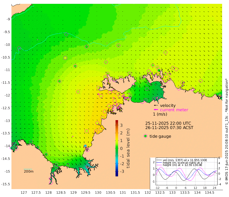 105cm/s 79T +4cm/s rms + 6cm/s 51T. Darwin_C1 52m 68cm/s 85T +4cm/s rms + 7cm/s -161T. Darwin_CW1 22m 32cm/s 76T +4cm/s rms + 8cm/s 61T. Darwin_CW2 34m 29cm/s 59T +3cm/s rms + 9cm/s 98T. Darwin_CW3 22m 37cm/s 88T +5cm/s rms + 7cm/s 88T. Darwin_C3 56m 65cm/s 62T +2cm/s rms + 9cm/s -126T. Darwin_CTbW 22m 7cm/s 129T +9cm/s rms + 2cm/s -110T. NWSLYN 196m 32cm/s 91T +1cm/s rms + 1cm/s -47T. DARBGF 30m 7cm/s 6T +7cm/s rms + 2cm/s -137T. ITFTIS 464m 6cm/s 23T +9cm/s rms + 1cm/s 74T. ITFMHB 146m 20cm/s 153T +4cm/s rms + 1cm/s -134T. ITFJBG 61m 12cm/s 120T +6cm/s rms + 4cm/s 121T. ITFFTB 108m 29cm/s 118T +4cm/s rms + 3cm/s 80T. NRSDAR 19m -69cm Carronade Island -69cm Guy Point -70cm Napier Broome Bay -14cm Lesueur Island 14cm Reveley Island -28cm Rocky Island 8cm Cape Domett 3cm Lacrosse Island -25cm Adolphus Island -80cm Pender Point -112cm Wyndham 34cm The Boxers 72cm Unnamed Shoal 9cm Loxton Shoal 33cm Pelican Island 31cm Calder Shoal 22cm Evans Shoal -51cm Quoin Island 70cm Port Keats 71cm Jones Point -139cm Catfish Island 73cm Cape Scott Offshore 151cm Cape Ford 93cm Anson Bay 46cm Goodrich Bank 88cm Peron Island North 94cm Point Jenny 97cm Native Point 90cm Fish Reef 107cm Tapa Bay 71cm Point Fawcett (Offshore) 102cm Burge Point 105cm Munkunuwa 81cm Beagle A 111cm Parsons Bank 93cm Fenton Patches 34cm Lynedoch Bank 99cm Hancox Shoal Area 95cm Nightcliff 109cm Darwin 112cm Charles Point Patches 52cm Glyde Point -18cm Chambers Bay -23cm Point Stuart 28cm Cape Hotham -10cm Christine Reef -37cm West Alligator Head -65cm East Field Island 5cm Two Hills Bay 59cm Newby Shoal 13cm Camp Point 101cm Medina Inlet South 79cm South Barlow Point 61cm St. Asaph Bay 53cm Cape Van Dieman 60cm Snake Bay 46cm Cache Point -20cm Echo Shoal 45cm Point Jahleel (Off) 47cm Cape Don 58cm Port Essington 57cm Smith Point - West 59cm NW Peacock Island 45cm North Of Jones Shoal 18cm Peacock Island 76cm Point David 65cm D'urville Point 58cm Money Shoal 74cm Copeland Island 85cm Cape Cockburn 66cm One Tree Point 90cm Hogmany Shoal 69cm New Year Island - West 74cm Grant Island 68cm Aurari Bay 69cm Cuthbert Point 71cm North Goulburn Island 68cm Paxie Shoal 60cm Entrance Island 48cm Yabooma Island