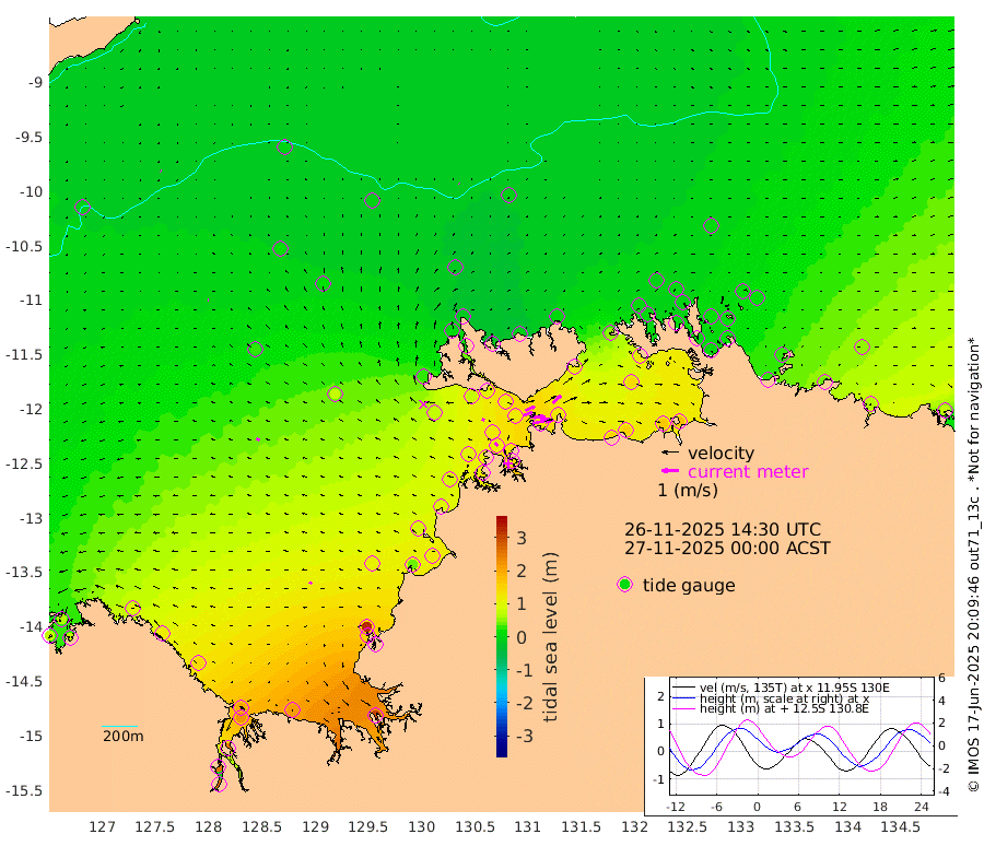 103cm/s 78T +4cm/s rms + 6cm/s 51T. Darwin_C1 52m 68cm/s 92T +4cm/s rms + 7cm/s -161T. Darwin_CW1 22m 56cm/s 70T +4cm/s rms + 8cm/s 61T. Darwin_CW2 34m 66cm/s 48T +3cm/s rms + 9cm/s 98T. Darwin_CW3 22m 85cm/s 90T +5cm/s rms + 7cm/s 88T. Darwin_C3 56m 60cm/s 66T +2cm/s rms + 9cm/s -126T. Darwin_CTbW 22m 4cm/s -10T +9cm/s rms + 2cm/s -110T. NWSLYN 196m 14cm/s -61T +1cm/s rms + 1cm/s -47T. DARBGF 30m 4cm/s -77T +7cm/s rms + 2cm/s -137T. ITFTIS 464m 6cm/s -68T +9cm/s rms + 1cm/s 74T. ITFMHB 146m 16cm/s -51T +4cm/s rms + 1cm/s -134T. ITFJBG 61m 20cm/s -59T +6cm/s rms + 4cm/s 121T. ITFFTB 108m 28cm/s -46T +4cm/s rms + 3cm/s 80T. NRSDAR 19m 66cm Carronade Island 69cm Guy Point 76cm Napier Broome Bay 100cm Lesueur Island 143cm Reveley Island 114cm Rocky Island 216cm Cape Domett 195cm Lacrosse Island 248cm Adolphus Island 254cm Pender Point 268cm Wyndham 32cm The Boxers 13cm Unnamed Shoal -2cm Loxton Shoal 205cm Pelican Island 11cm Calder Shoal -10cm Evans Shoal 300cm Quoin Island 179cm Port Keats 154cm Jones Point 318cm Catfish Island 110cm Cape Scott Offshore 36cm Cape Ford 113cm Anson Bay -12cm Goodrich Bank 89cm Peron Island North 91cm Point Jenny 89cm Native Point 93cm Fish Reef 101cm Tapa Bay 32cm Point Fawcett (Offshore) 115cm Burge Point 79cm Munkunuwa 76cm Beagle A 104cm Parsons Bank 113cm Fenton Patches -8cm Lynedoch Bank 116cm Hancox Shoal Area 128cm Nightcliff 129cm Darwin 110cm Charles Point Patches 124cm Glyde Point 153cm Chambers Bay 148cm Point Stuart 116cm Cape Hotham 144cm Christine Reef 166cm West Alligator Head 179cm East Field Island 117cm Two Hills Bay 71cm Newby Shoal 117cm Camp Point 98cm Medina Inlet South 17cm South Barlow Point 6cm St. Asaph Bay -15cm Cape Van Dieman -12cm Snake Bay -6cm Cache Point -4cm Echo Shoal 8cm Point Jahleel (Off) 48cm Cape Don 5cm Port Essington 6cm Smith Point - West 3cm NW Peacock Island -1cm North Of Jones Shoal -1cm Peacock Island 5cm Point David 3cm D'urville Point 2cm Money Shoal 7cm Copeland Island 16cm Cape Cockburn 12cm One Tree Point 14cm Hogmany Shoal 15cm New Year Island - West 15cm Grant Island 27cm Aurari Bay 45cm Cuthbert Point 28cm North Goulburn Island 55cm Paxie Shoal 63cm Entrance Island 76cm Yabooma Island