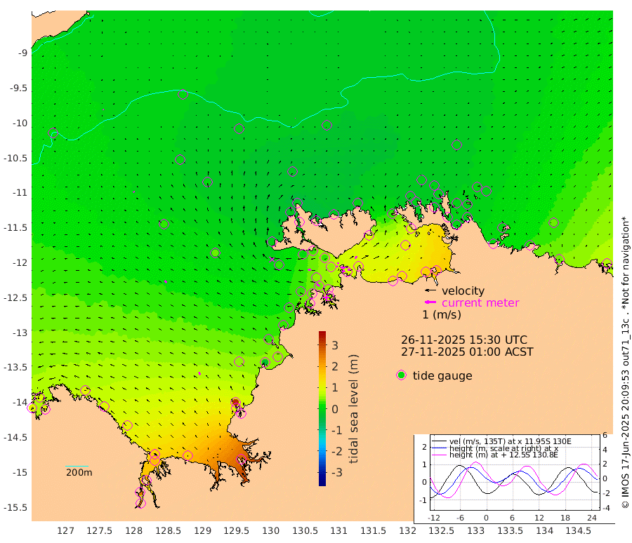 19cm/s 78T +4cm/s rms + 6cm/s 51T. Darwin_C1 52m 20cm/s 89T +4cm/s rms + 7cm/s -161T. Darwin_CW1 22m 15cm/s 72T +4cm/s rms + 8cm/s 61T. Darwin_CW2 34m 28cm/s 42T +3cm/s rms + 9cm/s 98T. Darwin_CW3 22m 35cm/s 93T +5cm/s rms + 7cm/s 88T. Darwin_C3 56m 16cm/s 70T +2cm/s rms + 9cm/s -126T. Darwin_CTbW 22m 3cm/s 4T +9cm/s rms + 2cm/s -110T. NWSLYN 196m 28cm/s -80T +1cm/s rms + 1cm/s -47T. DARBGF 30m 4cm/s -49T +7cm/s rms + 2cm/s -137T. ITFTIS 464m 9cm/s -25T +9cm/s rms + 1cm/s 74T. ITFMHB 146m 25cm/s -33T +4cm/s rms + 1cm/s -134T. ITFJBG 61m 25cm/s -47T +6cm/s rms + 4cm/s 121T. ITFFTB 108m 37cm/s -52T +4cm/s rms + 3cm/s 80T. NRSDAR 19m 100cm Carronade Island 102cm Guy Point 112cm Napier Broome Bay 103cm Lesueur Island 107cm Reveley Island 94cm Rocky Island 169cm Cape Domett 154cm Lacrosse Island 207cm Adolphus Island 250cm Pender Point 278cm Wyndham 26cm The Boxers 1cm Unnamed Shoal 8cm Loxton Shoal 148cm Pelican Island 5cm Calder Shoal -7cm Evans Shoal 260cm Quoin Island 110cm Port Keats 94cm Jones Point 317cm Catfish Island 54cm Cape Scott Offshore -24cm Cape Ford 49cm Anson Bay -16cm Goodrich Bank 31cm Peron Island North 30cm Point Jenny 28cm Native Point 32cm Fish Reef 34cm Tapa Bay -1cm Point Fawcett (Offshore) 44cm Burge Point 10cm Munkunuwa 23cm Beagle A 31cm Parsons Bank 45cm Fenton Patches -7cm Lynedoch Bank 47cm Hancox Shoal Area 53cm Nightcliff 56cm Darwin 45cm Charles Point Patches 81cm Glyde Point 133cm Chambers Bay 134cm Point Stuart 85cm Cape Hotham 121cm Christine Reef 152cm West Alligator Head 178cm East Field Island 97cm Two Hills Bay 38cm Newby Shoal 98cm Camp Point 33cm Medina Inlet South -15cm South Barlow Point -15cm St. Asaph Bay -22cm Cape Van Dieman -22cm Snake Bay -12cm Cache Point 16cm Echo Shoal -3cm Point Jahleel (Off) 28cm Cape Don -6cm Port Essington -9cm Smith Point - West -9cm NW Peacock Island -8cm North Of Jones Shoal -3cm Peacock Island -9cm Point David -12cm D'urville Point -4cm Money Shoal -8cm Copeland Island -3cm Cape Cockburn -2cm One Tree Point 0cm Hogmany Shoal 3cm New Year Island - West 0cm Grant Island 10cm Aurari Bay 27cm Cuthbert Point 11cm North Goulburn Island 40cm Paxie Shoal 45cm Entrance Island 60cm Yabooma Island
