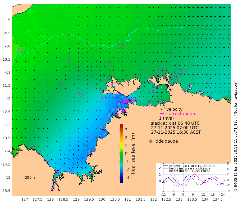 178cm/s -102T +4cm/s rms + 6cm/s 51T. Darwin_C1 52m 113cm/s -89T +4cm/s rms + 7cm/s -161T. Darwin_CW1 22m 75cm/s -106T +4cm/s rms + 8cm/s 61T. Darwin_CW2 34m 88cm/s -133T +3cm/s rms + 9cm/s 98T. Darwin_CW3 22m 111cm/s -90T +5cm/s rms + 7cm/s 88T. Darwin_C3 56m 102cm/s -115T +2cm/s rms + 9cm/s -126T. Darwin_CTbW 22m 5cm/s -63T +9cm/s rms + 2cm/s -110T. NWSLYN 196m 19cm/s -103T +1cm/s rms + 1cm/s -47T. DARBGF 30m 7cm/s 151T +7cm/s rms + 2cm/s -137T. ITFTIS 464m 7cm/s 148T +9cm/s rms + 1cm/s 74T. ITFMHB 146m 6cm/s 40T +4cm/s rms + 1cm/s -134T. ITFJBG 61m 8cm/s 112T +6cm/s rms + 4cm/s 121T. ITFFTB 108m 12cm/s -98T +4cm/s rms + 3cm/s 80T. NRSDAR 19m 4cm Carronade Island 1cm Guy Point -5cm Napier Broome Bay -64cm Lesueur Island -128cm Reveley Island -75cm Rocky Island -185cm Cape Domett -160cm Lacrosse Island -185cm Adolphus Island -147cm Pender Point -130cm Wyndham -52cm The Boxers -64cm Unnamed Shoal -2cm Loxton Shoal -198cm Pelican Island -30cm Calder Shoal -8cm Evans Shoal -204cm Quoin Island -206cm Port Keats -185cm Jones Point -153cm Catfish Island -149cm Cape Scott Offshore -153cm Cape Ford -168cm Anson Bay -26cm Goodrich Bank -145cm Peron Island North -153cm Point Jenny -154cm Native Point -150cm Fish Reef -171cm Tapa Bay -83cm Point Fawcett (Offshore) -178cm Burge Point -152cm Munkunuwa -127cm Beagle A -179cm Parsons Bank -168cm Fenton Patches -19cm Lynedoch Bank -179cm Hancox Shoal Area -182cm Nightcliff -196cm Darwin -182cm Charles Point Patches -145cm Glyde Point -115cm Chambers Bay -106cm Point Stuart -119cm Cape Hotham -115cm Christine Reef -110cm West Alligator Head -97cm East Field Island -103cm Two Hills Bay -105cm Newby Shoal -108cm Camp Point -164cm Medina Inlet South -77cm South Barlow Point -52cm St. Asaph Bay -29cm Cape Van Dieman -36cm Snake Bay -32cm Cache Point 27cm Echo Shoal -43cm Point Jahleel (Off) -81cm Cape Don -54cm Port Essington -54cm Smith Point - West -53cm NW Peacock Island -36cm North Of Jones Shoal -14cm Peacock Island -71cm Point David -58cm D'urville Point -51cm Money Shoal -70cm Copeland Island -88cm Cape Cockburn -67cm One Tree Point -92cm Hogmany Shoal -71cm New Year Island - West -78cm Grant Island -81cm Aurari Bay -103cm Cuthbert Point -88cm North Goulburn Island -108cm Paxie Shoal -111cm Entrance Island -113cm Yabooma Island
