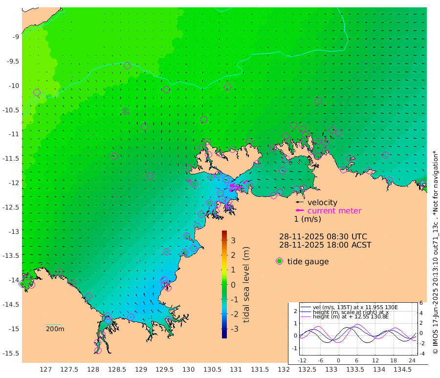 122cm/s -102T +4cm/s rms + 6cm/s 51T. Darwin_C1 52m 69cm/s -90T +4cm/s rms + 7cm/s -161T. Darwin_CW1 22m 50cm/s -106T +4cm/s rms + 8cm/s 61T. Darwin_CW2 34m 66cm/s -134T +3cm/s rms + 9cm/s 98T. Darwin_CW3 22m 78cm/s -90T +5cm/s rms + 7cm/s 88T. Darwin_C3 56m 72cm/s -115T +2cm/s rms + 9cm/s -126T. Darwin_CTbW 22m 4cm/s -59T +9cm/s rms + 2cm/s -110T. NWSLYN 196m 6cm/s -129T +1cm/s rms + 1cm/s -47T. DARBGF 30m 6cm/s 136T +7cm/s rms + 2cm/s -137T. ITFTIS 464m 8cm/s 146T +9cm/s rms + 1cm/s 74T. ITFMHB 146m 7cm/s 87T +4cm/s rms + 1cm/s -134T. ITFJBG 61m 12cm/s 117T +6cm/s rms + 4cm/s 121T. ITFFTB 108m 6cm/s -164T +4cm/s rms + 3cm/s 80T. NRSDAR 19m 7cm Carronade Island 4cm Guy Point -1cm Napier Broome Bay -41cm Lesueur Island -94cm Reveley Island -48cm Rocky Island -150cm Cape Domett -126cm Lacrosse Island -156cm Adolphus Island -138cm Pender Point -131cm Wyndham -19cm The Boxers -30cm Unnamed Shoal 24cm Loxton Shoal -161cm Pelican Island 2cm Calder Shoal 18cm Evans Shoal -180cm Quoin Island -155cm Port Keats -142cm Jones Point -165cm Catfish Island -104cm Cape Scott Offshore -80cm Cape Ford -120cm Anson Bay 3cm Goodrich Bank -95cm Peron Island North -104cm Point Jenny -104cm Native Point -99cm Fish Reef -118cm Tapa Bay -41cm Point Fawcett (Offshore) -123cm Burge Point -98cm Munkunuwa -78cm Beagle A -127cm Parsons Bank -115cm Fenton Patches 6cm Lynedoch Bank -131cm Hancox Shoal Area -131cm Nightcliff -139cm Darwin -124cm Charles Point Patches -113cm Glyde Point -111cm Chambers Bay -103cm Point Stuart -98cm Cape Hotham -105cm Christine Reef -110cm West Alligator Head -105cm East Field Island -90cm Two Hills Bay -57cm Newby Shoal -93cm Camp Point -109cm Medina Inlet South -33cm South Barlow Point -14cm St. Asaph Bay 1cm Cape Van Dieman -3cm Snake Bay -3cm Cache Point 44cm Echo Shoal -15cm Point Jahleel (Off) -56cm Cape Don -28cm Port Essington -27cm Smith Point - West -28cm NW Peacock Island -11cm North Of Jones Shoal -6cm Peacock Island -51cm Point David -33cm D'urville Point -30cm Money Shoal -53cm Copeland Island -65cm Cape Cockburn -47cm One Tree Point -70cm Hogmany Shoal -51cm New Year Island - West -57cm Grant Island -67cm Aurari Bay -91cm Cuthbert Point -73cm North Goulburn Island -101cm Paxie Shoal -110cm Entrance Island -124cm Yabooma Island