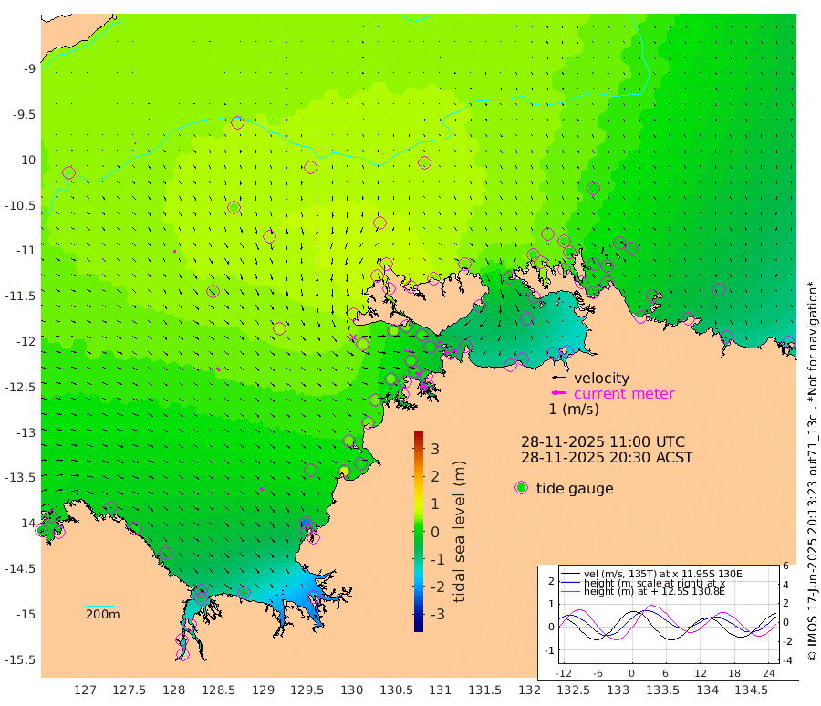 36cm/s 81T +4cm/s rms + 6cm/s 51T. Darwin_C1 52m 30cm/s 88T +4cm/s rms + 7cm/s -161T. Darwin_CW1 22m 17cm/s 73T +4cm/s rms + 8cm/s 61T. Darwin_CW2 34m 13cm/s -166T +3cm/s rms + 9cm/s 98T. Darwin_CW3 22m 11cm/s 83T +5cm/s rms + 7cm/s 88T. Darwin_C3 56m 23cm/s 63T +2cm/s rms + 9cm/s -126T. Darwin_CTbW 22m 1cm/s -135T +9cm/s rms + 2cm/s -110T. NWSLYN 196m 40cm/s 93T +1cm/s rms + 1cm/s -47T. DARBGF 30m 6cm/s 114T +7cm/s rms + 2cm/s -137T. ITFTIS 464m 16cm/s 160T +9cm/s rms + 1cm/s 74T. ITFMHB 146m 28cm/s 148T +4cm/s rms + 1cm/s -134T. ITFJBG 61m 29cm/s 132T +6cm/s rms + 4cm/s 121T. ITFFTB 108m 42cm/s 124T +4cm/s rms + 3cm/s 80T. NRSDAR 19m -17cm Carronade Island -21cm Guy Point -21cm Napier Broome Bay -21cm Lesueur Island -26cm Reveley Island 17cm Rocky Island -73cm Cape Domett -61cm Lacrosse Island -108cm Adolphus Island -154cm Pender Point -180cm Wyndham 43cm The Boxers 44cm Unnamed Shoal 57cm Loxton Shoal -76cm Pelican Island 64cm Calder Shoal 58cm Evans Shoal -159cm Quoin Island -23cm Port Keats -31cm Jones Point -215cm Catfish Island 14cm Cape Scott Offshore 92cm Cape Ford 14cm Anson Bay 57cm Goodrich Bank 36cm Peron Island North 37cm Point Jenny 39cm Native Point 40cm Fish Reef 29cm Tapa Bay 62cm Point Fawcett (Offshore) 31cm Burge Point 54cm Munkunuwa 53cm Beagle A 26cm Parsons Bank 31cm Fenton Patches 47cm Lynedoch Bank 5cm Hancox Shoal Area 16cm Nightcliff 11cm Darwin 20cm Charles Point Patches -31cm Glyde Point -93cm Chambers Bay -97cm Point Stuart -43cm Cape Hotham -75cm Christine Reef -110cm West Alligator Head -136cm East Field Island -57cm Two Hills Bay 58cm Newby Shoal -62cm Camp Point 38cm Medina Inlet South 71cm South Barlow Point 69cm St. Asaph Bay 60cm Cape Van Dieman 62cm Snake Bay 53cm Cache Point 47cm Echo Shoal 41cm Point Jahleel (Off) 7cm Cape Don 30cm Port Essington 35cm Smith Point - West 29cm NW Peacock Island 37cm North Of Jones Shoal 11cm Peacock Island 0cm Point David 29cm D'urville Point 15cm Money Shoal -5cm Copeland Island 2cm Cape Cockburn 5cm One Tree Point -13cm Hogmany Shoal 0cm New Year Island - West -1cm Grant Island -25cm Aurari Bay -46cm Cuthbert Point -21cm North Goulburn Island -68cm Paxie Shoal -80cm Entrance Island -119cm Yabooma Island