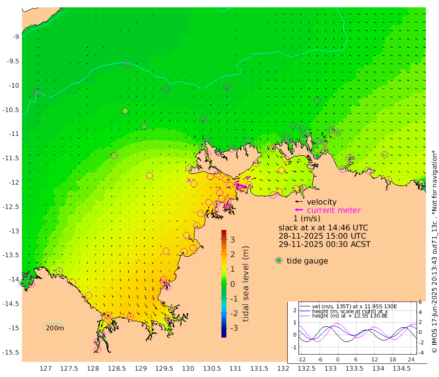 122cm/s 78T +4cm/s rms + 6cm/s 51T. Darwin_C1 52m 69cm/s 92T +4cm/s rms + 7cm/s -161T. Darwin_CW1 22m 68cm/s 72T +4cm/s rms + 8cm/s 61T. Darwin_CW2 34m 66cm/s 49T +3cm/s rms + 9cm/s 98T. Darwin_CW3 22m 96cm/s 89T +5cm/s rms + 7cm/s 88T. Darwin_C3 56m 70cm/s 65T +2cm/s rms + 9cm/s -126T. Darwin_CTbW 22m 3cm/s -14T +9cm/s rms + 2cm/s -110T. NWSLYN 196m 14cm/s 70T +1cm/s rms + 1cm/s -47T. DARBGF 30m 3cm/s -65T +7cm/s rms + 2cm/s -137T. ITFTIS 464m 4cm/s -121T +9cm/s rms + 1cm/s 74T. ITFMHB 146m 7cm/s -140T +4cm/s rms + 1cm/s -134T. ITFJBG 61m 5cm/s -102T +6cm/s rms + 4cm/s 121T. ITFFTB 108m 8cm/s 70T +4cm/s rms + 3cm/s 80T. NRSDAR 19m 19cm Carronade Island 17cm Guy Point 27cm Napier Broome Bay 66cm Lesueur Island 121cm Reveley Island 99cm Rocky Island 173cm Cape Domett 158cm Lacrosse Island 176cm Adolphus Island 148cm Pender Point 141cm Wyndham 38cm The Boxers 41cm Unnamed Shoal -6cm Loxton Shoal 170cm Pelican Island 25cm Calder Shoal -5cm Evans Shoal 195cm Quoin Island 177cm Port Keats 154cm Jones Point 171cm Catfish Island 125cm Cape Scott Offshore 93cm Cape Ford 137cm Anson Bay 4cm Goodrich Bank 117cm Peron Island North 126cm Point Jenny 126cm Native Point 127cm Fish Reef 136cm Tapa Bay 61cm Point Fawcett (Offshore) 152cm Burge Point 125cm Munkunuwa 113cm Beagle A 142cm Parsons Bank 148cm Fenton Patches 0cm Lynedoch Bank 141cm Hancox Shoal Area 160cm Nightcliff 155cm Darwin 135cm Charles Point Patches 121cm Glyde Point 111cm Chambers Bay 102cm Point Stuart 104cm Cape Hotham 109cm Christine Reef 112cm West Alligator Head 106cm East Field Island 92cm Two Hills Bay 96cm Newby Shoal 91cm Camp Point 133cm Medina Inlet South 52cm South Barlow Point 32cm St. Asaph Bay 5cm Cape Van Dieman 10cm Snake Bay 10cm Cache Point -19cm Echo Shoal 21cm Point Jahleel (Off) 54cm Cape Don 19cm Port Essington 22cm Smith Point - West 18cm NW Peacock Island 10cm North Of Jones Shoal 4cm Peacock Island 21cm Point David 21cm D'urville Point 11cm Money Shoal 21cm Copeland Island 34cm Cape Cockburn 24cm One Tree Point 24cm Hogmany Shoal 27cm New Year Island - West 29cm Grant Island 35cm Aurari Bay 46cm Cuthbert Point 39cm North Goulburn Island 49cm Paxie Shoal 60cm Entrance Island 61cm Yabooma Island