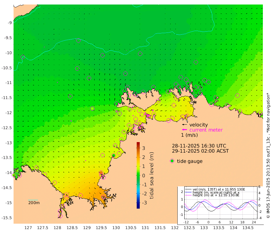 47cm/s 77T +4cm/s rms + 6cm/s 51T. Darwin_C1 52m 28cm/s 92T +4cm/s rms + 7cm/s -161T. Darwin_CW1 22m 34cm/s 71T +4cm/s rms + 8cm/s 61T. Darwin_CW2 34m 37cm/s 46T +3cm/s rms + 9cm/s 98T. Darwin_CW3 22m 55cm/s 91T +5cm/s rms + 7cm/s 88T. Darwin_C3 56m 30cm/s 66T +2cm/s rms + 9cm/s -126T. Darwin_CTbW 22m 4cm/s -12T +9cm/s rms + 2cm/s -110T. NWSLYN 196m 15cm/s -70T +1cm/s rms + 1cm/s -47T. DARBGF 30m 4cm/s -48T +7cm/s rms + 2cm/s -137T. ITFTIS 464m 8cm/s -28T +9cm/s rms + 1cm/s 74T. ITFMHB 146m 15cm/s -45T +4cm/s rms + 1cm/s -134T. ITFJBG 61m 19cm/s -51T +6cm/s rms + 4cm/s 121T. ITFFTB 108m 22cm/s -46T +4cm/s rms + 3cm/s 80T. NRSDAR 19m 49cm Carronade Island 48cm Guy Point 61cm Napier Broome Bay 74cm Lesueur Island 105cm Reveley Island 84cm Rocky Island 167cm Cape Domett 151cm Lacrosse Island 188cm Adolphus Island 205cm Pender Point 219cm Wyndham 16cm The Boxers 10cm Unnamed Shoal -17cm Loxton Shoal 153cm Pelican Island -3cm Calder Shoal -25cm Evans Shoal 232cm Quoin Island 134cm Port Keats 118cm Jones Point 246cm Catfish Island 77cm Cape Scott Offshore 10cm Cape Ford 81cm Anson Bay -23cm Goodrich Bank 58cm Peron Island North 63cm Point Jenny 62cm Native Point 65cm Fish Reef 71cm Tapa Bay 11cm Point Fawcett (Offshore) 87cm Burge Point 53cm Munkunuwa 52cm Beagle A 74cm Parsons Bank 84cm Fenton Patches -18cm Lynedoch Bank 83cm Hancox Shoal Area 96cm Nightcliff 94cm Darwin 76cm Charles Point Patches 96cm Glyde Point 124cm Chambers Bay 122cm Point Stuart 91cm Cape Hotham 115cm Christine Reef 136cm West Alligator Head 151cm East Field Island 91cm Two Hills Bay 49cm Newby Shoal 96cm Camp Point 69cm Medina Inlet South 0cm South Barlow Point -10cm St. Asaph Bay -25cm Cape Van Dieman -23cm Snake Bay -19cm Cache Point -18cm Echo Shoal -6cm Point Jahleel (Off) 30cm Cape Don -8cm Port Essington -10cm Smith Point - West -11cm NW Peacock Island -14cm North Of Jones Shoal -5cm Peacock Island -3cm Point David -11cm D'urville Point -7cm Money Shoal -1cm Copeland Island 4cm Cape Cockburn 1cm One Tree Point -1cm Hogmany Shoal 6cm New Year Island - West 5cm Grant Island 18cm Aurari Bay 32cm Cuthbert Point 18cm North Goulburn Island 47cm Paxie Shoal 56cm Entrance Island 72cm Yabooma Island