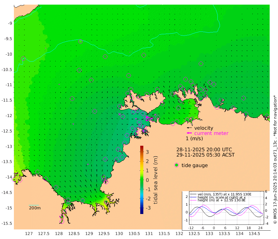 101cm/s -101T +4cm/s rms + 6cm/s 51T. Darwin_C1 52m 49cm/s -90T +4cm/s rms + 7cm/s -161T. Darwin_CW1 22m 47cm/s -107T +4cm/s rms + 8cm/s 61T. Darwin_CW2 34m 40cm/s -132T +3cm/s rms + 9cm/s 98T. Darwin_CW3 22m 57cm/s -91T +5cm/s rms + 7cm/s 88T. Darwin_C3 56m 59cm/s -115T +2cm/s rms + 9cm/s -126T. Darwin_CTbW 22m 3cm/s 140T +9cm/s rms + 2cm/s -110T. NWSLYN 196m 30cm/s -90T +1cm/s rms + 1cm/s -47T. DARBGF 30m 6cm/s 19T +7cm/s rms + 2cm/s -137T. ITFTIS 464m 13cm/s 11T +9cm/s rms + 1cm/s 74T. ITFMHB 146m 22cm/s -13T +4cm/s rms + 1cm/s -134T. ITFJBG 61m 16cm/s -18T +6cm/s rms + 4cm/s 121T. ITFFTB 108m 29cm/s -65T +4cm/s rms + 3cm/s 80T. NRSDAR 19m 52cm Carronade Island 53cm Guy Point 65cm Napier Broome Bay 7cm Lesueur Island -42cm Reveley Island -6cm Rocky Island -43cm Cape Domett -45cm Lacrosse Island -33cm Adolphus Island 33cm Pender Point 50cm Wyndham -1cm The Boxers -18cm Unnamed Shoal 26cm Loxton Shoal -66cm Pelican Island -6cm Calder Shoal 8cm Evans Shoal -17cm Quoin Island -79cm Port Keats -75cm Jones Point 11cm Catfish Island -73cm Cape Scott Offshore -78cm Cape Ford -84cm Anson Bay -4cm Goodrich Bank -81cm Peron Island North -84cm Point Jenny -83cm Native Point -84cm Fish Reef -92cm Tapa Bay -46cm Point Fawcett (Offshore) -91cm Burge Point -92cm Munkunuwa -76cm Beagle A -97cm Parsons Bank -94cm Fenton Patches 7cm Lynedoch Bank -94cm Hancox Shoal Area -103cm Nightcliff -90cm Darwin -79cm Charles Point Patches -55cm Glyde Point -31cm Chambers Bay -20cm Point Stuart -47cm Cape Hotham -30cm Christine Reef -20cm West Alligator Head -1cm East Field Island -31cm Two Hills Bay -40cm Newby Shoal -20cm Camp Point -83cm Medina Inlet South -42cm South Barlow Point -28cm St. Asaph Bay -8cm Cape Van Dieman -11cm Snake Bay -9cm Cache Point 34cm Echo Shoal -17cm Point Jahleel (Off) -27cm Cape Don -16cm Port Essington -26cm Smith Point - West -22cm NW Peacock Island -10cm North Of Jones Shoal -5cm Peacock Island -29cm Point David -28cm D'urville Point -8cm Money Shoal -31cm Copeland Island -39cm Cape Cockburn -23cm One Tree Point -33cm Hogmany Shoal -25cm New Year Island - West -29cm Grant Island -36cm Aurari Bay -35cm Cuthbert Point -35cm North Goulburn Island -24cm Paxie Shoal -43cm Entrance Island -42cm Yabooma Island