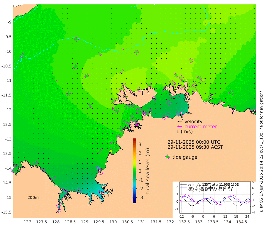 41cm/s 79T +4cm/s rms + 6cm/s 51T. Darwin_C1 52m 24cm/s 85T +4cm/s rms + 7cm/s -161T. Darwin_CW1 22m 4cm/s 83T +4cm/s rms + 8cm/s 61T. Darwin_CW2 34m 7cm/s 105T +3cm/s rms + 9cm/s 98T. Darwin_CW3 22m 2cm/s -60T +5cm/s rms + 7cm/s 88T. Darwin_C3 56m 24cm/s 61T +2cm/s rms + 9cm/s -126T. Darwin_CTbW 22m 10cm/s 150T +9cm/s rms + 2cm/s -110T. NWSLYN 196m 22cm/s 98T +1cm/s rms + 1cm/s -47T. DARBGF 30m 3cm/s 51T +7cm/s rms + 2cm/s -137T. ITFTIS 464m 4cm/s 142T +9cm/s rms + 1cm/s 74T. ITFMHB 146m 17cm/s 145T +4cm/s rms + 1cm/s -134T. ITFJBG 61m 16cm/s 130T +6cm/s rms + 4cm/s 121T. ITFFTB 108m 23cm/s 123T +4cm/s rms + 3cm/s 80T. NRSDAR 19m -47cm Carronade Island -45cm Guy Point -49cm Napier Broome Bay -52cm Lesueur Island -54cm Reveley Island -44cm Rocky Island -85cm Cape Domett -87cm Lacrosse Island -112cm Adolphus Island -136cm Pender Point -161cm Wyndham 13cm The Boxers 22cm Unnamed Shoal 20cm Loxton Shoal -68cm Pelican Island 17cm Calder Shoal 30cm Evans Shoal -150cm Quoin Island -39cm Port Keats -36cm Jones Point -177cm Catfish Island -9cm Cape Scott Offshore 60cm Cape Ford -3cm Anson Bay 37cm Goodrich Bank 7cm Peron Island North 11cm Point Jenny 13cm Native Point 5cm Fish Reef 9cm Tapa Bay 30cm Point Fawcett (Offshore) -3cm Burge Point 19cm Munkunuwa 5cm Beagle A 11cm Parsons Bank -10cm Fenton Patches 29cm Lynedoch Bank -1cm Hancox Shoal Area -15cm Nightcliff -4cm Darwin 10cm Charles Point Patches -30cm Glyde Point -71cm Chambers Bay -75cm Point Stuart -40cm Cape Hotham -61cm Christine Reef -89cm West Alligator Head -112cm East Field Island -45cm Two Hills Bay 3cm Newby Shoal -46cm Camp Point 9cm Medina Inlet South 38cm South Barlow Point 35cm St. Asaph Bay 41cm Cape Van Dieman 41cm Snake Bay 36cm Cache Point 2cm Echo Shoal 27cm Point Jahleel (Off) 13cm Cape Don 39cm Port Essington 38cm Smith Point - West 39cm NW Peacock Island 34cm North Of Jones Shoal 13cm Peacock Island 40cm Point David 42cm D'urville Point 37cm Money Shoal 39cm Copeland Island 44cm Cape Cockburn 36cm One Tree Point 50cm Hogmany Shoal 31cm New Year Island - West 37cm Grant Island 22cm Aurari Bay 26cm Cuthbert Point 32cm North Goulburn Island 16cm Paxie Shoal 5cm Entrance Island -11cm Yabooma Island