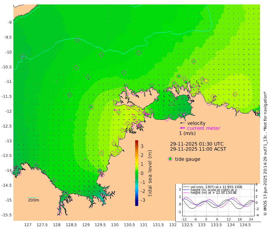 84cm/s 78T +4cm/s rms + 6cm/s 51T. Darwin_C1 52m 40cm/s 90T +4cm/s rms + 7cm/s -161T. Darwin_CW1 22m 29cm/s 75T +4cm/s rms + 8cm/s 61T. Darwin_CW2 34m 36cm/s 50T +3cm/s rms + 9cm/s 98T. Darwin_CW3 22m 36cm/s 88T +5cm/s rms + 7cm/s 88T. Darwin_C3 56m 46cm/s 64T +2cm/s rms + 9cm/s -126T. Darwin_CTbW 22m 6cm/s 147T +9cm/s rms + 2cm/s -110T. NWSLYN 196m 25cm/s 93T +1cm/s rms + 1cm/s -47T. DARBGF 30m 2cm/s -118T +7cm/s rms + 2cm/s -137T. ITFTIS 464m 6cm/s -166T +9cm/s rms + 1cm/s 74T. ITFMHB 146m 16cm/s 162T +4cm/s rms + 1cm/s -134T. ITFJBG 61m 12cm/s 153T +6cm/s rms + 4cm/s 121T. ITFFTB 108m 25cm/s 116T +4cm/s rms + 3cm/s 80T. NRSDAR 19m -65cm Carronade Island -62cm Guy Point -71cm Napier Broome Bay -39cm Lesueur Island -6cm Reveley Island -35cm Rocky Island -11cm Cape Domett -18cm Lacrosse Island -29cm Adolphus Island -74cm Pender Point -97cm Wyndham -1cm The Boxers 16cm Unnamed Shoal -19cm Loxton Shoal 18cm Pelican Island -3cm Calder Shoal 0cm Evans Shoal -52cm Quoin Island 33cm Port Keats 35cm Jones Point -73cm Catfish Island 39cm Cape Scott Offshore 74cm Cape Ford 52cm Anson Bay 14cm Goodrich Bank 49cm Peron Island North 56cm Point Jenny 56cm Native Point 48cm Fish Reef 62cm Tapa Bay 36cm Point Fawcett (Offshore) 51cm Burge Point 60cm Munkunuwa 39cm Beagle A 68cm Parsons Bank 47cm Fenton Patches 4cm Lynedoch Bank 63cm Hancox Shoal Area 54cm Nightcliff 57cm Darwin 58cm Charles Point Patches 26cm Glyde Point -2cm Chambers Bay -13cm Point Stuart 14cm Cape Hotham -1cm Christine Reef -20cm West Alligator Head -42cm East Field Island 4cm Two Hills Bay 11cm Newby Shoal 0cm Camp Point 53cm Medina Inlet South 36cm South Barlow Point 25cm St. Asaph Bay 19cm Cape Van Dieman 20cm Snake Bay 18cm Cache Point -36cm Echo Shoal 19cm Point Jahleel (Off) 28cm Cape Don 33cm Port Essington 36cm Smith Point - West 37cm NW Peacock Island 22cm North Of Jones Shoal 10cm Peacock Island 52cm Point David 43cm D'urville Point 33cm Money Shoal 53cm Copeland Island 61cm Cape Cockburn 44cm One Tree Point 68cm Hogmany Shoal 42cm New Year Island - West 50cm Grant Island 50cm Aurari Bay 62cm Cuthbert Point 57cm North Goulburn Island 55cm Paxie Shoal 62cm Entrance Island 62cm Yabooma Island