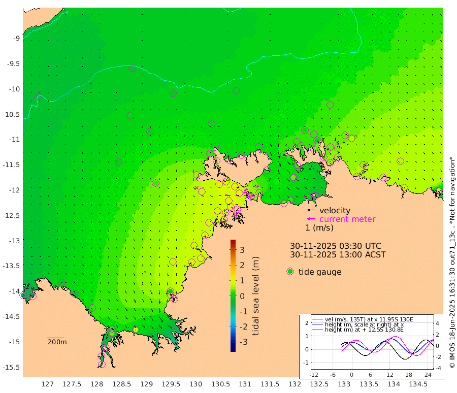 80cm/s 78T +4cm/s rms + 6cm/s 51T. Darwin_C1 52m 36cm/s 89T +4cm/s rms + 7cm/s -161T. Darwin_CW1 22m 43cm/s 73T +4cm/s rms + 8cm/s 61T. Darwin_CW2 34m 32cm/s 51T +3cm/s rms + 9cm/s 98T. Darwin_CW3 22m 53cm/s 88T +5cm/s rms + 7cm/s 88T. Darwin_C3 56m 48cm/s 64T +2cm/s rms + 9cm/s -126T. Darwin_CTbW 22m 3cm/s 144T +9cm/s rms + 2cm/s -110T. NWSLYN 196m 28cm/s 90T +1cm/s rms + 1cm/s -47T. DARBGF 30m 3cm/s -141T +7cm/s rms + 2cm/s -137T. ITFTIS 464m 10cm/s -168T +9cm/s rms + 1cm/s 74T. ITFMHB 146m 19cm/s 164T +4cm/s rms + 1cm/s -134T. ITFJBG 61m 15cm/s 155T +6cm/s rms + 4cm/s 121T. ITFFTB 108m 25cm/s 117T +4cm/s rms + 3cm/s 80T. NRSDAR 19m -54cm Carronade Island -51cm Guy Point -63cm Napier Broome Bay -18cm Lesueur Island 27cm Reveley Island -23cm Rocky Island 36cm Cape Domett 31cm Lacrosse Island 22cm Adolphus Island -32cm Pender Point -51cm Wyndham -1cm The Boxers 10cm Unnamed Shoal -33cm Loxton Shoal 68cm Pelican Island -4cm Calder Shoal -12cm Evans Shoal 6cm Quoin Island 73cm Port Keats 76cm Jones Point 5cm Catfish Island 72cm Cape Scott Offshore 92cm Cape Ford 87cm Anson Bay 3cm Goodrich Bank 75cm Peron Island North 89cm Point Jenny 86cm Native Point 80cm Fish Reef 95cm Tapa Bay 47cm Point Fawcett (Offshore) 87cm Burge Point 85cm Munkunuwa 69cm Beagle A 95cm Parsons Bank 86cm Fenton Patches -10cm Lynedoch Bank 96cm Hancox Shoal Area 96cm Nightcliff 89cm Darwin 86cm Charles Point Patches 57cm Glyde Point 40cm Chambers Bay 23cm Point Stuart 45cm Cape Hotham 36cm Christine Reef 21cm West Alligator Head 2cm East Field Island 31cm Two Hills Bay 27cm Newby Shoal 27cm Camp Point 80cm Medina Inlet South 37cm South Barlow Point 25cm St. Asaph Bay 8cm Cape Van Dieman 6cm Snake Bay 10cm Cache Point -44cm Echo Shoal 16cm Point Jahleel (Off) 34cm Cape Don 25cm Port Essington 31cm Smith Point - West 29cm NW Peacock Island 14cm North Of Jones Shoal 7cm Peacock Island 43cm Point David 36cm D'urville Point 23cm Money Shoal 46cm Copeland Island 53cm Cape Cockburn 36cm One Tree Point 58cm Hogmany Shoal 36cm New Year Island - West 42cm Grant Island 50cm Aurari Bay 62cm Cuthbert Point 54cm North Goulburn Island 58cm Paxie Shoal 75cm Entrance Island 84cm Yabooma Island