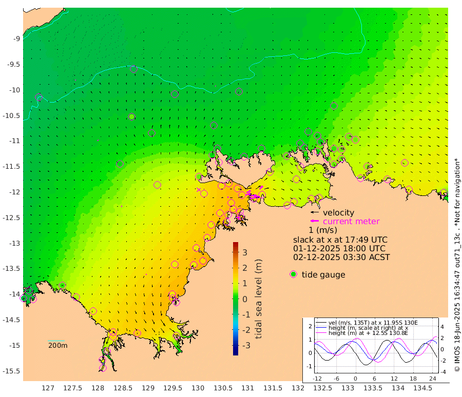 100cm/s 77T +4cm/s rms + 6cm/s 51T. Darwin_C1 52m 73cm/s 89T +4cm/s rms + 7cm/s -161T. Darwin_CW1 22m 62cm/s 73T +4cm/s rms + 8cm/s 61T. Darwin_CW2 34m 55cm/s 46T +3cm/s rms + 9cm/s 98T. Darwin_CW3 22m 96cm/s 89T +5cm/s rms + 7cm/s 88T. Darwin_C3 56m 55cm/s 65T +2cm/s rms + 9cm/s -126T. Darwin_CTbW 22m 6cm/s -14T +9cm/s rms + 2cm/s -110T. NWSLYN 196m 13cm/s 71T +1cm/s rms + 1cm/s -47T. DARBGF 30m 6cm/s -45T +7cm/s rms + 2cm/s -137T. ITFTIS 464m 9cm/s -28T +9cm/s rms + 1cm/s 74T. ITFMHB 146m 9cm/s -148T +4cm/s rms + 1cm/s -134T. ITFJBG 61m 9cm/s -70T +6cm/s rms + 4cm/s 121T. ITFFTB 108m 11cm/s 86T +4cm/s rms + 3cm/s 80T. NRSDAR 19m -45cm Carronade Island -53cm Guy Point -39cm Napier Broome Bay 31cm Lesueur Island 99cm Reveley Island 59cm Rocky Island 154cm Cape Domett 139cm Lacrosse Island 145cm Adolphus Island 108cm Pender Point 96cm Wyndham 8cm The Boxers 43cm Unnamed Shoal -51cm Loxton Shoal 162cm Pelican Island -9cm Calder Shoal -41cm Evans Shoal 168cm Quoin Island 170cm Port Keats 168cm Jones Point 122cm Catfish Island 117cm Cape Scott Offshore 112cm Cape Ford 137cm Anson Bay -18cm Goodrich Bank 115cm Peron Island North 123cm Point Jenny 124cm Native Point 129cm Fish Reef 140cm Tapa Bay 44cm Point Fawcett (Offshore) 159cm Burge Point 130cm Munkunuwa 106cm Beagle A 152cm Parsons Bank 153cm Fenton Patches -23cm Lynedoch Bank 147cm Hancox Shoal Area 161cm Nightcliff 167cm Darwin 141cm Charles Point Patches 128cm Glyde Point 102cm Chambers Bay 103cm Point Stuart 109cm Cape Hotham 96cm Christine Reef 109cm West Alligator Head 102cm East Field Island 89cm Two Hills Bay 69cm Newby Shoal 92cm Camp Point 135cm Medina Inlet South 38cm South Barlow Point 11cm St. Asaph Bay -14cm Cape Van Dieman -6cm Snake Bay -12cm Cache Point -70cm Echo Shoal 4cm Point Jahleel (Off) 45cm Cape Don 10cm Port Essington 9cm Smith Point - West 9cm NW Peacock Island -9cm North Of Jones Shoal -1cm Peacock Island 33cm Point David 14cm D'urville Point 7cm Money Shoal 34cm Copeland Island 44cm Cape Cockburn 28cm One Tree Point 37cm Hogmany Shoal 34cm New Year Island - West 37cm Grant Island 55cm Aurari Bay 66cm Cuthbert Point 51cm North Goulburn Island 75cm Paxie Shoal 91cm Entrance Island 103cm Yabooma Island