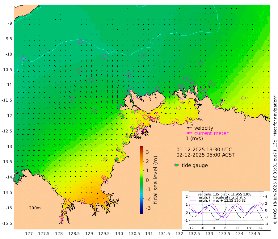 52cm/s 78T +4cm/s rms + 6cm/s 51T. Darwin_C1 52m 49cm/s 94T +4cm/s rms + 7cm/s -161T. Darwin_CW1 22m 32cm/s 70T +4cm/s rms + 8cm/s 61T. Darwin_CW2 34m 46cm/s 41T +3cm/s rms + 9cm/s 98T. Darwin_CW3 22m 62cm/s 90T +5cm/s rms + 7cm/s 88T. Darwin_C3 56m 21cm/s 66T +2cm/s rms + 9cm/s -126T. Darwin_CTbW 22m 9cm/s -23T +9cm/s rms + 2cm/s -110T. NWSLYN 196m 27cm/s -78T +1cm/s rms + 1cm/s -47T. DARBGF 30m 7cm/s -70T +7cm/s rms + 2cm/s -137T. ITFTIS 464m 19cm/s -27T +9cm/s rms + 1cm/s 74T. ITFMHB 146m 20cm/s -52T +4cm/s rms + 1cm/s -134T. ITFJBG 61m 32cm/s -54T +6cm/s rms + 4cm/s 121T. ITFFTB 108m 32cm/s -50T +4cm/s rms + 3cm/s 80T. NRSDAR 19m -41cm Carronade Island -45cm Guy Point -34cm Napier Broome Bay 14cm Lesueur Island 80cm Reveley Island 41cm Rocky Island 151cm Cape Domett 131cm Lacrosse Island 173cm Adolphus Island 184cm Pender Point 189cm Wyndham -46cm The Boxers -24cm Unnamed Shoal -85cm Loxton Shoal 150cm Pelican Island -67cm Calder Shoal -83cm Evans Shoal 232cm Quoin Island 123cm Port Keats 124cm Jones Point 188cm Catfish Island 51cm Cape Scott Offshore -5cm Cape Ford 63cm Anson Bay -70cm Goodrich Bank 35cm Peron Island North 35cm Point Jenny 35cm Native Point 42cm Fish Reef 53cm Tapa Bay -37cm Point Fawcett (Offshore) 74cm Burge Point 43cm Munkunuwa 16cm Beagle A 71cm Parsons Bank 68cm Fenton Patches -63cm Lynedoch Bank 78cm Hancox Shoal Area 83cm Nightcliff 92cm Darwin 61cm Charles Point Patches 92cm Glyde Point 109cm Chambers Bay 121cm Point Stuart 88cm Cape Hotham 99cm Christine Reef 135cm West Alligator Head 150cm East Field Island 81cm Two Hills Bay -11cm Newby Shoal 89cm Camp Point 51cm Medina Inlet South -40cm South Barlow Point -58cm St. Asaph Bay -70cm Cape Van Dieman -64cm Snake Bay -68cm Cache Point -93cm Echo Shoal -46cm Point Jahleel (Off) 2cm Cape Don -39cm Port Essington -44cm Smith Point - West -41cm NW Peacock Island -55cm North Of Jones Shoal -17cm Peacock Island -8cm Point David -39cm D'urville Point -33cm Money Shoal -5cm Copeland Island -9cm Cape Cockburn -14cm One Tree Point -9cm Hogmany Shoal -7cm New Year Island - West -6cm Grant Island 22cm Aurari Bay 37cm Cuthbert Point 13cm North Goulburn Island 61cm Paxie Shoal 74cm Entrance Island 107cm Yabooma Island