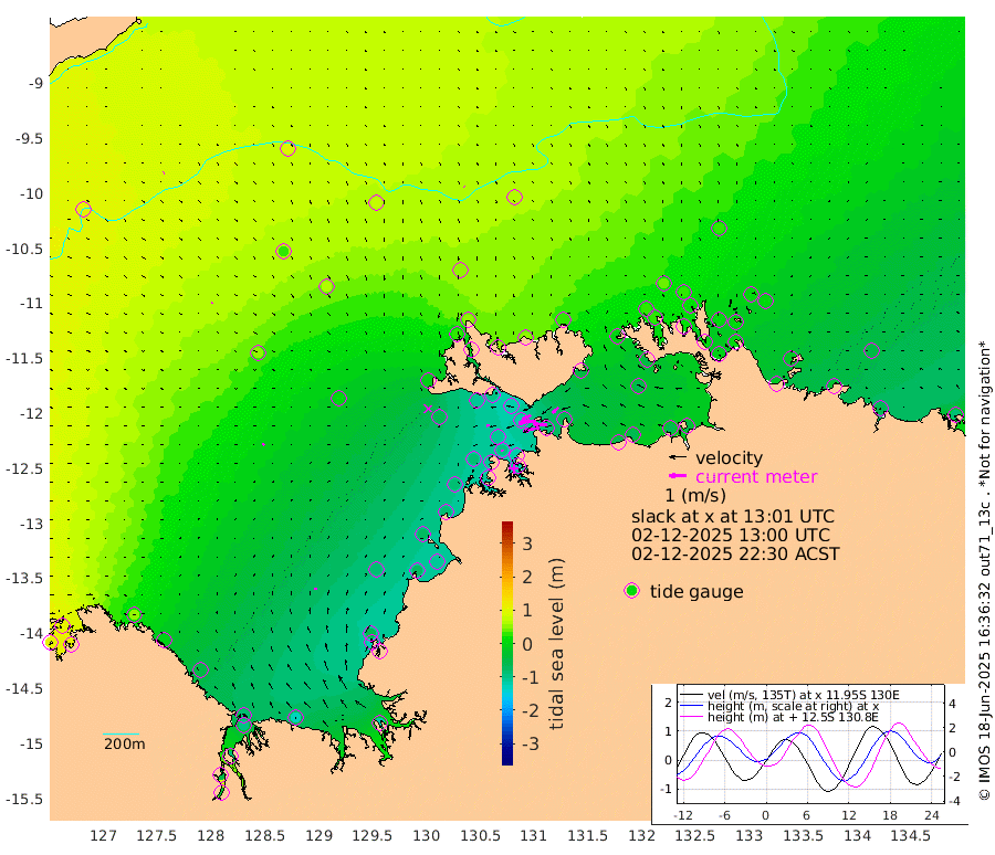 98cm/s -102T +4cm/s rms + 6cm/s 51T. Darwin_C1 52m 80cm/s -89T +4cm/s rms + 7cm/s -161T. Darwin_CW1 22m 63cm/s -108T +4cm/s rms + 8cm/s 61T. Darwin_CW2 34m 46cm/s -132T +3cm/s rms + 9cm/s 98T. Darwin_CW3 22m 93cm/s -91T +5cm/s rms + 7cm/s 88T. Darwin_C3 56m 55cm/s -115T +2cm/s rms + 9cm/s -126T. Darwin_CTbW 22m 4cm/s 147T +9cm/s rms + 2cm/s -110T. NWSLYN 196m 17cm/s -100T +1cm/s rms + 1cm/s -47T. DARBGF 30m 6cm/s 58T +7cm/s rms + 2cm/s -137T. ITFTIS 464m 8cm/s 63T +9cm/s rms + 1cm/s 74T. ITFMHB 146m 13cm/s 11T +4cm/s rms + 1cm/s -134T. ITFJBG 61m 10cm/s 55T +6cm/s rms + 4cm/s 121T. ITFFTB 108m 13cm/s -83T +4cm/s rms + 3cm/s 80T. NRSDAR 19m 105cm Carronade Island 104cm Guy Point 106cm Napier Broome Bay 46cm Lesueur Island -51cm Reveley Island -4cm Rocky Island -98cm Cape Domett -81cm Lacrosse Island -88cm Adolphus Island -51cm Pender Point -28cm Wyndham 49cm The Boxers 30cm Unnamed Shoal 94cm Loxton Shoal -124cm Pelican Island 57cm Calder Shoal 72cm Evans Shoal -116cm Quoin Island -119cm Port Keats -124cm Jones Point -64cm Catfish Island -81cm Cape Scott Offshore -75cm Cape Ford -103cm Anson Bay 56cm Goodrich Bank -75cm Peron Island North -87cm Point Jenny -85cm Native Point -87cm Fish Reef -103cm Tapa Bay -9cm Point Fawcett (Offshore) -112cm Burge Point -103cm Munkunuwa -56cm Beagle A -115cm Parsons Bank -102cm Fenton Patches 63cm Lynedoch Bank -113cm Hancox Shoal Area -120cm Nightcliff -119cm Darwin -97cm Charles Point Patches -82cm Glyde Point -65cm Chambers Bay -59cm Point Stuart -66cm Cape Hotham -59cm Christine Reef -65cm West Alligator Head -53cm East Field Island -46cm Two Hills Bay 5cm Newby Shoal -48cm Camp Point -95cm Medina Inlet South 1cm South Barlow Point 23cm St. Asaph Bay 51cm Cape Van Dieman 50cm Snake Bay 51cm Cache Point 110cm Echo Shoal 34cm Point Jahleel (Off) -8cm Cape Don 25cm Port Essington 24cm Smith Point - West 27cm NW Peacock Island 42cm North Of Jones Shoal 12cm Peacock Island 2cm Point David 21cm D'urville Point 28cm Money Shoal -3cm Copeland Island 2cm Cape Cockburn 8cm One Tree Point 3cm Hogmany Shoal 10cm New Year Island - West 4cm Grant Island -17cm Aurari Bay -32cm Cuthbert Point -14cm North Goulburn Island -46cm Paxie Shoal -60cm Entrance Island -85cm Yabooma Island