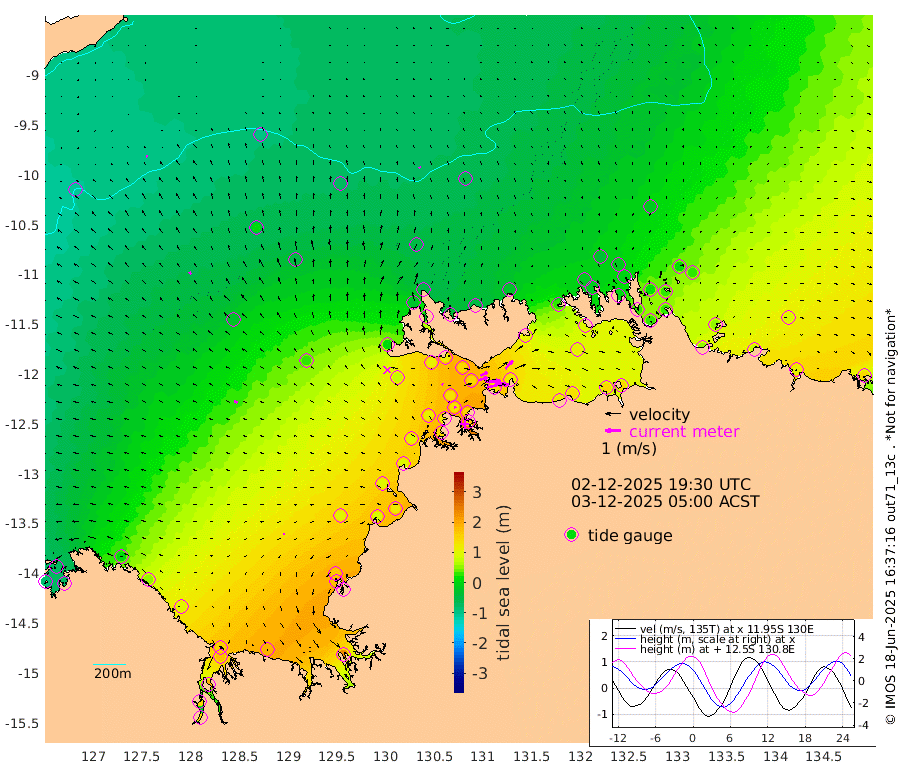 105cm/s 78T +4cm/s rms + 6cm/s 51T. Darwin_C1 52m 87cm/s 92T +4cm/s rms + 7cm/s -161T. Darwin_CW1 22m 59cm/s 72T +4cm/s rms + 8cm/s 61T. Darwin_CW2 34m 69cm/s 42T +3cm/s rms + 9cm/s 98T. Darwin_CW3 22m 100cm/s 90T +5cm/s rms + 7cm/s 88T. Darwin_C3 56m 50cm/s 65T +2cm/s rms + 9cm/s -126T. Darwin_CTbW 22m 9cm/s -20T +9cm/s rms + 2cm/s -110T. NWSLYN 196m 8cm/s -48T +1cm/s rms + 1cm/s -47T. DARBGF 30m 8cm/s -66T +7cm/s rms + 2cm/s -137T. ITFTIS 464m 17cm/s -31T +9cm/s rms + 1cm/s 74T. ITFMHB 146m 12cm/s -87T +4cm/s rms + 1cm/s -134T. ITFJBG 61m 24cm/s -61T +6cm/s rms + 4cm/s 121T. ITFFTB 108m 12cm/s -25T +4cm/s rms + 3cm/s 80T. NRSDAR 19m -76cm Carronade Island -83cm Guy Point -72cm Napier Broome Bay 11cm Lesueur Island 100cm Reveley Island 45cm Rocky Island 172cm Cape Domett 151cm Lacrosse Island 180cm Adolphus Island 153cm Pender Point 145cm Wyndham -32cm The Boxers 8cm Unnamed Shoal -92cm Loxton Shoal 185cm Pelican Island -54cm Calder Shoal -79cm Evans Shoal 227cm Quoin Island 174cm Port Keats 178cm Jones Point 163cm Catfish Island 99cm Cape Scott Offshore 79cm Cape Ford 120cm Anson Bay -54cm Goodrich Bank 93cm Peron Island North 94cm Point Jenny 95cm Native Point 105cm Fish Reef 118cm Tapa Bay 3cm Point Fawcett (Offshore) 141cm Burge Point 108cm Munkunuwa 72cm Beagle A 140cm Parsons Bank 133cm Fenton Patches -55cm Lynedoch Bank 140cm Hancox Shoal Area 146cm Nightcliff 160cm Darwin 126cm Charles Point Patches 132cm Glyde Point 119cm Chambers Bay 129cm Point Stuart 118cm Cape Hotham 110cm Christine Reef 140cm West Alligator Head 142cm East Field Island 99cm Two Hills Bay 26cm Newby Shoal 104cm Camp Point 114cm Medina Inlet South 0cm South Barlow Point -30cm St. Asaph Bay -51cm Cape Van Dieman -42cm Snake Bay -49cm Cache Point -110cm Echo Shoal -25cm Point Jahleel (Off) 28cm Cape Don -14cm Port Essington -17cm Smith Point - West -15cm NW Peacock Island -38cm North Of Jones Shoal -10cm Peacock Island 24cm Point David -9cm D'urville Point -12cm Money Shoal 27cm Copeland Island 31cm Cape Cockburn 14cm One Tree Point 29cm Hogmany Shoal 22cm New Year Island - West 26cm Grant Island 55cm Aurari Bay 72cm Cuthbert Point 47cm North Goulburn Island 89cm Paxie Shoal 108cm Entrance Island 137cm Yabooma Island
