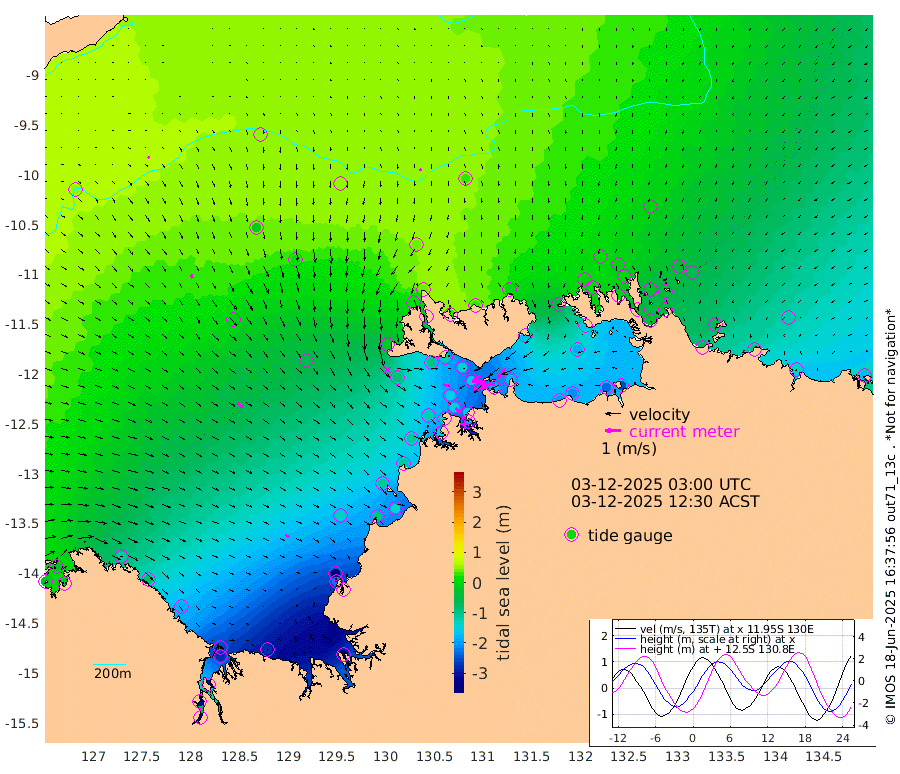 97cm/s -101T +4cm/s rms + 6cm/s 51T. Darwin_C1 52m 101cm/s -93T +4cm/s rms + 7cm/s -161T. Darwin_CW1 22m 36cm/s -105T +4cm/s rms + 8cm/s 61T. Darwin_CW2 34m 76cm/s -140T +3cm/s rms + 9cm/s 98T. Darwin_CW3 22m 86cm/s -89T +5cm/s rms + 7cm/s 88T. Darwin_C3 56m 44cm/s -116T +2cm/s rms + 9cm/s -126T. Darwin_CTbW 22m 12cm/s 171T +9cm/s rms + 2cm/s -110T. NWSLYN 196m 36cm/s 103T +1cm/s rms + 1cm/s -47T. DARBGF 30m 11cm/s 126T +7cm/s rms + 2cm/s -137T. ITFTIS 464m 24cm/s 159T +9cm/s rms + 1cm/s 74T. ITFMHB 146m 31cm/s 133T +4cm/s rms + 1cm/s -134T. ITFJBG 61m 43cm/s 131T +6cm/s rms + 4cm/s 121T. ITFFTB 108m 46cm/s 131T +4cm/s rms + 3cm/s 80T. NRSDAR 19m -28cm Carronade Island -28cm Guy Point -30cm Napier Broome Bay -116cm Lesueur Island -181cm Reveley Island -84cm Rocky Island -276cm Cape Domett -253cm Lacrosse Island -323cm Adolphus Island -317cm Pender Point -336cm Wyndham -7cm The Boxers -20cm Unnamed Shoal 48cm Loxton Shoal -273cm Pelican Island 22cm Calder Shoal 49cm Evans Shoal -393cm Quoin Island -232cm Port Keats -223cm Jones Point -341cm Catfish Island -126cm Cape Scott Offshore -95cm Cape Ford -135cm Anson Bay 34cm Goodrich Bank -110cm Peron Island North -103cm Point Jenny -102cm Native Point -115cm Fish Reef -129cm Tapa Bay -13cm Point Fawcett (Offshore) -156cm Burge Point -96cm Munkunuwa -88cm Beagle A -145cm Parsons Bank -154cm Fenton Patches 30cm Lynedoch Bank -161cm Hancox Shoal Area -165cm Nightcliff -183cm Darwin -151cm Charles Point Patches -178cm Glyde Point -197cm Chambers Bay -211cm Point Stuart -172cm Cape Hotham -186cm Christine Reef -232cm West Alligator Head -256cm East Field Island -161cm Two Hills Bay -66cm Newby Shoal -170cm Camp Point -122cm Medina Inlet South -3cm South Barlow Point 19cm St. Asaph Bay 37cm Cape Van Dieman 29cm Snake Bay 27cm Cache Point 53cm Echo Shoal 2cm Point Jahleel (Off) -55cm Cape Don -3cm Port Essington 0cm Smith Point - West -4cm NW Peacock Island 16cm North Of Jones Shoal 4cm Peacock Island -36cm Point David -5cm D'urville Point -9cm Money Shoal -40cm Copeland Island -52cm Cape Cockburn -31cm One Tree Point -57cm Hogmany Shoal -44cm New Year Island - West -45cm Grant Island -73cm Aurari Bay -96cm Cuthbert Point -64cm North Goulburn Island -115cm Paxie Shoal -135cm Entrance Island -170cm Yabooma Island