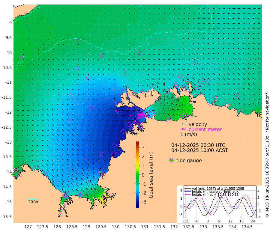 188cm/s -102T +4cm/s rms + 6cm/s 51T. Darwin_C1 52m 134cm/s -89T +4cm/s rms + 7cm/s -161T. Darwin_CW1 22m 123cm/s -107T +4cm/s rms + 8cm/s 61T. Darwin_CW2 34m 70cm/s -128T +3cm/s rms + 9cm/s 98T. Darwin_CW3 22m 161cm/s -91T +5cm/s rms + 7cm/s 88T. Darwin_C3 56m 117cm/s -116T +2cm/s rms + 9cm/s -126T. Darwin_CTbW 22m 7cm/s -75T +9cm/s rms + 2cm/s -110T. NWSLYN 196m 79cm/s -93T +1cm/s rms + 1cm/s -47T. DARBGF 30m 8cm/s -162T +7cm/s rms + 2cm/s -137T. ITFTIS 464m 12cm/s -25T +9cm/s rms + 1cm/s 74T. ITFMHB 146m 40cm/s -21T +4cm/s rms + 1cm/s -134T. ITFJBG 61m 33cm/s -49T +6cm/s rms + 4cm/s 121T. ITFFTB 108m 66cm/s -61T +4cm/s rms + 3cm/s 80T. NRSDAR 19m -9cm Carronade Island -6cm Guy Point -8cm Napier Broome Bay -110cm Lesueur Island -163cm Reveley Island -83cm Rocky Island -188cm Cape Domett -186cm Lacrosse Island -141cm Adolphus Island -26cm Pender Point 8cm Wyndham -138cm The Boxers -156cm Unnamed Shoal -65cm Loxton Shoal -213cm Pelican Island -133cm Calder Shoal -82cm Evans Shoal -115cm Quoin Island -265cm Port Keats -252cm Jones Point -73cm Catfish Island -254cm Cape Scott Offshore -371cm Cape Ford -282cm Anson Bay -108cm Goodrich Bank -272cm Peron Island North -287cm Point Jenny -287cm Native Point -294cm Fish Reef -300cm Tapa Bay -219cm Point Fawcett (Offshore) -310cm Burge Point -281cm Munkunuwa -276cm Beagle A -289cm Parsons Bank -305cm Fenton Patches -81cm Lynedoch Bank -274cm Hancox Shoal Area -298cm Nightcliff -305cm Darwin -305cm Charles Point Patches -197cm Glyde Point -99cm Chambers Bay -77cm Point Stuart -152cm Cape Hotham -103cm Christine Reef -69cm West Alligator Head -29cm East Field Island -109cm Two Hills Bay -233cm Newby Shoal -110cm Camp Point -292cm Medina Inlet South -196cm South Barlow Point -168cm St. Asaph Bay -117cm Cape Van Dieman -121cm Snake Bay -120cm Cache Point -36cm Echo Shoal -119cm Point Jahleel (Off) -137cm Cape Don -121cm Port Essington -126cm Smith Point - West -117cm NW Peacock Island -106cm North Of Jones Shoal -38cm Peacock Island -109cm Point David -124cm D'urville Point -101cm Money Shoal -105cm Copeland Island -144cm Cape Cockburn -111cm One Tree Point -131cm Hogmany Shoal -112cm New Year Island - West -114cm Grant Island -104cm Aurari Bay -108cm Cuthbert Point -112cm North Goulburn Island -93cm Paxie Shoal -96cm Entrance Island -73cm Yabooma Island