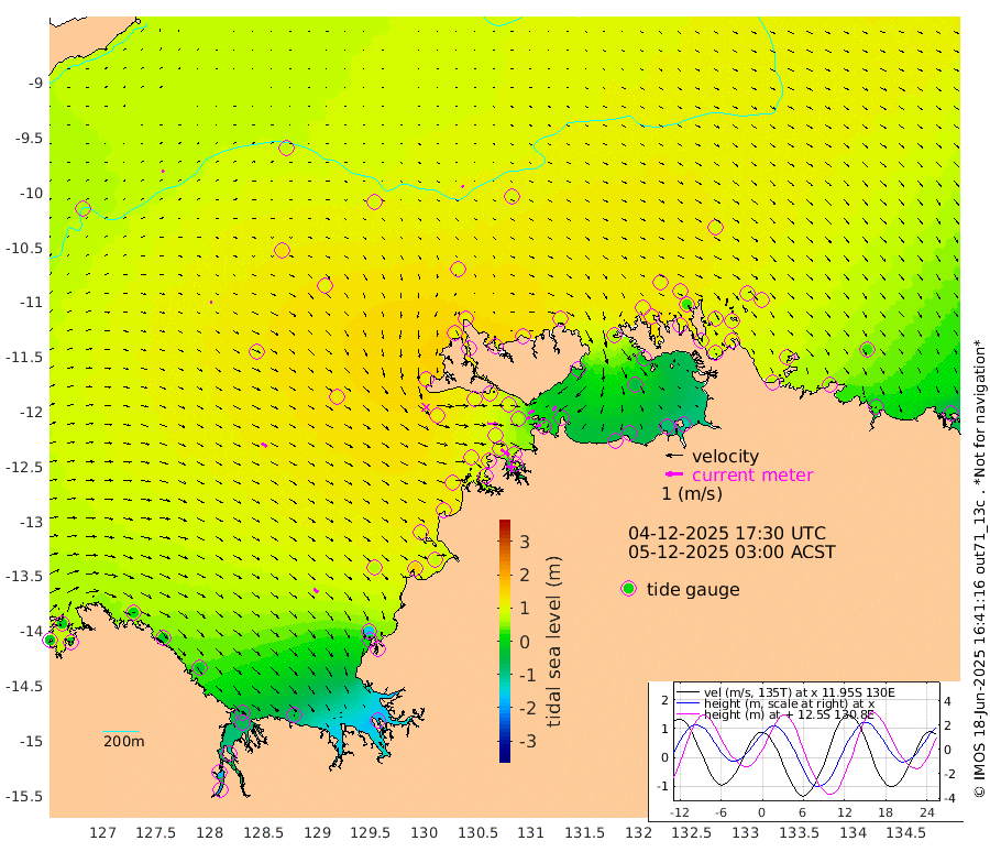 25cm/s 79T +4cm/s rms + 6cm/s 51T. Darwin_C1 52m 6cm/s -53T +4cm/s rms + 7cm/s -161T. Darwin_CW1 22m 21cm/s 76T +4cm/s rms + 8cm/s 61T. Darwin_CW2 34m 29cm/s -146T +3cm/s rms + 9cm/s 98T. Darwin_CW3 22m 4cm/s 67T +5cm/s rms + 7cm/s 88T. Darwin_C3 56m 38cm/s 61T +2cm/s rms + 9cm/s -126T. Darwin_CTbW 22m 9cm/s 137T +9cm/s rms + 2cm/s -110T. NWSLYN 196m 57cm/s 94T +1cm/s rms + 1cm/s -47T. DARBGF 30m 12cm/s 35T +7cm/s rms + 2cm/s -137T. ITFTIS 464m 11cm/s 87T +9cm/s rms + 1cm/s 74T. ITFMHB 146m 36cm/s 139T +4cm/s rms + 1cm/s -134T. ITFJBG 61m 36cm/s 118T +6cm/s rms + 4cm/s 121T. ITFFTB 108m 58cm/s 126T +4cm/s rms + 3cm/s 80T. NRSDAR 19m -5cm Carronade Island -17cm Guy Point -1cm Napier Broome Bay 18cm Lesueur Island -20cm Reveley Island -5cm Rocky Island -61cm Cape Domett -47cm Lacrosse Island -113cm Adolphus Island -174cm Pender Point -196cm Wyndham 96cm The Boxers 128cm Unnamed Shoal 75cm Loxton Shoal -49cm Pelican Island 97cm Calder Shoal 81cm Evans Shoal -172cm Quoin Island 13cm Port Keats 17cm Jones Point -157cm Catfish Island 64cm Cape Scott Offshore 153cm Cape Ford 78cm Anson Bay 100cm Goodrich Bank 90cm Peron Island North 97cm Point Jenny 100cm Native Point 101cm Fish Reef 91cm Tapa Bay 118cm Point Fawcett (Offshore) 86cm Burge Point 91cm Munkunuwa 110cm Beagle A 82cm Parsons Bank 88cm Fenton Patches 86cm Lynedoch Bank 61cm Hancox Shoal Area 67cm Nightcliff 76cm Darwin 94cm Charles Point Patches 23cm Glyde Point -54cm Chambers Bay -63cm Point Stuart 1cm Cape Hotham -47cm Christine Reef -84cm West Alligator Head -115cm East Field Island -16cm Two Hills Bay 116cm Newby Shoal -15cm Camp Point 95cm Medina Inlet South 121cm South Barlow Point 112cm St. Asaph Bay 107cm Cape Van Dieman 112cm Snake Bay 102cm Cache Point 57cm Echo Shoal 87cm Point Jahleel (Off) 65cm Cape Don 94cm Port Essington 94cm Smith Point - West 93cm NW Peacock Island 91cm North Of Jones Shoal 33cm Peacock Island 84cm Point David 97cm D'urville Point 88cm Money Shoal 78cm Copeland Island 103cm Cape Cockburn 84cm One Tree Point 91cm Hogmany Shoal 86cm New Year Island - West 83cm Grant Island 67cm Aurari Bay 54cm Cuthbert Point 71cm North Goulburn Island 33cm Paxie Shoal 24cm Entrance Island -10cm Yabooma Island