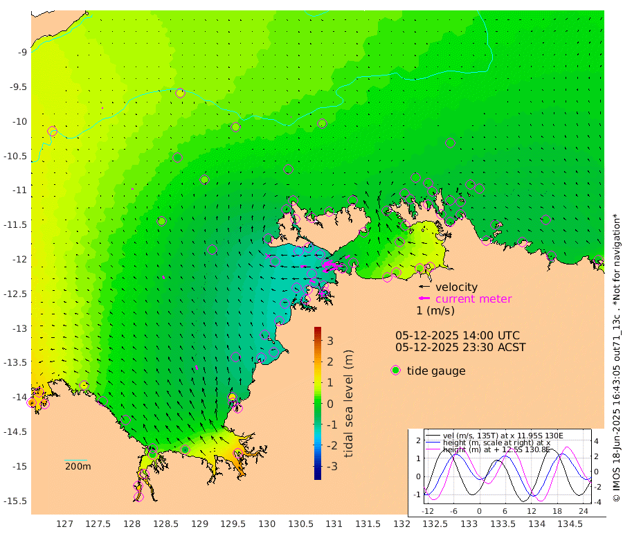 142cm/s -103T +4cm/s rms + 6cm/s 51T. Darwin_C1 52m 94cm/s -88T +4cm/s rms + 7cm/s -161T. Darwin_CW1 22m 88cm/s -109T +4cm/s rms + 8cm/s 61T. Darwin_CW2 34m 46cm/s -122T +3cm/s rms + 9cm/s 98T. Darwin_CW3 22m 95cm/s -92T +5cm/s rms + 7cm/s 88T. Darwin_C3 56m 85cm/s -115T +2cm/s rms + 9cm/s -126T. Darwin_CTbW 22m 4cm/s 120T +9cm/s rms + 2cm/s -110T. NWSLYN 196m 58cm/s -90T +1cm/s rms + 1cm/s -47T. DARBGF 30m 6cm/s 11T +7cm/s rms + 2cm/s -137T. ITFTIS 464m 16cm/s 13T +9cm/s rms + 1cm/s 74T. ITFMHB 146m 42cm/s -19T +4cm/s rms + 1cm/s -134T. ITFJBG 61m 30cm/s -26T +6cm/s rms + 4cm/s 121T. ITFFTB 108m 53cm/s -63T +4cm/s rms + 3cm/s 80T. NRSDAR 19m 186cm Carronade Island 194cm Guy Point 194cm Napier Broome Bay 109cm Lesueur Island 12cm Reveley Island 17cm Rocky Island 9cm Cape Domett 14cm Lacrosse Island 56cm Adolphus Island 151cm Pender Point 202cm Wyndham 39cm The Boxers -4cm Unnamed Shoal 83cm Loxton Shoal -36cm Pelican Island 35cm Calder Shoal 48cm Evans Shoal 70cm Quoin Island -72cm Port Keats -89cm Jones Point 133cm Catfish Island -79cm Cape Scott Offshore -131cm Cape Ford -107cm Anson Bay 22cm Goodrich Bank -97cm Peron Island North -104cm Point Jenny -104cm Native Point -114cm Fish Reef -118cm Tapa Bay -49cm Point Fawcett (Offshore) -120cm Burge Point -140cm Munkunuwa -85cm Beagle A -131cm Parsons Bank -113cm Fenton Patches 39cm Lynedoch Bank -110cm Hancox Shoal Area -118cm Nightcliff -121cm Darwin -106cm Charles Point Patches -46cm Glyde Point 31cm Chambers Bay 37cm Point Stuart -20cm Cape Hotham 31cm Christine Reef 45cm West Alligator Head 85cm East Field Island 13cm Two Hills Bay -8cm Newby Shoal 21cm Camp Point -117cm Medina Inlet South -47cm South Barlow Point -20cm St. Asaph Bay 11cm Cape Van Dieman 8cm Snake Bay 19cm Cache Point 109cm Echo Shoal 10cm Point Jahleel (Off) -6cm Cape Don 0cm Port Essington -4cm Smith Point - West 2cm NW Peacock Island 18cm North Of Jones Shoal 4cm Peacock Island -13cm Point David -8cm D'urville Point 15cm Money Shoal -15cm Copeland Island -14cm Cape Cockburn -5cm One Tree Point -3cm Hogmany Shoal 0cm New Year Island - West -7cm Grant Island -19cm Aurari Bay -15cm Cuthbert Point -13cm North Goulburn Island -7cm Paxie Shoal -16cm Entrance Island -14cm Yabooma Island